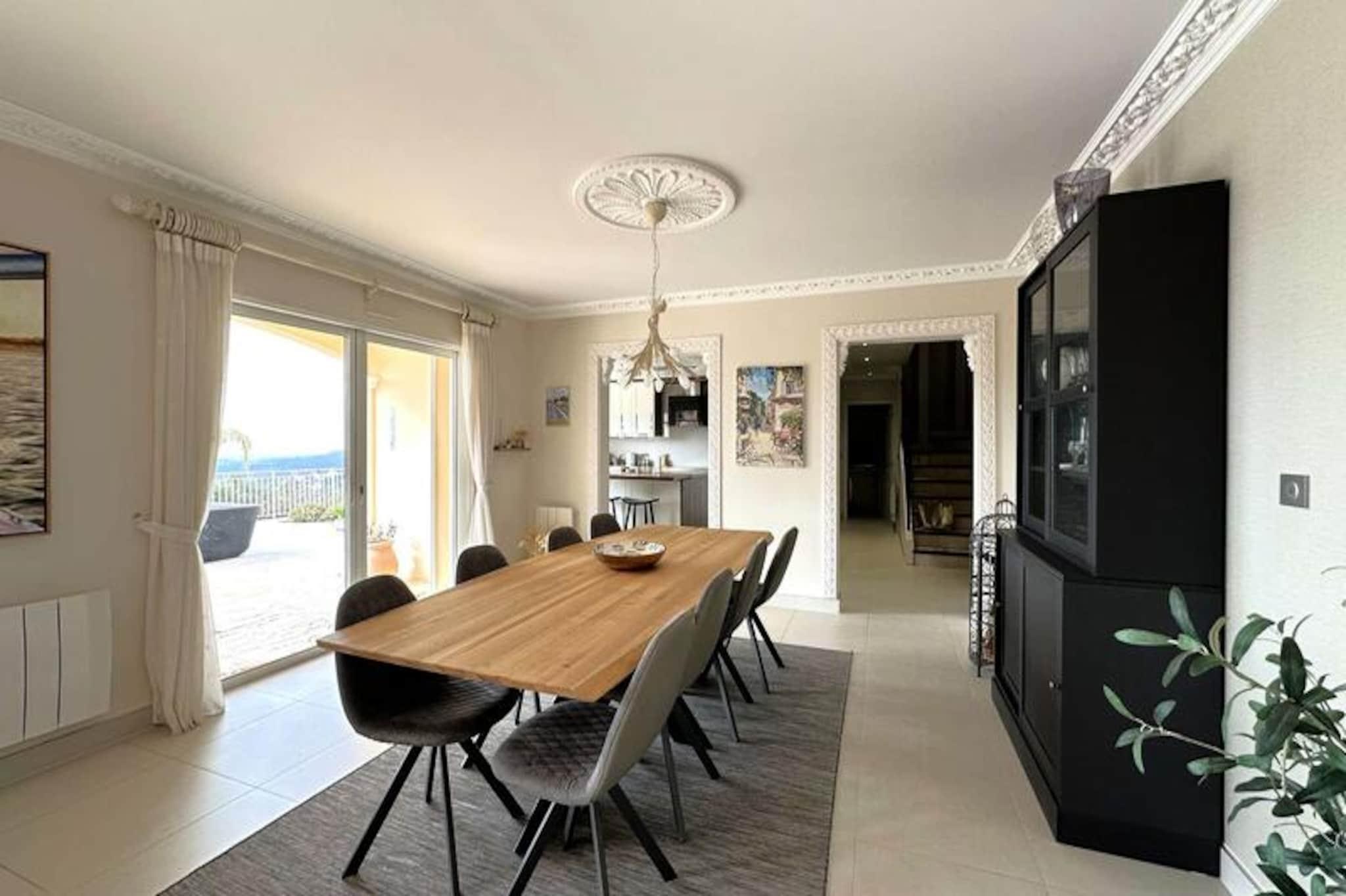 I hjertet af det prestigefyldte Domaine de Valcros tilbyder Villa Joya en fredfyldt tilflugtssted omgivet af Var-regionens naturlige skønhed. Denne eksklusive ejendom, berømt for sin rolige atmosfære og berømte golfbane, placerer dig i nærheden af ??regionens mest fantastiske strande og kystskatte. Her udfolder middelhavslivsstilen sig i en perfekt blanding af afslapning og elegance. Villa Joya er designet til at rumme op til otte gæster og er et paradis af moderne komfort og elegance. Villaen har en rummelig opholds- og spisestue med aircondition, der problemfrit forbinder sig med et fuldt udstyret køkken med førsteklasses apparater som to elektriske ovne, et stort køleskab og en induktionskogeplade med 6 blus. Den åbne planløsning fører til en stor terrasse med betagende havudsigt, en privat swimmingpool og rigelig plads til udendørs spisning eller afslapning i solen. Villaens fire soveværelser med aircondition, inklusive en luksuriøs master suite med en kingsize-seng og eget brusebad, sikrer afslappende nætter for alle gæster. Yderligere faciliteter såsom Wi-Fi, et bordtennisbord, dart og en elektrisk grill forbedrer dit ophold. Ud over villaen inviterer Domaine de Valcros dig til at udforske de frodige landskaber, mens de nærliggende strande i Var-regionen indbyder til solrige dage ved havet. Uanset om du spiller golf på ejendommens golfbane, nyder lokal provencalsk mad eller blot slapper af ved poolen, tilbyder Villa Joya en uovertruffen ferieoplevelse. Med sin blanding af luksus, komfort og førsteklasses beliggenhed er denne villa det perfekte valg til at skabe uforglemmelige minder i Sydfrankrig.