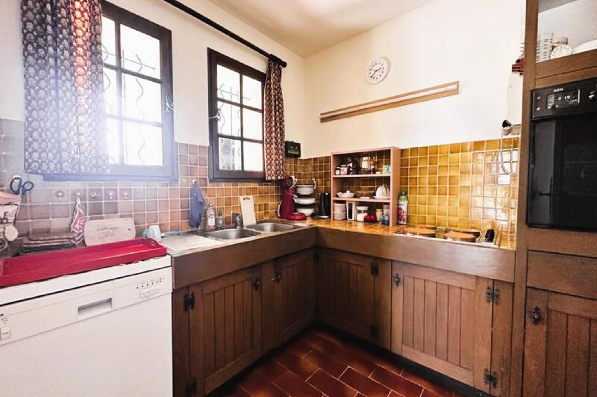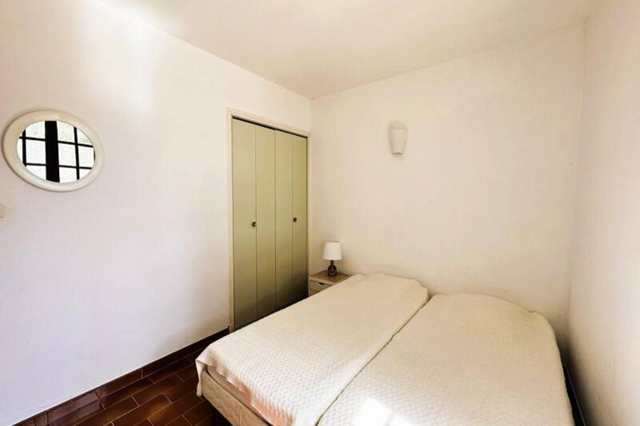 Midt i den fredfyldte skønhed i Massif des Maures tilbyder Villa Le Plantier en rolig oase omgivet af frodige fyrre- og egetræer. Dette private tilflugtssted, beliggende i det prestigefyldte Domaine de Valcros, ligger kun få øjeblikke fra en 18-hullers international golfbane og de fantastiske strande langs Var-kysten. Fra det turkisblå vand på Porquerolles-øen til det historiske Fort de Brégançon placerer denne villa dig i hjertet af regionens mest betagende attraktioner. Uanset om du søger afslapning eller eventyr, er dette de perfekte rammer for uforglemmelige øjeblikke med familie eller venner. Villaen har et stort udendørsområde med en privat have og en indhegnet swimmingpool, der sikrer både privatliv og sikkerhed. Den sydvendte terrasse tilbyder en betagende udsigt over havet, Porquerolles-øen og Giensbugten, hvilket gør den til et idyllisk sted til morgenkaffe eller aftensolnedgange. Indenfor er opholds- og spisestuen problemfrit forbundet med terrassen, mens det fuldt udstyrede køkken tilbyder alt, hvad du behøver til hjemmelavede måltider, inklusive moderne apparater og adgang til et vaskerum. Villaen har komfortabel plads til op til seks gæster. I stueetagen deler to soveværelser med to enkeltsenge og rigelig opbevaringsplads et badeværelse og separat toilet. Ovenpå har soveværelset en dobbeltseng, privat terrasseudgang og et tilhørende brusebad. For ekstra bekvemmelighed inkluderer villaen Wi-Fi, et tv, liggestole og privat parkering til flere køretøjer. Udforsk de nærliggende gyldne strande, vandre ad de naturskønne stier i Cap Bénat, eller nyd det lokale køkken på charmerende restauranter ved havet. Med sin førsteklasses beliggenhed og luksuriøse faciliteter lover Villa Le Plantier en ferie fyldt med afslapning, naturlig skønhed og værdsatte minder.