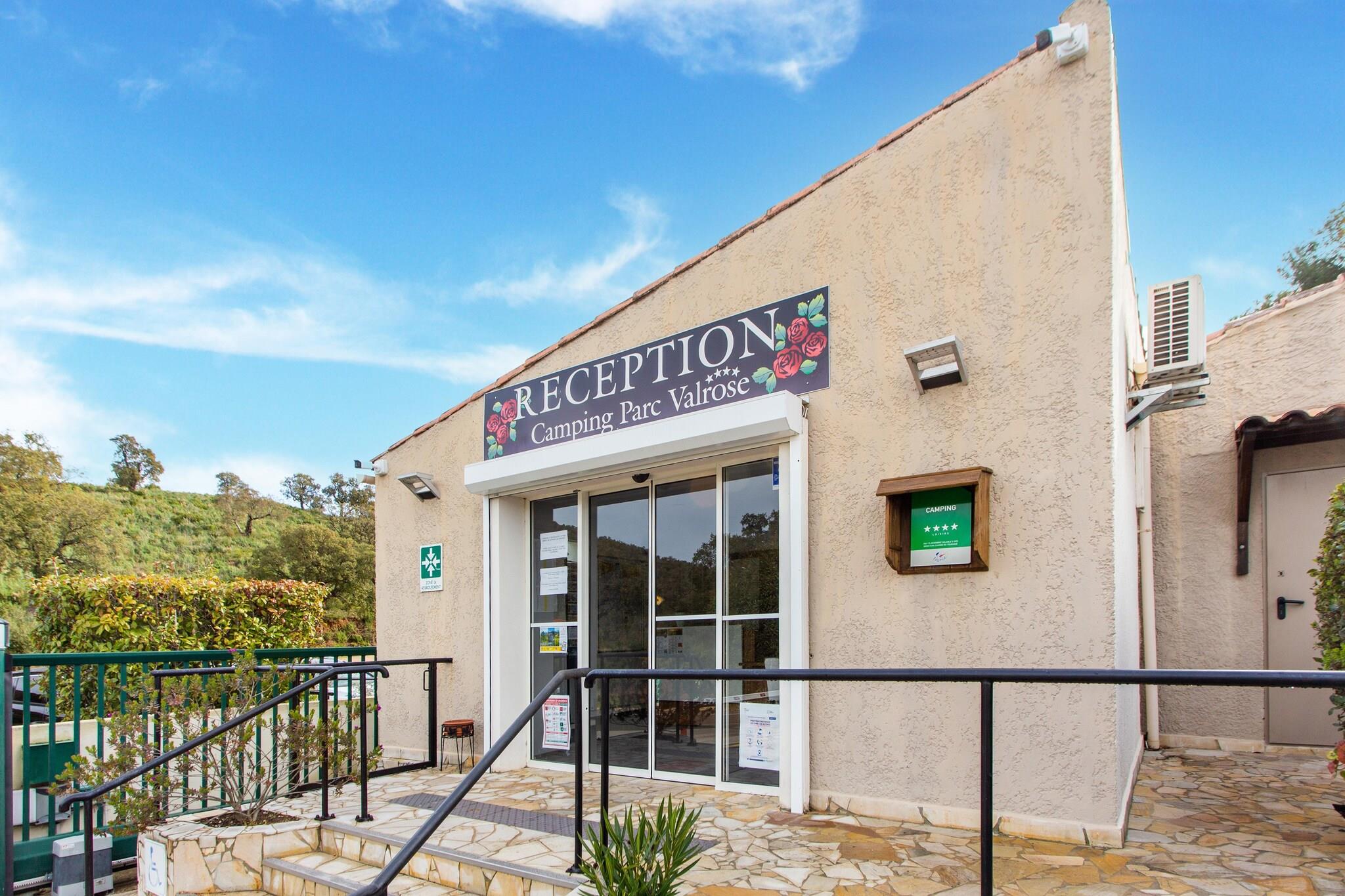 For foden af ??Massif des Maures ligger den 4-stjernede campingplads Valrose med egen bar og restaurant. Med sin smukke beliggenhed i Var, mellem Bormes les Mimosas, Le Lavandou og La Londe Les Maures, er det det ideelle sted for en uforglemmelig familieferie. Boligen ligger få minutter fra strandene Miramar, l'Argentière, l'Estagnol og Cabasson (overfor Brégançon-fortet). De 'gyldne øer' Porquerolles, Port Cros og Île du Levant er også et besøg værd. Entusiaster kan spille tee på Valcros 18-hullers golfbane. I hjertet af en 3 hektar stor park, i en sand oase af grønne områder og blomster, står mobilhomet på en rummelig grund. Klimaanlægget vil holde huset køligt om sommeren. Du kan starte dagen med en forfriskende dukkert i den fælles swimmingpool, mens børnene nyder legeredskaberne. Du har adgang til en opvarmet swimmingpool, og i juli og august tilbyder animationsholdet forskellige aktiviteter: fra vandgymnastik og vandpolo til petanque og endda en bordtennisturnering. Sjovt for alle aldre! Der er også en børneklub i højsæsonen. Parkeringsmuligheden er også tilgængelig her.