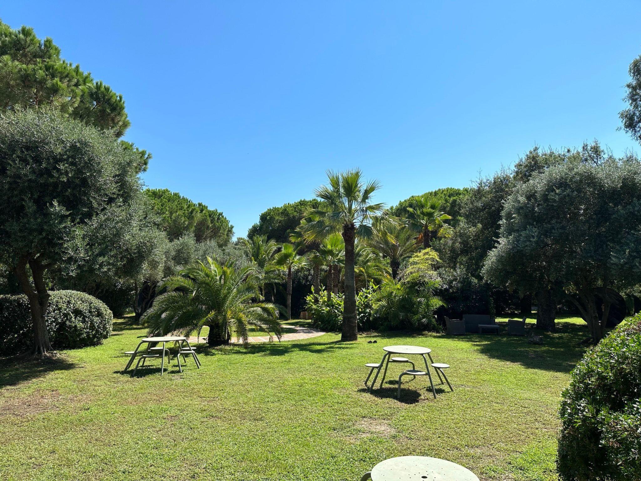 Cosy residence "Les Chênes". 30 houses in the residence. 14 km from the centre of Bastia, 200 m from the sea, 200 m from the beach, direct access to the beach. For shared use: beautiful, well-kept garden with plants and trees, meadow. Outdoor shower, barbecue. In the complex: reception, bar, table tennis, washing machine, tumble dryer (for shared use, extra). Parking on the premises. Shop, supermarket, restaurant 250 m, bus stop 100 m, sandy beach "Lido de la Marana" 200 m. Please note: car recommended. Residence with electric gates. The photograph shows a typical example.