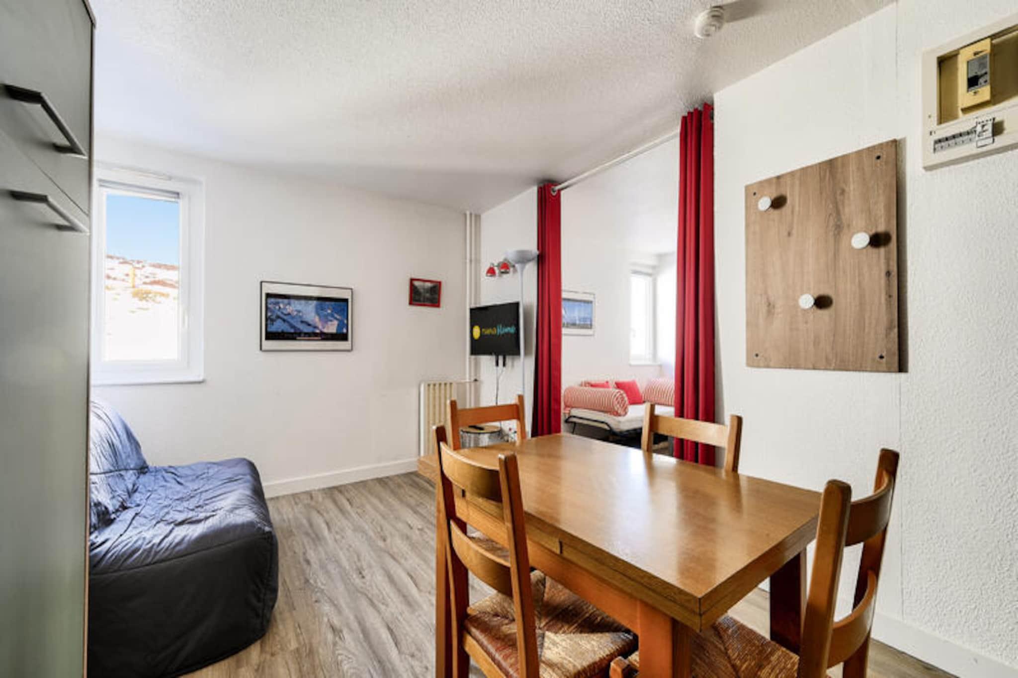 Højt beliggende i hjertet af Pyrenæerne, hvor snedækkede tinder møder endeløse himmelstrøg, tilbyder Résidence Le Tourmalet en rolig oase med betagende udsigt over La Mongies mest maleriske pister. Dette charmerende tilflugtssted er perfekt placeret langs den ikoniske Route du Tourmalet, en port til skisportsstedet Grand Tourmalet - Pic du Midi, der kan prale af over 100 kilometer spændende pister og alpine eventyr. Uanset om du er her for at stå på ski, vandre eller blot nyde bjergluften, er dette dit ideelle tilflugtssted. Indvendigt er lejligheden omhyggeligt designet til at maksimere komfort og funktionalitet. Den strækker sig over 30 m² og har en hyggelig stue med en sovesofa, en sovealkove med en dobbeltseng og to enkeltsenge, et fuldt udstyret åbent køkken og et moderne badeværelse med bruser. Beliggenheden på femte sal sikrer en fantastisk udsigt, mens direkte adgang til pisterne betyder, at du kan træde ud og stå på ski direkte ind i din dag. Efter en dag med aktiviteter kan du slappe af i det varme og indbydende opholdsrum, perfekt til at dele historier og latter. Beliggenheden er uovertruffen. Kun få skridt væk finder du butikker, restauranter og de livlige aktiviteter i feriestedet. For vandreentusiaster tilbyder stierne, der fører til Pic du Midi de Bigorre og Col du Tourmalet, uforglemmelige panoramaer og oplevelser for alle niveauer. I hver sæson forvandles denne region til en legeplads for både naturelskere og eventyrlystne. Vælg Résidence Le Tourmalet for dens uovertrufne adgang til pisterne, dens hyggelige, men moderne faciliteter og dens nærhed til det bedste af Pyrenæerne. Uanset om du jagter puddersne om vinteren eller udforsker frodige stier om sommeren, er det her, minder skabes.