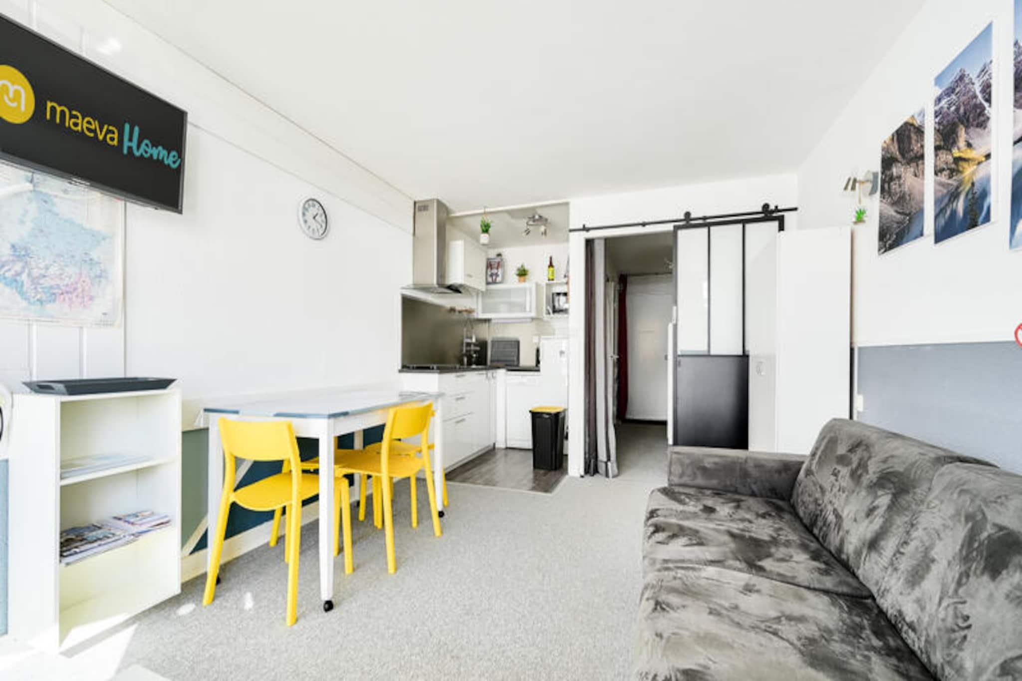 Højt oppe i hjertet af Pyrenæerne, hvor majestætiske bjergtoppe møder endeløse himmelrum, ligger Le Montana Residence i La Mongie. Dette charmerende fristed tilbyder en perfekt blanding af komfort og eventyr og inviterer dig til at fordybe dig i bjergenes fredfyldte skønhed. Med sin sydvendte altan kan du vågne op til en betagende udsigt over de omkringliggende skråninger og nyde solens varme, mens du planlægger din dag med udforskning. Uanset om du er her for spændingen ved skiløb eller roen ved sommervandringer, lover denne bolig en uforglemmelig alpin ferie. Studie-lejligheden er omhyggeligt designet for at maksimere komfort og bekvemmelighed. Den har en hyggelig stue med sovesofa, en privat sovealkove med dobbeltseng og et fuldt udstyret åbent køkken, der er perfekt til at tilberede måltider efter en dag fuld af eventyr. Badeværelset har badekar med bruser, og lejlighedens store opbevaringsplads sikrer et ophold uden rod. Yderligere fordele inkluderer overdækket parkering, direkte adgang til pisterne og mulighed for at tage dine firbenede venner med på rejsen. Le Montana Residence er ideelt beliggende kun 1 km fra det livlige feriested, hvor du finder en række butikker, restauranter og underholdningsmuligheder. Udendørsentusiaster vil sætte pris på nærheden til Pic du Midi-svævebanen, der tilbyder panoramaudsigt og adgang til det ikoniske astronomiske observatorium. Cyklister kan udfordre sig selv på den legendariske Col du Tourmalet, der starter lige ved boligen. For vandrere fører de nærliggende stier til fantastiske højtliggende søer og et varieret dyreliv, hvilket gør hver udflugt til en mindeværdig oplevelse. Uanset om du er på udkig efter spændende eventyr eller fredelige øjeblikke omgivet af naturen, er Le Montana Residence det perfekte udgangspunkt for din ferie i Pyrenæerne. Med sin uovertrufne beliggenhed og indbydende atmosfære er det en destination, der fanger essensen af livet i bjergene.