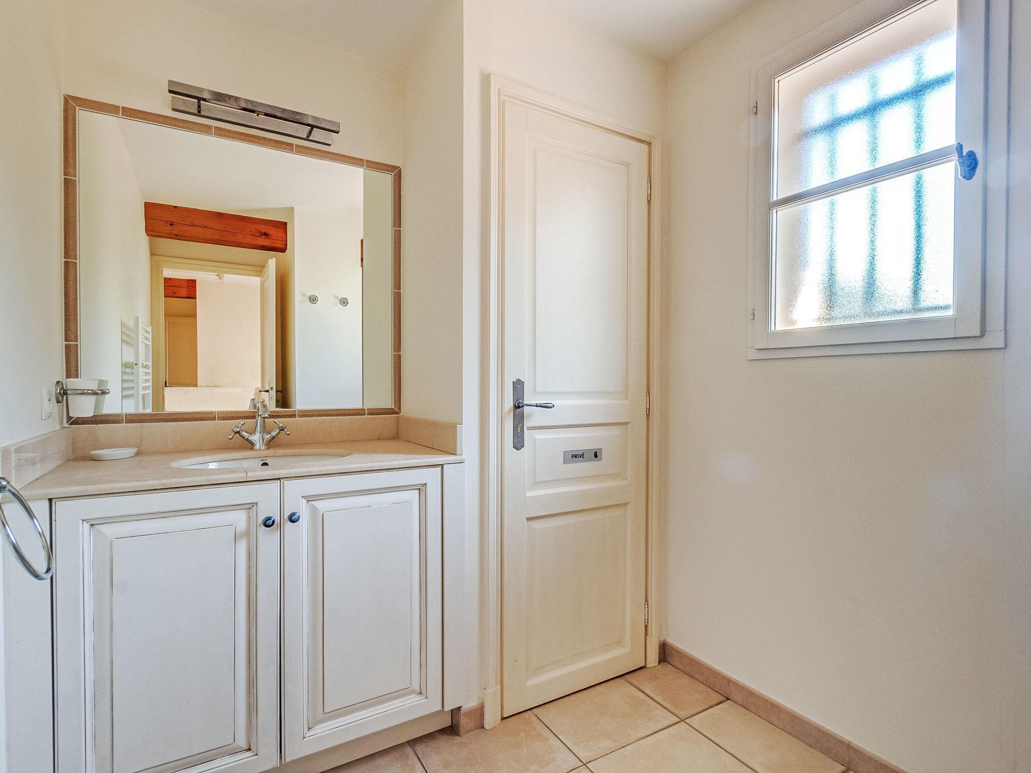 "Domaine de St. Endréol", 6-room house 175 m2 on 2 levels. Tasteful furnishings: living/dining room with open-hearth fireplace, dining table and satellite TV. Exit to the terrace. 1 room with 1 french bed (160 cm, length 200 cm), shower and air conditioning. 1 room with 2 beds (80 cm, length 200 cm), shower/WC and air conditioning. Open kitchen (4 hot plates, oven, dishwasher, microwave, freezer, electric coffee machine). Sep. WC. Upper floor: 2 rooms, each room with 2 beds (80 cm, length 200 cm), air conditioning. Exit to the balcony. 1 room with 1 french bed (160 cm, length 200 cm), bath/WC and air conditioning. Shower, sep. WC. Gas heating. Terrace partly roofed, garden 500 m2. Terrace furniture, deck chairs. Facilities: washing machine, dryer, safe, children's high chair, baby cot. Internet (WiFi, free). Parking. Offer by a commercial proprietor according to Art. 155, IV, CGI