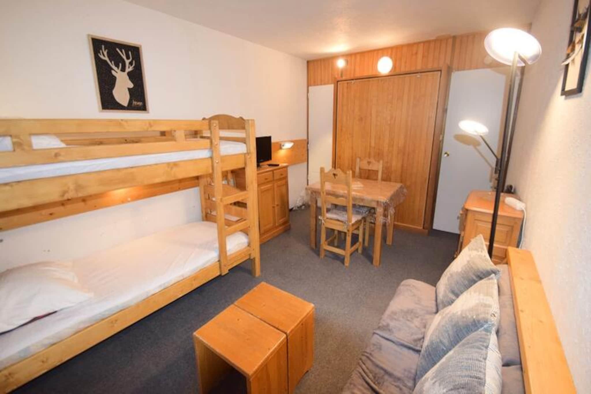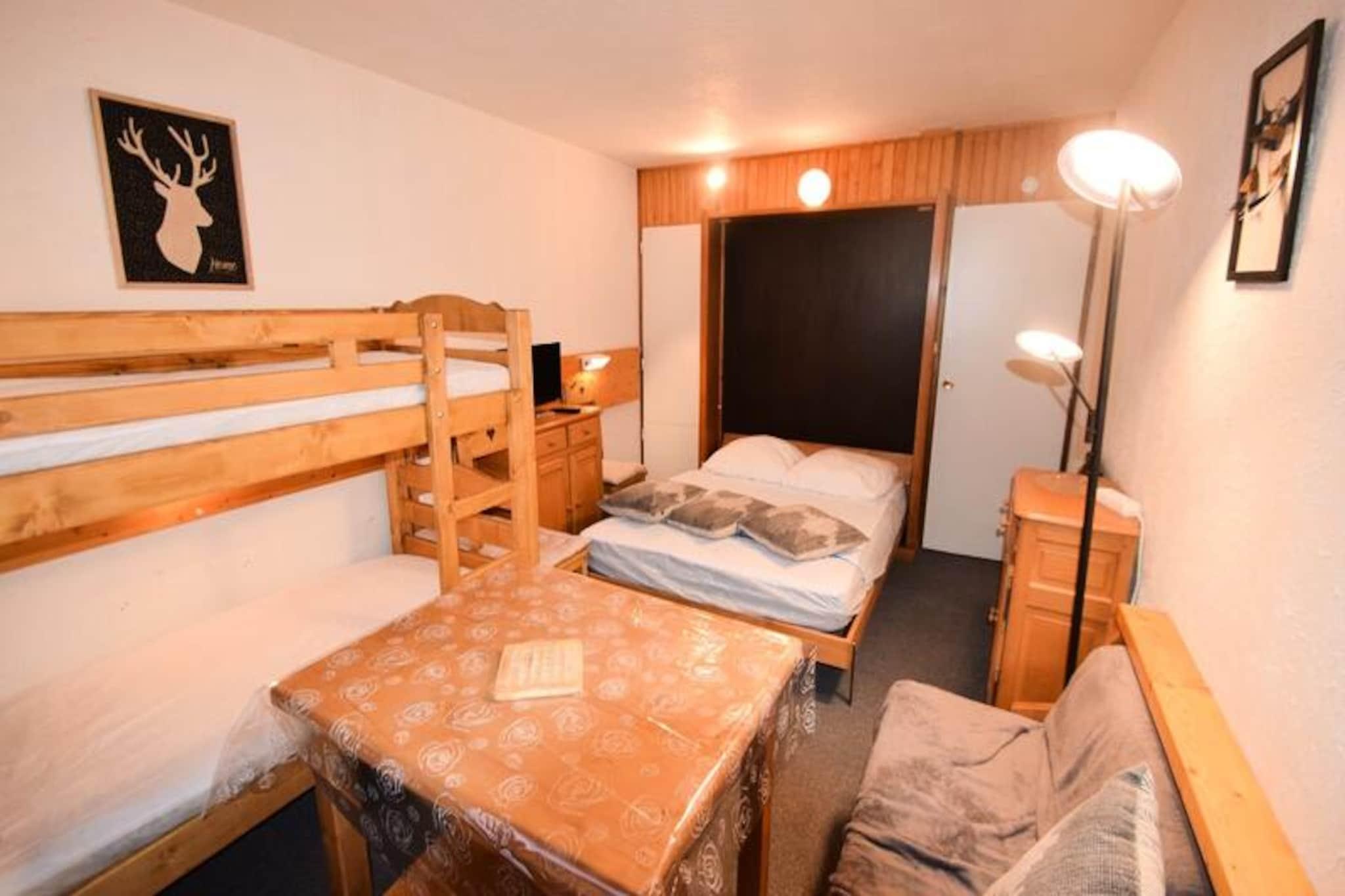 Nyd hjertet af de franske alper i dette charmerende studie i den berømte Residence Le France, Plagne Centre. Med sin sydvendte balkon, der tilbyder uforstyrret udsigt over pisterne, er dette hyggelige tilflugtssted perfekt til par eller små familier, der søger en problemfri alpin ferie. Forestil dig at vågne op til den friske bjergluft, træde ud på din balkon for at beundre de sneklædte udsigter og tage direkte til pisterne, da boligen er bekvemt placeret lige ved foden af ??dem. Den pulserende atmosfære i Plagne Centre, med dens butikker og faciliteter forbundet via en overdækket galerie, sikrer, at alt, hvad du behøver, er inden for rækkevidde. \n\nIndenfor er det 22 m² store studie omhyggeligt designet til at maksimere komfort og funktionalitet. Opholdsstuen har en spiseplads, en dobbeltseng og to køjesenge, hvilket gør det ideelt til op til fire gæster. Det kompakte køkken er udstyret med moderne faciliteter, herunder to elektriske kogeplader, en mikrobølgeovn, en opvaskemaskine og et køleskab, så du kan tilberede solide måltider efter en dag med eventyr. Badeværelset, komplet med badekar og toilet, bidrager til bekvemmeligheden, mens den lyse og luftige atmosfære i studiet forbedrer dit ophold. Et dedikeret skirum i stueetagen sikrer problemfri opbevaring af dit udstyr. \n\nTræd udenfor, og du bliver straks fordybet i La Plagnes magi. Uanset om du snorkler gennem de uberørte pister om vinteren eller udforsker de frodige alpine stier om sommeren, er beliggenheden uovertruffen. Området byder på et væld af aktiviteter, lige fra skiløb og snowboarding til vandreture og mountainbiking. Efter en aktiv dag kan du slappe af på en af ??de nærliggende restauranter eller nyde den livlige afterski-scene. \n\nDenne studiolejlighed er mere end bare et sted at bo; det er din port til uforglemmelige alpine minder. Med sin uovertrufne beliggenhed, hyggelige interiør og betagende udsigt er det det perfekte valg til din næste bjergferie.