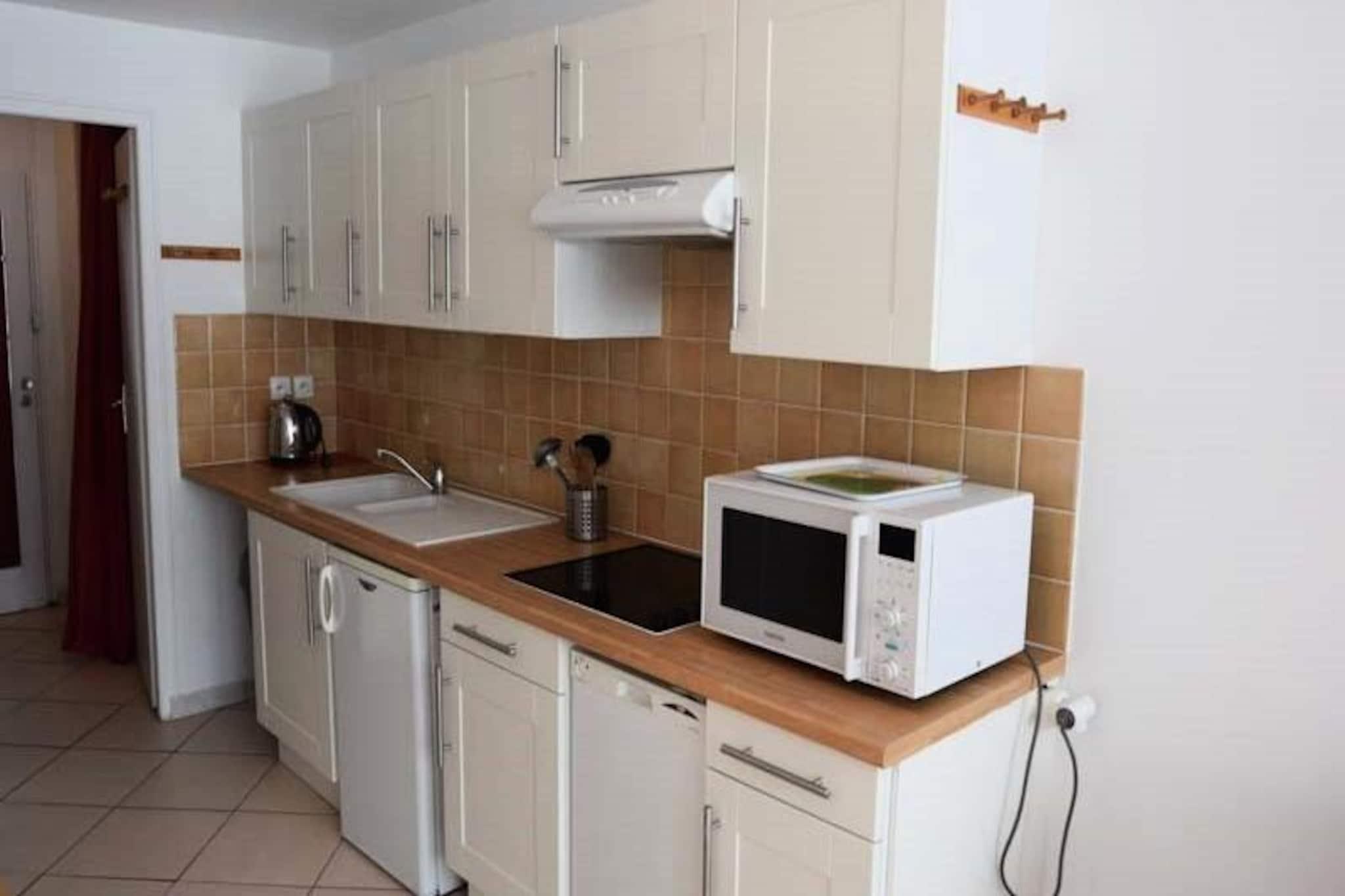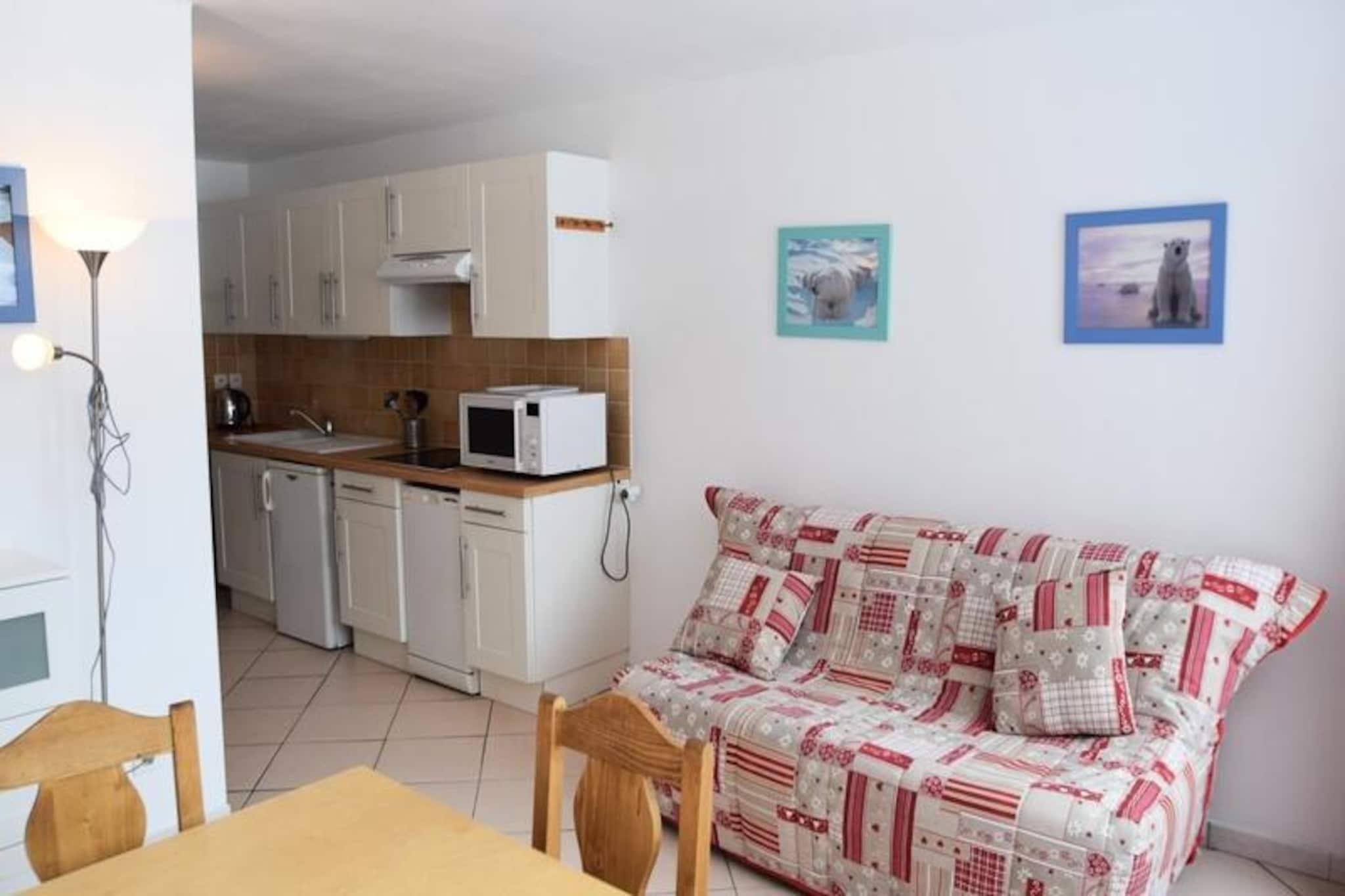 I hjertet af det pulserende Plagne Centre tilbyder denne charmerende lejlighed en unik alpin oplevelse med direkte adgang til pisterne direkte fra din terrasse. Forestil dig at vågne op til den friske bjergluft, træde ud i den sneklædte vidde og begynde din skidag uden forsinkelse. Denne bolig er perfekt beliggende i stueetagen på pistsiden og kombinerer bekvemmelighed med komfort, hvilket gør den til et ideelt valg for par eller små familier, der søger et hyggeligt tilflugtssted midt i de franske alper. Den sydvendte terrasse inviterer dig til at nyde vintersolen, mens du nyder den fredfyldte udsigt over de omkringliggende tinder. \n\nIndenfor er lejligheden omhyggeligt designet til at rumme op til fem gæster. Stuen har en dobbelt sovesofa, en spiseplads og et tv til afslappende aftener efter en dag på pisterne. Det kompakte, men veludstyrede køkken inkluderer keramiske kogeplader, køleskab, mikrobølgeovn, opvaskemaskine og kaffemaskine, der sikrer, at alle dine kulinariske behov bliver opfyldt. En separat kabine tilbyder køjesenge og en skuffeseng, der giver en hyggelig soveplads til børn eller venner. Badeværelset har et badekar, perfekt til afslapning, og et separat toilet bidrager til den praktiske planløsning. \n\nTræd udenfor og oplev bekvemmelighederne ved Plagne Centre. Fra skibokse til dagplejefaciliteter er alt hvad du behøver kun få øjeblikke væk. Boligen er forbundet med indkøbscenteret og tilbyder nem adgang til restauranter, butikker og afterski-aktiviteter. Uanset om du er her for at stå på ski, udforske eller bare slappe af, sikrer beliggenheden, at du er i hjertet af begivenhederne. \n\nDenne lejlighed er mere end bare et sted at bo; den er en port til uforglemmelige alpine eventyr. Med sin uovertrufne beliggenhed, hyggelige faciliteter og direkte adgang til pisterne lover den en ferie fyldt med komfort, spænding og varige minder.