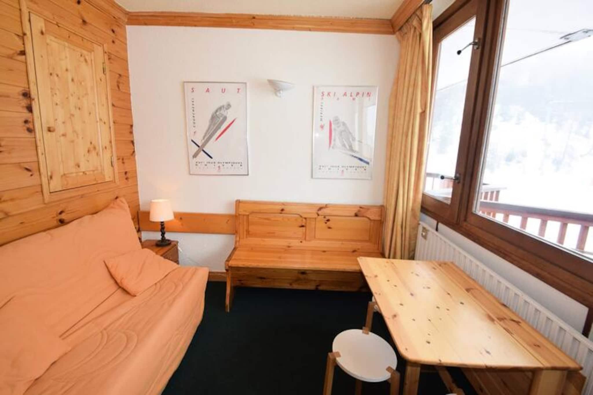 Højt over de sneklædte skråninger i Plagne Centre inviterer dette charmerende studie dig til at opleve magien i de franske alper. Med sin sydvendte balkon vågner du op til en betagende udsigt over bjergene og skiløjperne, mens du nyder den friske alpeluft, mens morgensolen oplyser toppene. Dette hyggelige tilflugtssted er perfekt beliggende på 5. sal i Residence Le France og tilbyder direkte adgang til pisterne, hvilket sikrer, at dine skiløbseventyr begynder i det øjeblik, du træder udenfor. Uanset om du er her for vinterspænding eller sommervandreture, er dette studie din port til uforglemmelige alpine øjeblikke. \n\nIndenfor er det 22 m² store studie omhyggeligt designet til at rumme op til fire gæster. Opholdsstuen har en komfortabel dobbeltsovesofa, en spiseplads og et tv til afslappende aftener efter en aktiv dag. En separat sovealkove med køjesenge giver en hyggelig krog til børnene. Køkkenet er udstyret med moderne faciliteter, herunder elektriske kogeplader, køleskab, mikrobølgeovn og opvaskemaskine, hvilket gør det nemt at tilberede måltider. Badeværelset har badekar og toilet, hvilket sikrer bekvemmelighed og komfort under hele dit ophold. Med dyner inkluderet og valgfrie tjenester som rengøring og leje af sengetøj, er din ferie skræddersyet til dine behov.\n\nResidence Le France er ideelt placeret ved foden af ??pisterne og forbundet med nærliggende butikker via et galleri, hvilket gør det nemt at komme til skiudlejning, restauranter og lokale bekvemmeligheder. Om sommeren forvandles regionen til et paradis for vandrere og cyklister, med stier, der snor sig gennem frodige landskaber og tilbyder en fantastisk udsigt over Tarentaise-dalen. Uanset om du udforsker den pulserende landsby eller vover dig ud i vildmarken, er alt hvad du behøver inden for rækkevidde.\n\nVælg dette studie for dets uovertrufne beliggenhed, hyggelige atmosfære og spektakulære udsigt. Uanset om du søger adrenalinfyldte dage på pisterne eller rolige aftener under stjernerne, lover dette alpine tilflugtssted en ferie fyldt med dyrebare minder.