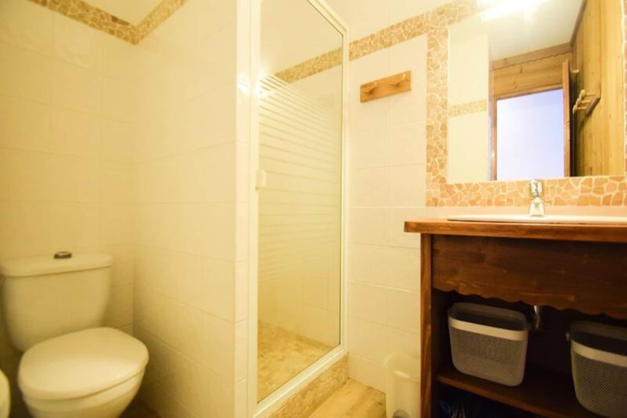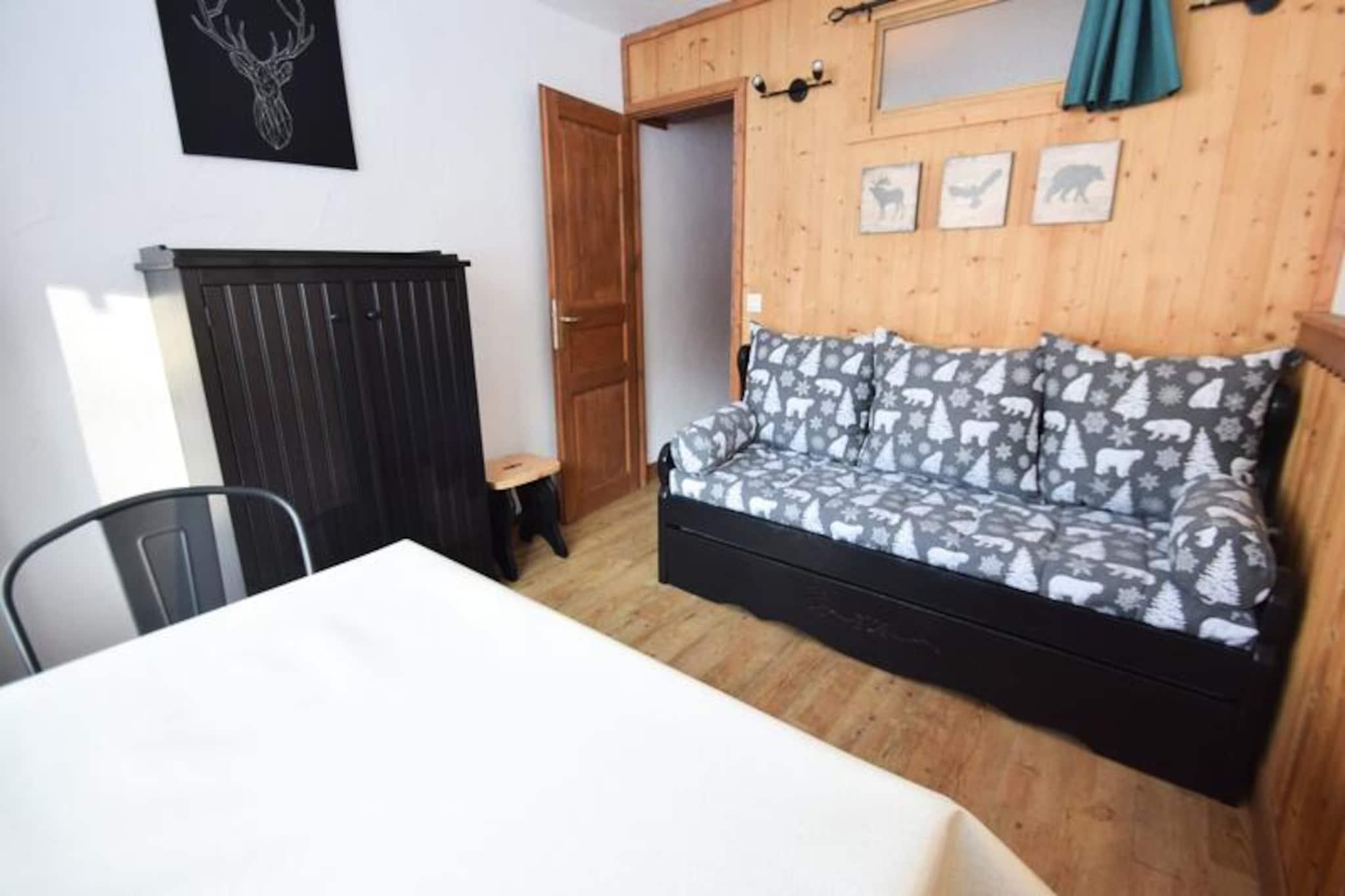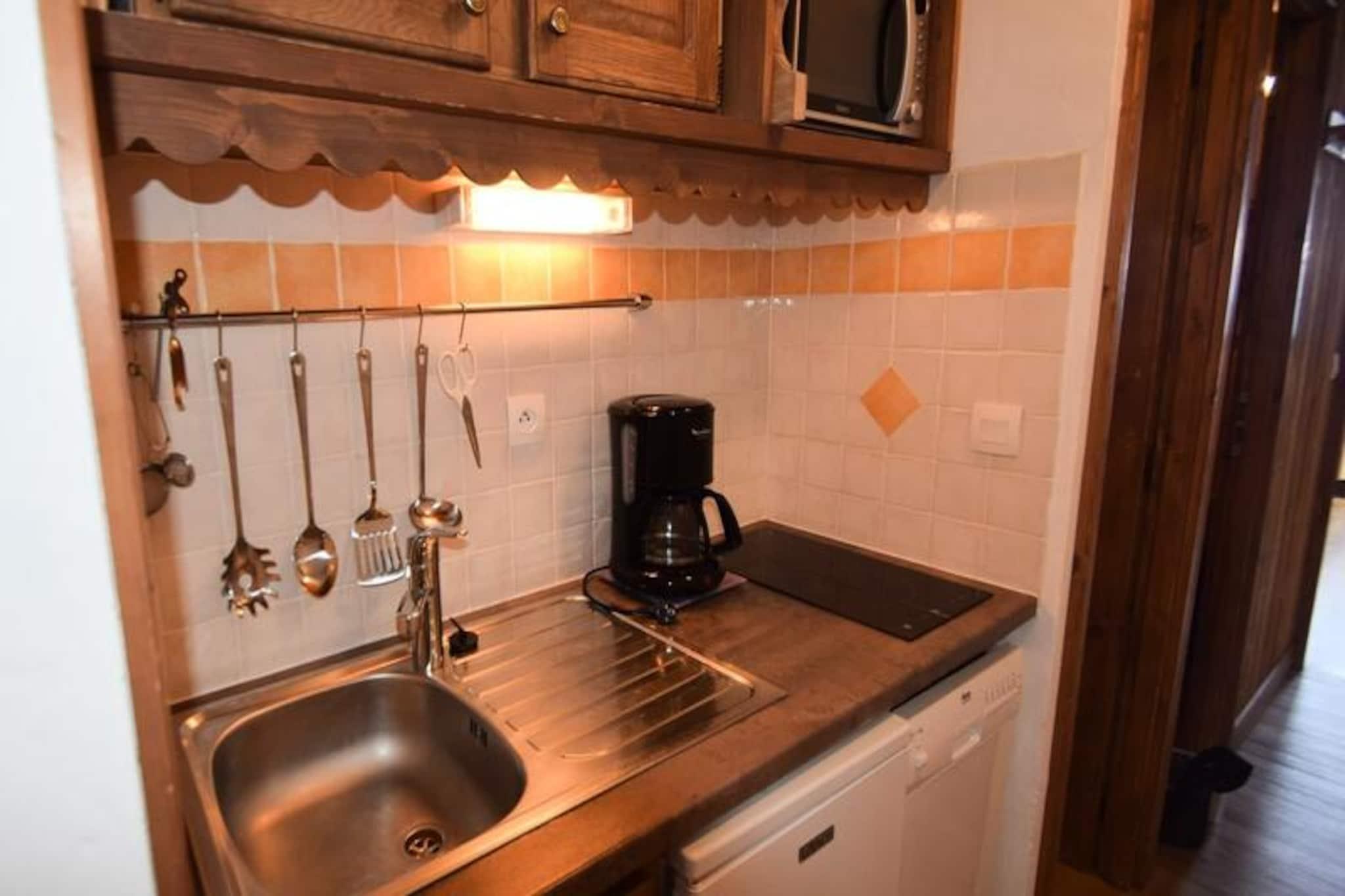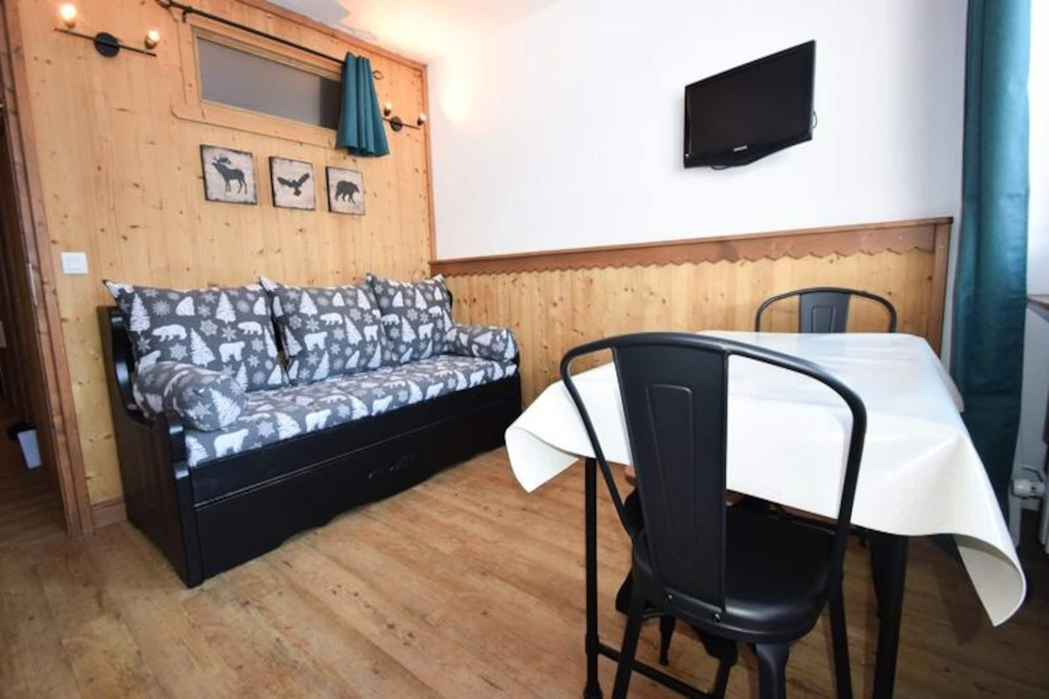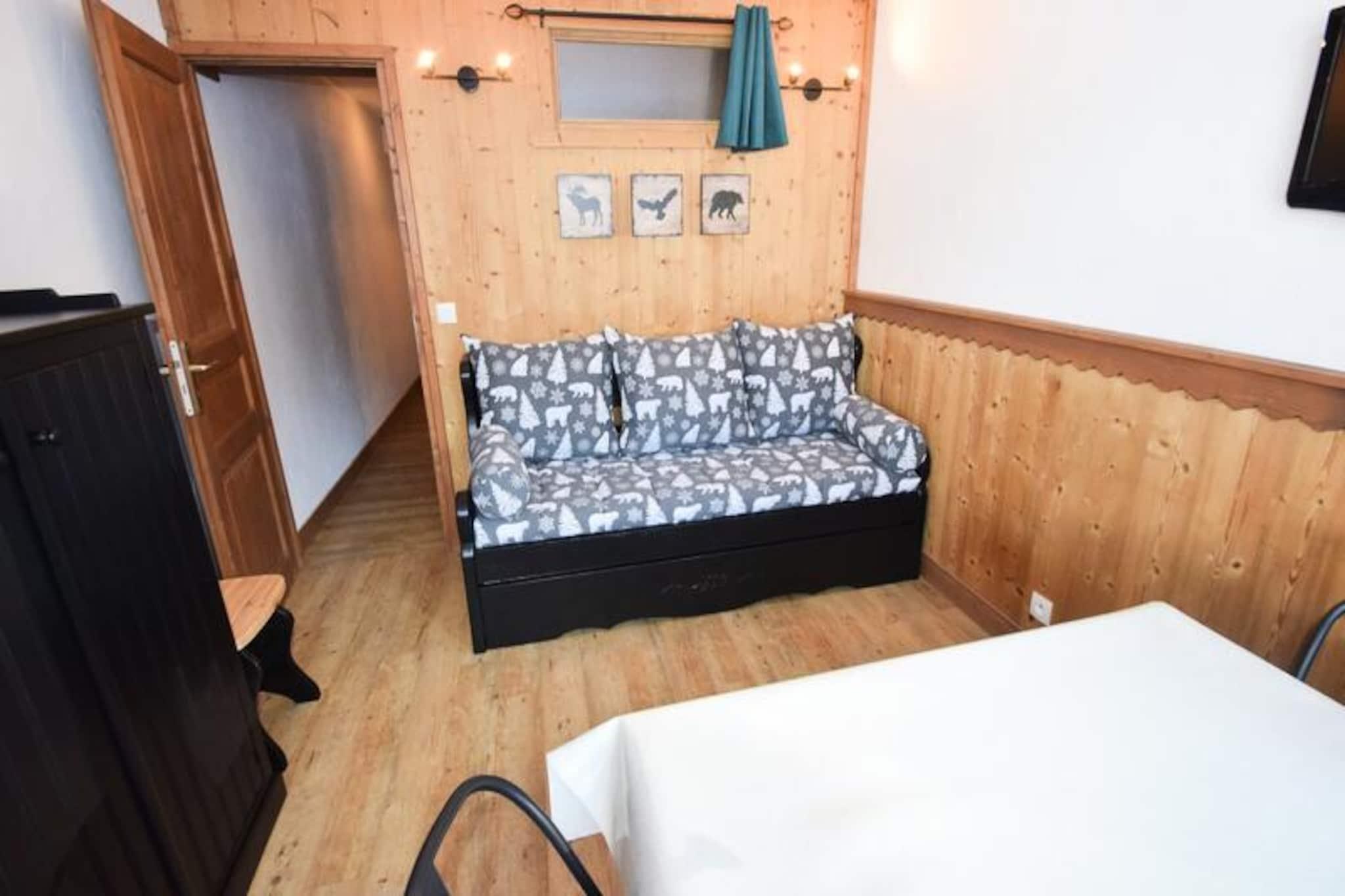 Forestil dig at vågne op til synet af uberørte pister og de majestætiske Alper, der strækker sig foran dig. Denne charmerende studiolejlighed, beliggende i hjertet af Plagne Centre, tilbyder et hyggeligt tilflugtssted for op til fire gæster. Med sin sydvendte balkon kan du nyde den fantastiske udsigt over bjergene og skiløjperne, hvilket gør den til den perfekte base for dine alpine eventyr. Uanset om du er her for at grave dig gennem sneen eller blot slappe af i den rolige bjergatmosfære, lover denne bolig et uforglemmeligt ophold. \n\nTræd indenfor og oplev et gennemtænkt designet rum med moderne bekvemmeligheder for din komfort. Studiolejligheden har et fuldt udstyret køkken med induktionskogeplader, køleskab, kombiovn og opvaskemaskine, så du har alt, hvad du behøver for at tilberede lækre måltider efter en dag på pisterne. Opholdsstuen kan prale af to udtrækssenge, spiseplads og tv, mens en separat sovealkove med køjesenge giver ekstra privatliv. Det lyse og renoverede interiør skaber en varm og indbydende atmosfære, suppleret af et veludstyret badeværelse med bruser og toilet. \n\nLejligheden er bekvemt placeret på 4. sal med elevatoradgang og har også et skirum til nem opbevaring af dit udstyr. Plagne Centre tilbyder et pulserende udvalg af butikker, restauranter og afterski-aktiviteter, alt sammen inden for gåafstand. For skientusiaster er pisterne kun få skridt væk, hvilket giver problemfri adgang til det berømte Paradiski-område. Om sommeren forvandles området til et paradis for vandrere og naturelskere med stier, der afslører Alpernes betagende skønhed. \n\nUanset om du søger spændende vintersport eller rolige sommerferier, er dette studie din port til det bedste af de franske alper. Book dit ophold nu og skab minder, der vil vare hele livet.