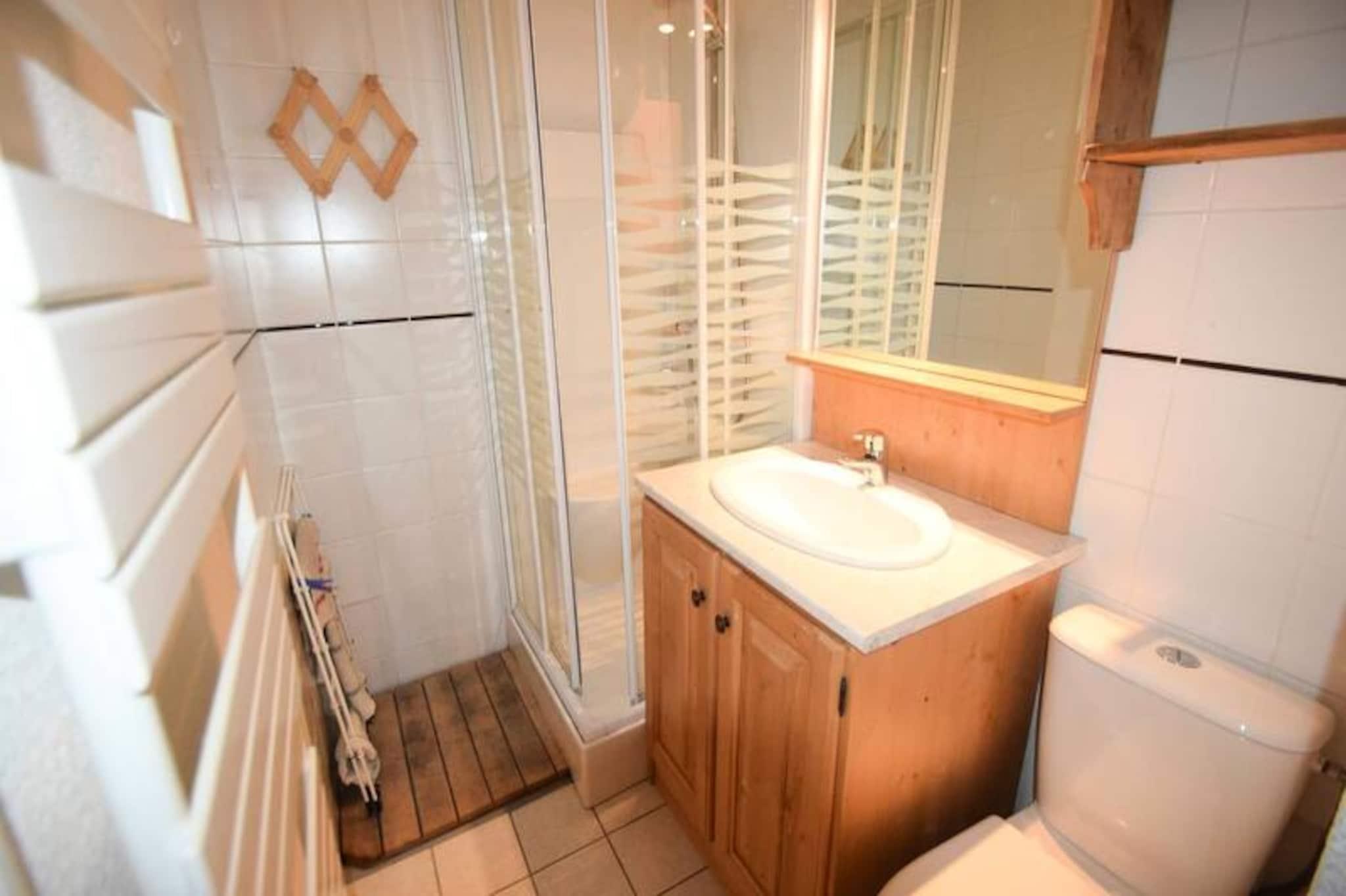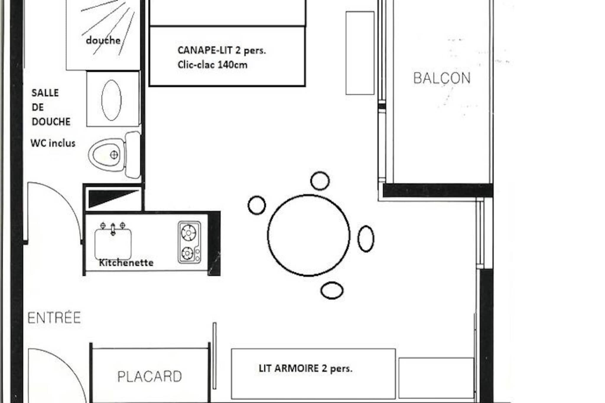 I hjertet af Plagne Villages tilbyder denne charmerende studiolejlighed et varmt og imødekommende tilflugtssted for op til tre gæster. Med sin nordvendte balkon med udsigt over den rolige parkeringsplads er dette hyggelige sted perfekt til dem, der søger en bekvem og komfortabel base for deres alpine eventyr. Den hævede beliggenhed i stueetagen sikrer nem adgang, mens nærheden til butikker og direkte adgang til skipisterne gør det til et ideelt valg for vintersportsentusiaster. \n\nIndvendigt er studiolejligheden omhyggeligt designet med et separat køkken med moderne bekvemmeligheder såsom keramiske kogeplader, køleskab, kombinationsovn og elektrisk kaffemaskine. Stuen har en hyggelig spiseplads og et tv, suppleret med en komfortabel 140 cm sovesofa. En dobbeltseng, der kan foldes ud i soveværelset, sikrer afslappende nætter, mens badeværelset har bruser og toilet for ekstra bekvemmelighed. Skiboksen i stueetagen tilføjer praktisk plads og gør det nemt at opbevare dit udstyr efter en dag på pisterne.\n\nResidensens førsteklasses beliggenhed i feriestedet giver gæsterne mulighed for at nyde den pulserende atmosfære i Plagne Villages, med butikker, restauranter og afterski-muligheder kun en kort gåtur væk. Uanset om du er her for at grave dig gennem den uberørte sne eller udforske de naturskønne vandrestier om sommeren, sikrer den direkte adgang til pisterne, at hver dag begynder med lethed og spænding.\n\nVælg dette studie til en problemfri alpeferie, hvor komfort møder bekvemmelighed i hjertet af de franske alper. Uanset om du besøger stedet for skiløb, afslapning eller eventyr, tilbyder denne ejendom de perfekte rammer for uforglemmelige minder.