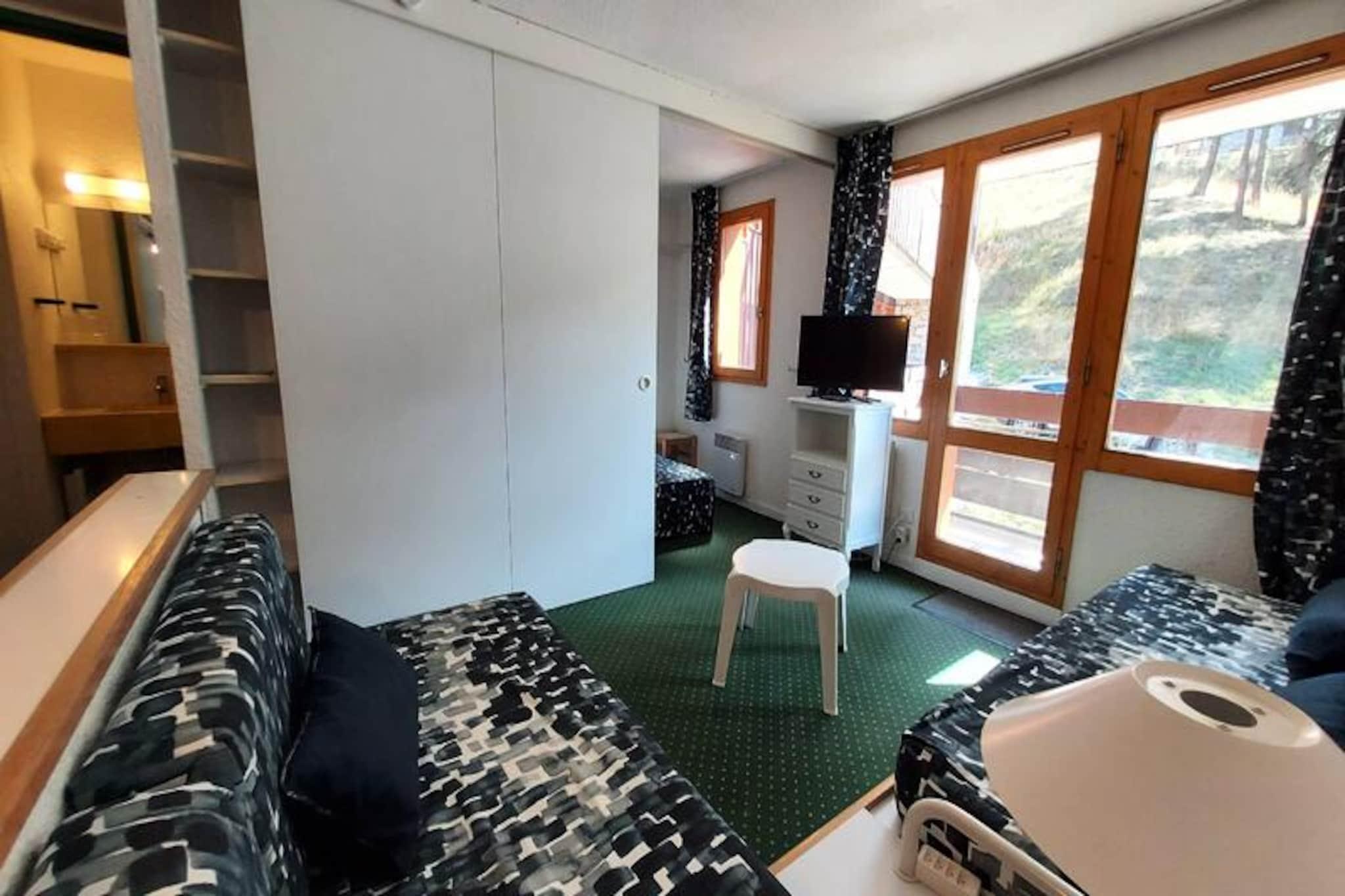Højt over den charmerende alpelandsby Montchavin tilbyder denne hyggelige lejlighed på 25 m² et roligt tilflugtssted for op til fire gæster. Beliggende på tredje sal i Le 4ème Dé-residensen, tilbyder den et varmt og indbydende sted at slappe af efter en dag med bjergeventyr. Den sydvendte balkon byder på en fantastisk udsigt over feriestedet, hvor skønheden i de omkringliggende tinder møder den pulserende energi fra landsbyen nedenfor. Uanset om du er her for spændingen ved skiløb eller naturens ro, er denne lejlighed din perfekte base. Indenfor finder du et gennemtænkt design med et soveværelse med en komfortabel dobbeltseng og en flytbar skillevæg for ekstra privatliv. Stuen, der er udstyret med to enkeltsenge og et tv, tilbyder et hyggeligt sted at slappe af. Køkkenområdet er fuldt udstyret med moderne bekvemmeligheder, herunder mikrobølgeovn, opvaskemaskine, induktionskogeplader, køleskab og endda et raclette- og fonduesæt til autentiske alpine spiseoplevelser. Badeværelset med separat toilet sikrer bekvemmelighed, mens lejlighedens dyner lover en god nats søvn. Bemærk venligst, at dette er en ikke-ryger, kæledyrsfri lejlighed uden Wi-Fi, så du virkelig kan koble fra og nyde bjergatmosfæren. Le 4ème Dé er veludstyret med to elevatorer og et skirum for din bekvemmelighed. Beliggende kun 200 meter fra pisterne og 300 meter fra feriestedets centrum, har du nem adgang til alle de aktiviteter og faciliteter, Montchavin har at byde på. Den nærliggende skov tilføjer et strejf af naturlig ro, mens den traditionelle arkitektur i Hameau du Sauget-kvarteret skaber en malerisk alpin atmosfære. Parkering er relativt nem, hvilket gør din ankomst og afrejse problemfri. Uanset om du er her for at grave dig gennem frisk puddersne, udforske naturskønne vandrestier eller blot nyde den alpine charme, tilbyder denne lejlighed den perfekte blanding af komfort, bekvemmelighed og betagende omgivelser. Lad magien ved Montchavin skabe minder, du vil værdsætte for evigt.