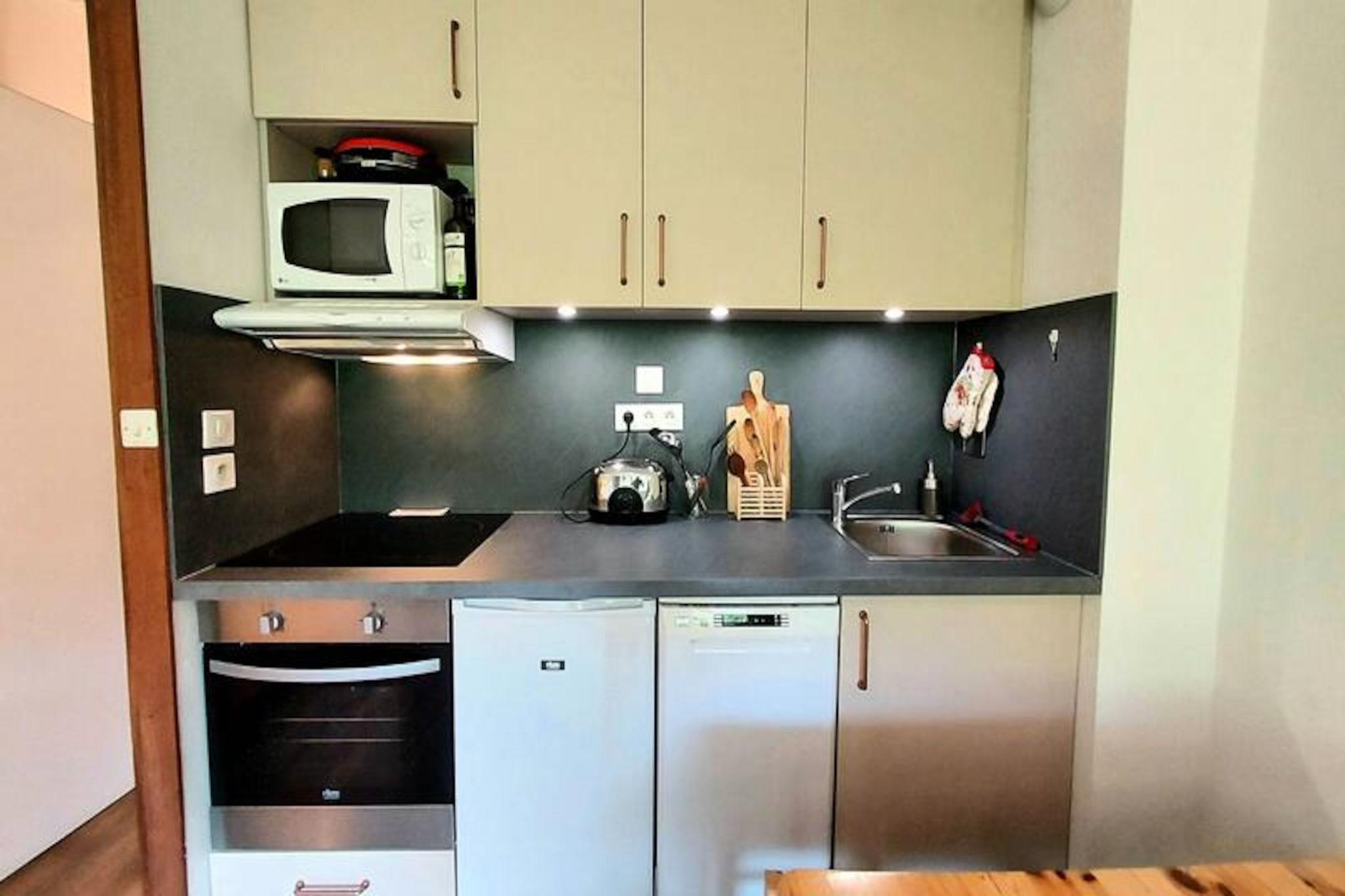 Nyd roen i de franske alper i Taïga-residensen, hvor fred og ro møder eventyr. Dette charmerende fristed er perfekt placeret for skiløbere, da det tilbyder direkte ski-in/ski-out adgang til pisterne. Fra din komfortable sydvendte altan kan du nyde den uforstyrrede udsigt over de snedækkede pister, mens du nyder solskinnet hele dagen. Uanset om du er her for at suse gennem uberørt puddersne eller blot slappe af midt i det betagende alpine landskab, lover denne bolig en uforglemmelig ferie. Træd indenfor og oplev et lyst og indbydende opholdsrum med en dobbelt sovesofa og en hyggelig atmosfære, der er perfekt til afslappende aftener. Det nyrenoverede køkken er fuldt udstyret med moderne apparater, herunder keramisk kogeplade, ovn, mikroovn og endda en raclette-grill for en autentisk bjerg-spiseoplevelse. Soveværelset har komfortable køjesenge og rigelig opbevaringsplads, mens det renoverede badeværelse har et badekar, hvor du kan slappe af efter en dag på pisterne. Yderligere bekvemmeligheder som et skiskab og gratis parkering lige uden for boligen gør dit ophold problemfrit. Taïga-boligen ligger kun 600 meter fra butikker og ved foden af pisterne og giver uovertruffen adgang til det livlige Plagne Centre. Dette aktivitetscenter forbinder dig med La Grande Rochette, der tilbyder et af de mest fantastiske 360°-panoramaer i Alperne. Uanset om du udforsker det livlige après-ski-miljø eller beundrer de majestætiske bjergtoppe, er hvert øjeblik her fyldt med alpin magi. Vælg Taïga Residence til din næste bjergferie og skab minder, der vil vare hele livet. Med sin perfekte blanding af komfort, bekvemmelighed og spektakulære omgivelser er det det ideelle udgangspunkt for dine alpine eventyr.