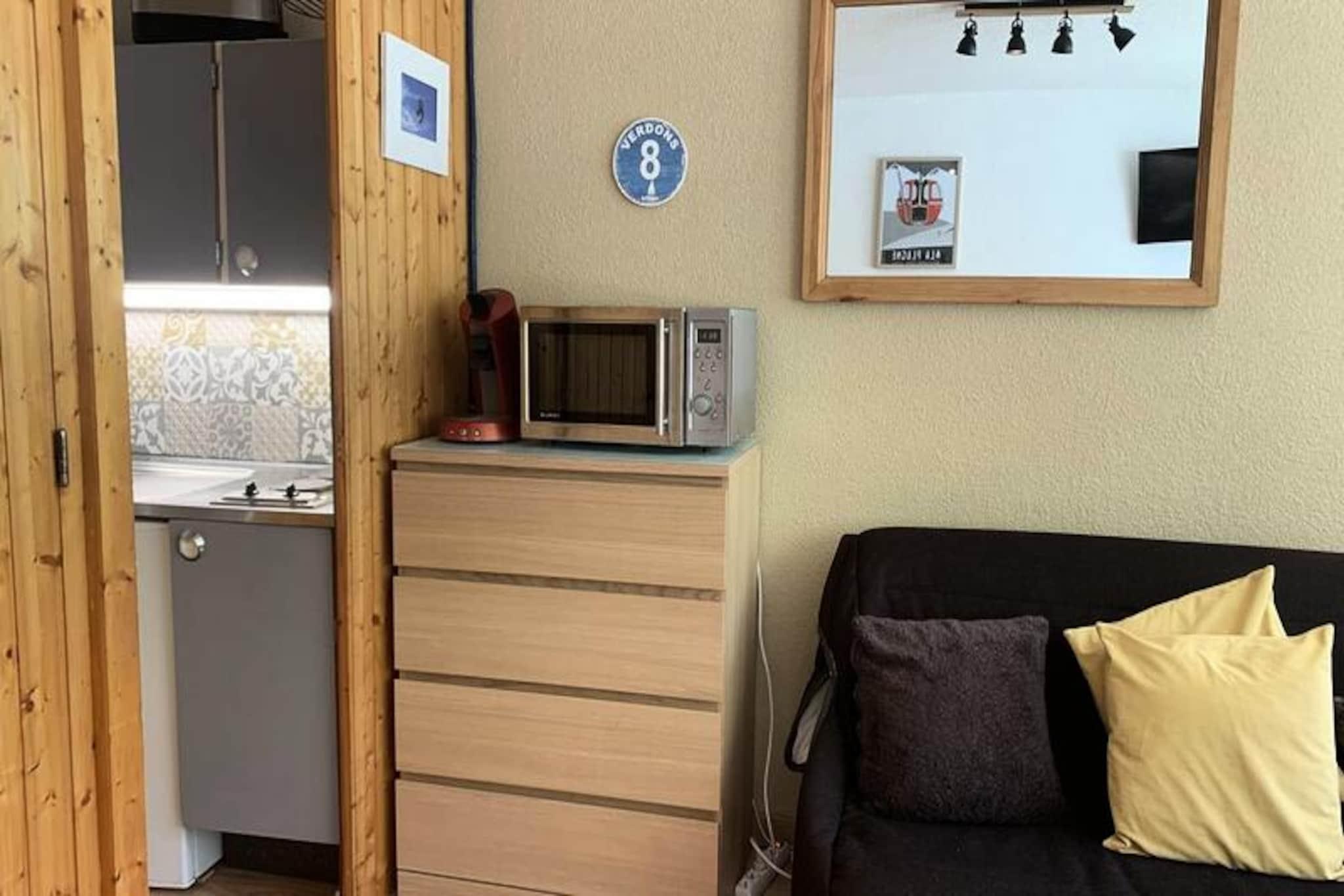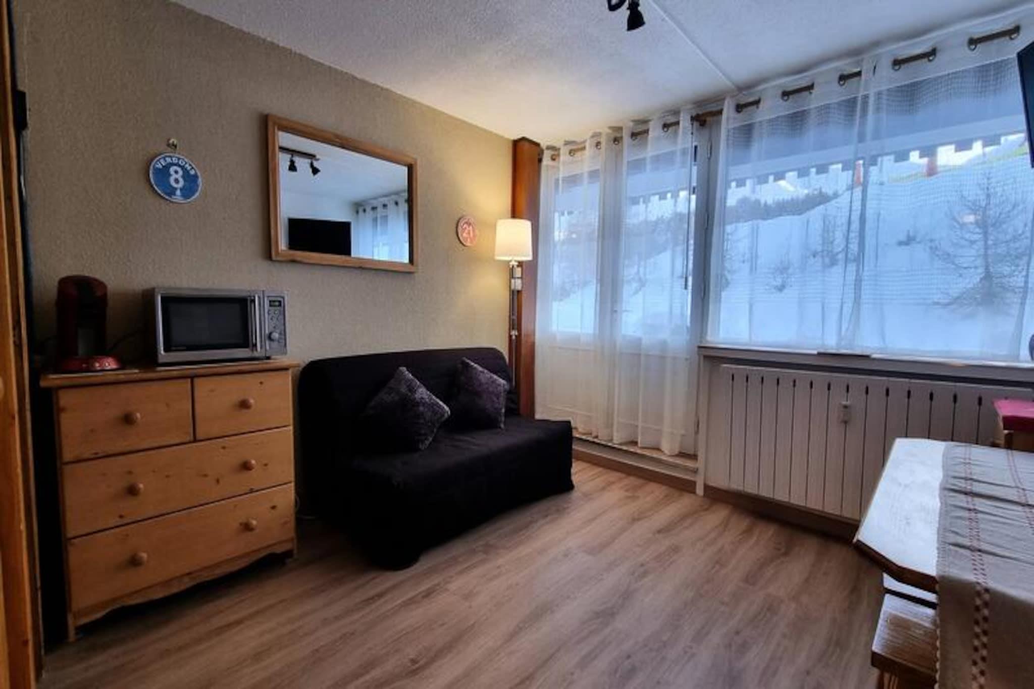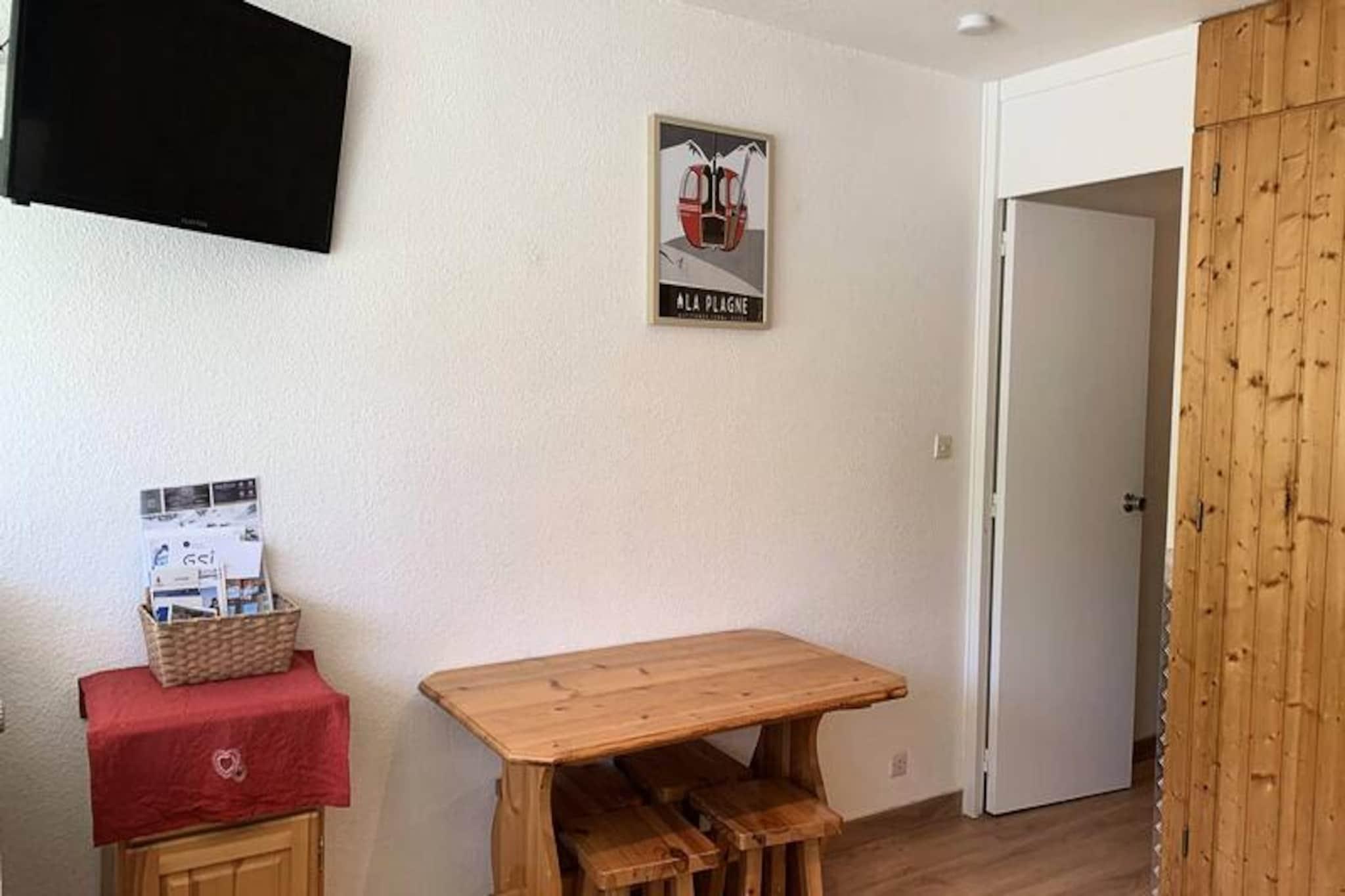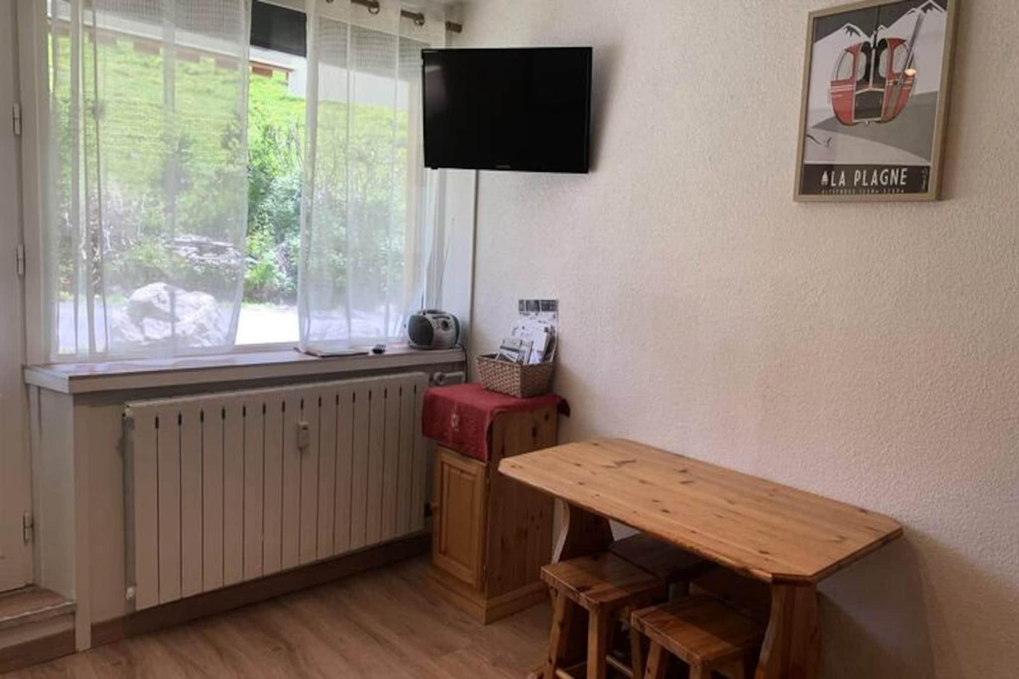 Højt oppe i de franske alper, hvor sneen glitrer under vintersolen, og luften er frisk og forfriskende, tilbyder denne charmerende lejlighed i stueetagen et roligt tilflugtssted kun få skridt fra pisterne. Forestil dig at vågne op i hjertet af Plagne Centre, omgivet af betagende bjergudsigter og den pulserende energi fra en af ??Alpernes mest berømte skisportssteder. Uanset om du er her for at grave dig gennem frisk puddersne eller blot nyde den alpine atmosfære, er dette hyggelige gemmested den perfekte base for dine eventyr. Kompakt, men gennemtænkt designet, har den 24 m² store lejlighed en sydvendt terrasse, hvor du kan sole dig efter en dag på pisterne. Opholdsstuen har en komfortabel sovesofa og et tv, mens entréen er udstyret med køjesenge, hvilket gør den ideel til små familier eller vennegrupper. Det separate køkken er fuldt udstyret med en kombiovn, køleskab og elektrisk komfur, så du kan tilberede solide måltider til dine alpine eventyr. Et skiskab sikrer, at dit udstyr altid er klar til det næste eventyr, og gratis parkering lige foran boligen øger bekvemmeligheden. Beliggende kun 100 meter fra pisterne og 600 meter fra de livlige butikker og serviceydelser i Plagne Centre, tilbyder lejligheden uovertruffen adgang til alt, hvad du behøver. Herfra kan du bestige La Grande Rochette for at nyde en af ??de mest fantastiske 360° panoramaer i Alperne eller udforske det store Paradiski-område, kendt for sit skiløb og snowboarding i verdensklasse. Om sommeren forvandles regionen til et paradis for vandrere og mountainbikere med stier, der snor sig gennem frodige alpine enge og barske tinder. Uanset om du søger spændende udendørseventyr eller en fredelig bjergflugt, inviterer denne lejlighed dig til at opleve Alpernes magi i enhver sæson. Book dit ophold i dag og skab uforglemmelige minder i dette fortryllende alpine tilflugtssted.