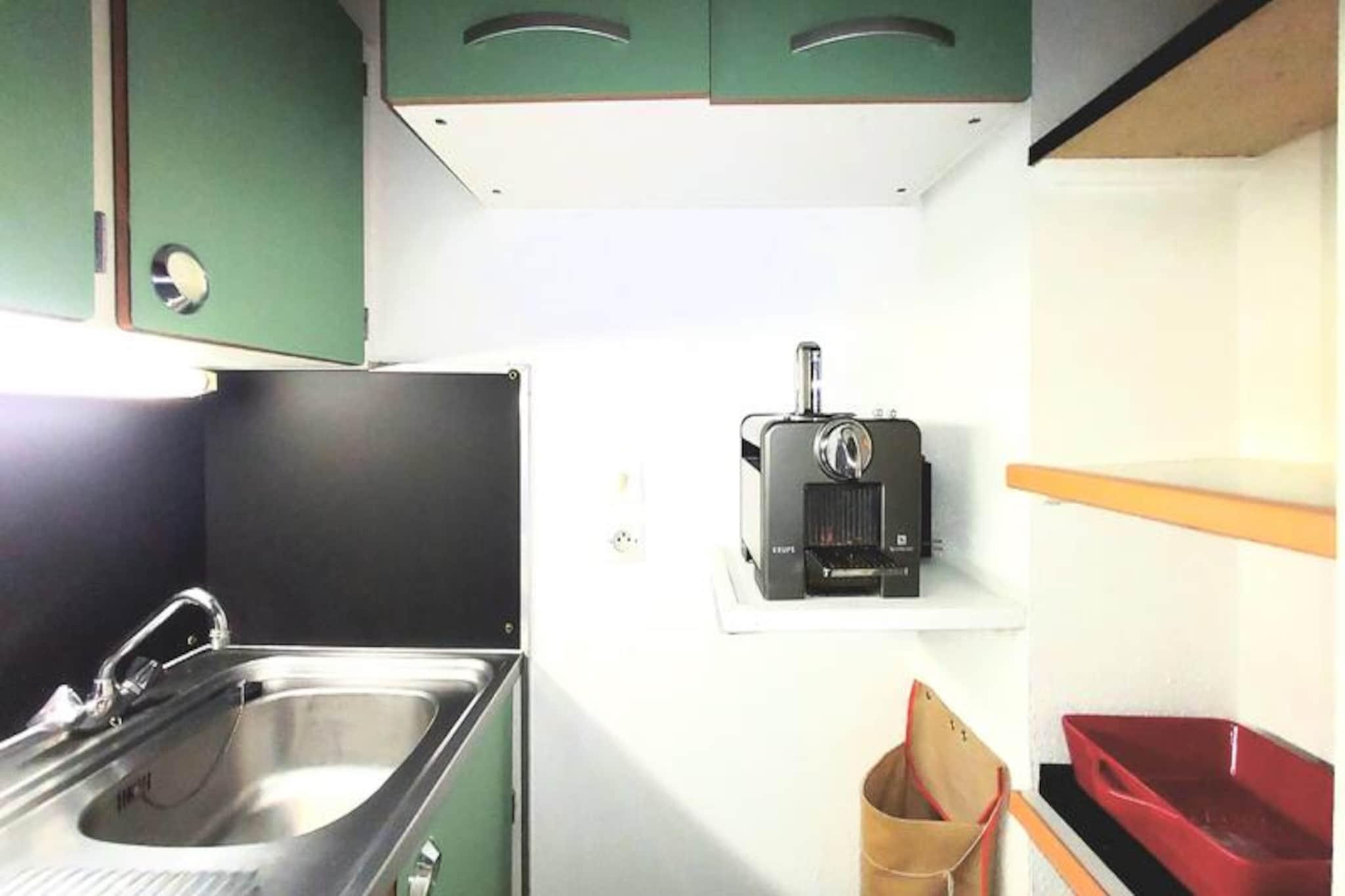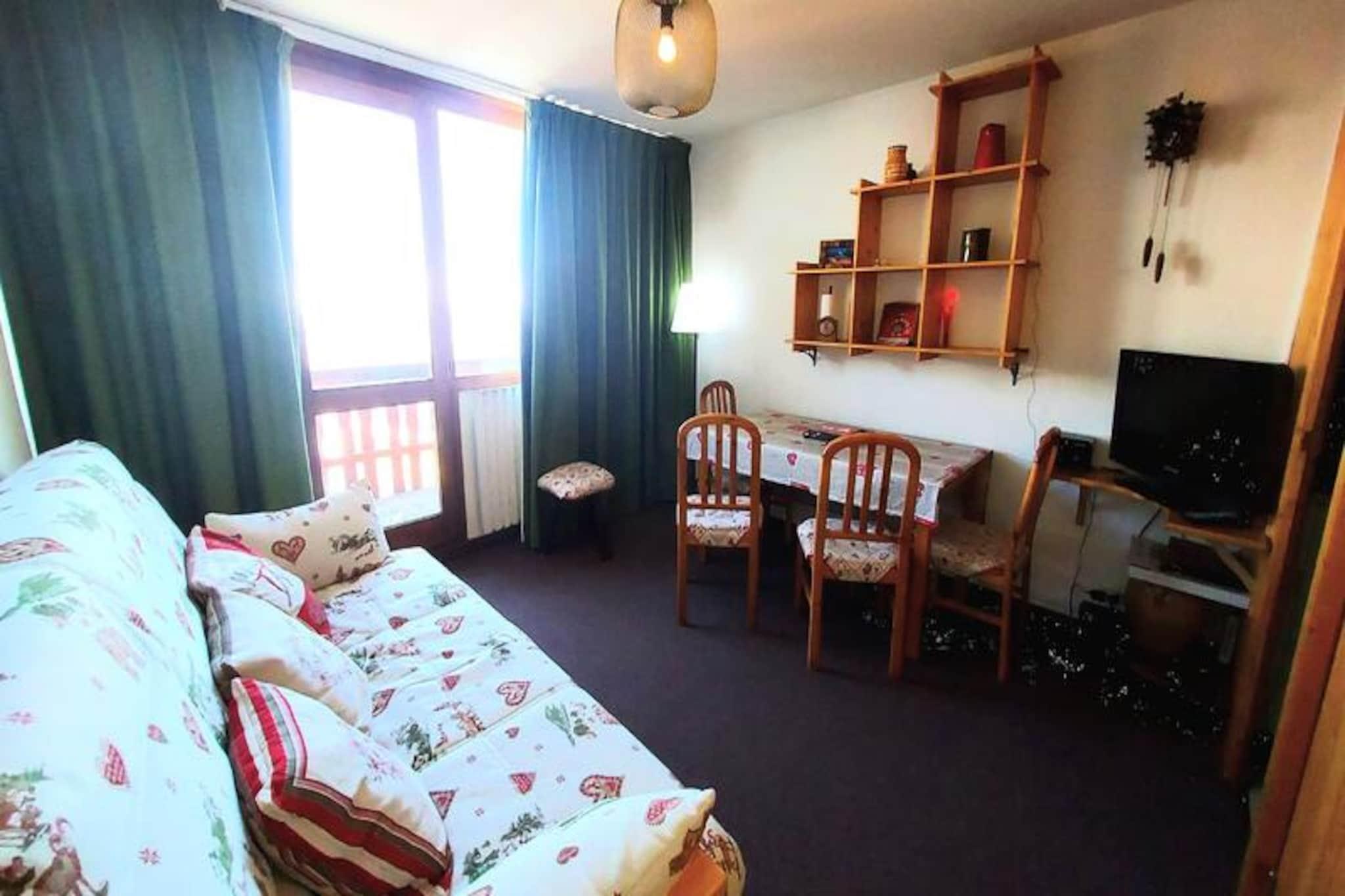 Højt over Tarentaise-dalen tilbyder denne charmerende lejlighed på 20 m² et hyggeligt alpint tilflugtssted med betagende udsigt mod vest. Beliggende på tredje sal i en fredelig treetagers bolig er det det perfekte sted at slappe af efter en dag med eventyr i de franske alper. Forestil dig at nippe til din morgenkaffe på balkonen, se solen gå ned over dalen eller blot nyde den fredfyldte bjergatmosfære. Med pisterne kun 100 meter væk er du aldrig langt fra alt, hvad der sker. Indvendigt er lejligheden omhyggeligt designet til at maksimere komfort og funktionalitet. Stuen har en komfortabel sovesofa (140x190) og et tv, hvilket skaber et indbydende rum at slappe af. Entréhallen har praktiske køjesenge (80x190), mens det separate køkken er fuldt udstyret med moderne bekvemmeligheder såsom mikrobølgeovn, køleskab, to kaffemaskiner (KRUPS og italiensk), en elektrisk ovn, keramiske kogeplader og endda en raclettegrill til autentisk alpin mad. Badeværelset har badekar og toilet, hvilket sikrer en forfriskende afslutning på din dag. Der er også et skiopbevaringsrum til rådighed for din bekvemmelighed, og der er gratis parkering lige uden for boligen. Plagne Centre, det pulserende hjerte af feriestedet, ligger kun 600 meter væk. Her finder du et udvalg af butikker, tjenester og aktiviteter, der vil forbedre dit ophold. Gå ikke glip af opstigningen til La Grande Rochette, hvor du kan nyde et af de mest fantastiske 360°-panoramaer i Alperne. Uanset om du er her for at stå på ski, vandre eller bare slappe af, placerer denne lejlighed dig i centrum af det hele. Med sin uovertrufne beliggenhed, hyggelige faciliteter og spektakulære udsigt er det den perfekte base for din alpine ferie.