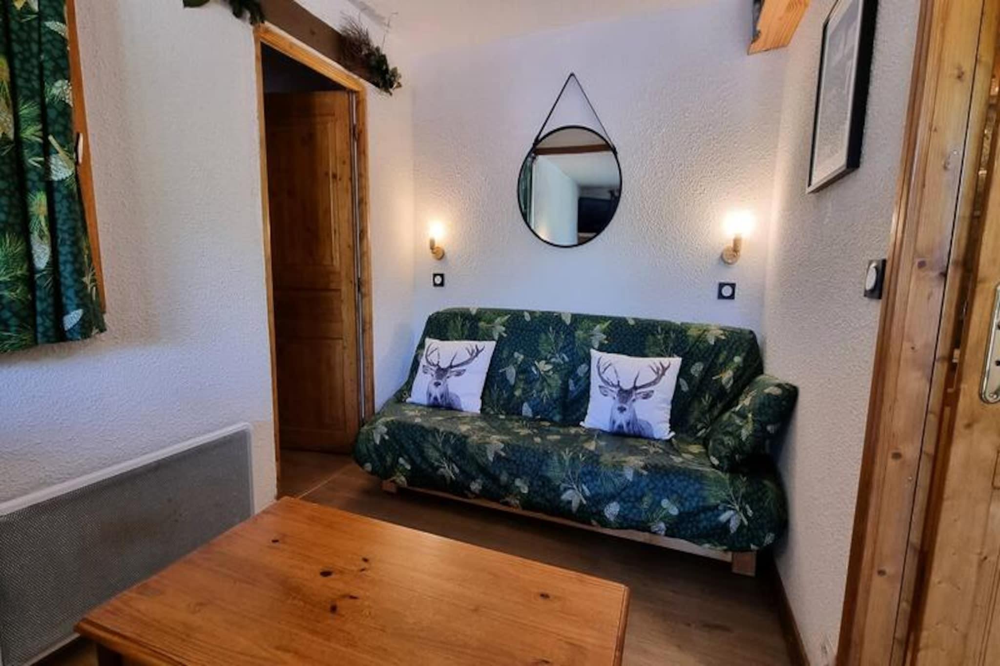 Højt over Tarentaise-dalen tilbyder denne charmerende alpine lejlighed et hyggeligt tilflugtssted i hjertet af Plagne Village. Omgivet af snedækkede tinder og med direkte adgang til pisterne er det et paradis for både vintersportsentusiaster og naturelskere. Forestil dig at vågne op til den friske bjergluft, træde ud på pisterne lige uden for døren og afslutte dagen med en varm drink, mens solen går ned over de franske alper. Lejligheden, der ligger på 2. sal i Résidence des Hameaux, er omhyggeligt designet til komfort og bekvemmelighed. Stuen har et fjernsyn, en sovesofa og en bænk, hvilket skaber et indbydende rum til at slappe af efter en dag på pisterne. Det åbne køkken er udstyret med en miniovn, mikrobølgeovn, komfur og køleskab, perfekt til at tilberede solide måltider. Med to soveværelser - et dobbeltværelse og et køjesengsværelse med eget badeværelse - er den komfortabelt egnet til familier eller små grupper. Plagne Village, der ligger i 2.050 meters højde, er et livligt knudepunkt med direkte adgang til pisterne og en række faciliteter. ESF-skiskolen, butikker og restauranter ligger alle inden for gåafstand, mens en svævebane forbinder dig til Plagne-Centre på få minutter og kører sent om aftenen. Uanset om du står på ski om vinteren eller vandrer om sommeren, er beliggenheden ideel til at udforske det store Paradiski-område. Denne lejlighed er mere end bare et sted at bo; den er en indgang til uforglemmelige alpine eventyr. Fra spændingen på pisterne til roen ved bjergudsigterne er hvert øjeblik her en hyldest til den storslåede natur.