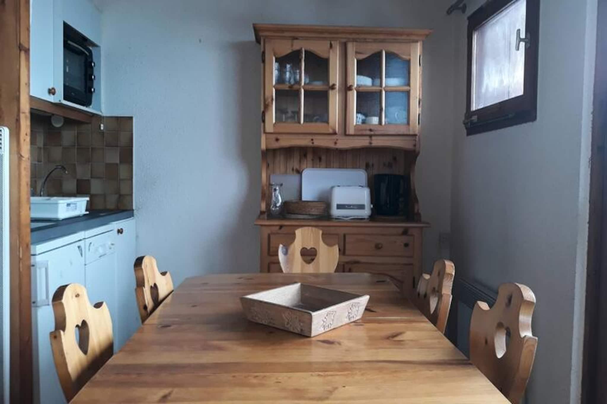 I en imponerende højde af 2.050 meter tilbyder denne charmerende duplexlejlighed i Hameaux 1 Residence et hyggeligt tilflugtssted i hjertet af Plagne Villages. Med sin vestvendte balkon kan du nyde de betagende alpine solnedgange efter en dag med eventyr i et af de mest berømte skiområder i de franske alper. Uanset om du er en familie eller en gruppe venner, lover denne ejendom en uforglemmelig bjergferie. \n\nLejligheden på 42 m² er omhyggeligt designet til at rumme op til seks gæster. Stuen, komplet med en komfortabel sofa og tv, inviterer dig til at slappe af efter en aktiv dag. Det største soveværelse har en blød dobbeltseng, mens mezzaninen tilbyder fire enkeltsenge, hvilket gør den ideel til familier eller grupper. Køkkenet er fuldt udstyret med moderne bekvemmeligheder, herunder opvaskemaskine, ovn, keramisk kogeplade og køleskab, hvilket sikrer, at du har alt, hvad du behøver til hjemmelavede måltider. Et separat badeværelse og toilet bidrager til bekvemmeligheden, mens skiboksen sikrer, at dit udstyr altid er klar til pisterne. Plagne Villages er et sandt skiløberparadis med direkte adgang til pisterne, og ESF-skiskolen ligger kun få skridt væk. Resortet er problemfrit forbundet med Plagne-Centre via svævebane, og en shuttlebus mellem resorterne sikrer nem udforskning af området. Ud over skiløb tilbyder landsbyen en rolig atmosfære med butikker og tjenester i nærheden, hvilket gør den perfekt til familier og dem, der søger et fredeligt alpint tilflugtssted. Uanset om du er her for spændingen ved pisterne eller roen i bjergene, er denne duplexlejlighed din port til et uforglemmeligt alpint eventyr. Fra den friske bjergluft til den bekvemme centrale beliggenhed er hvert øjeblik her designet til at skabe varige minder.
