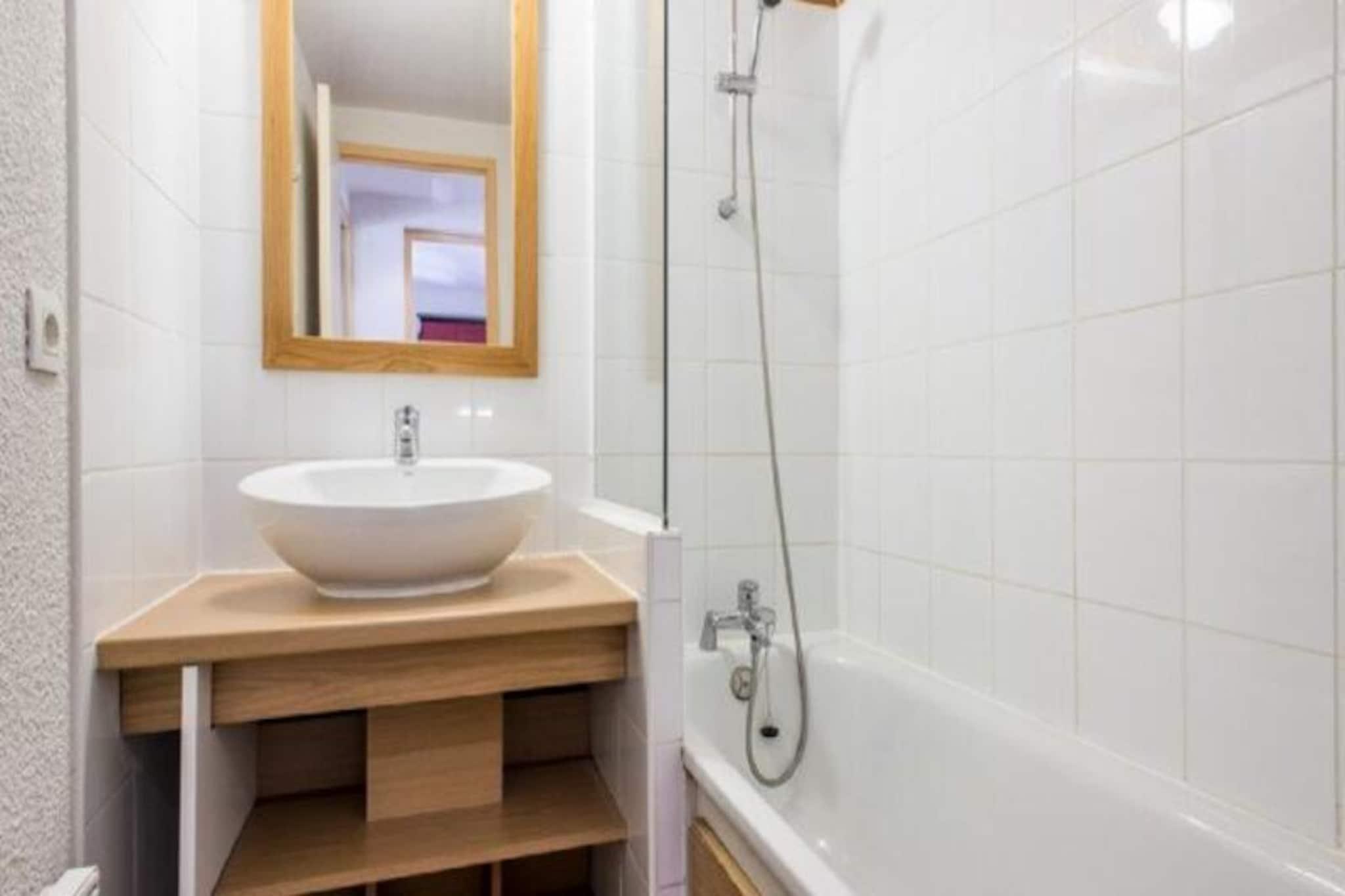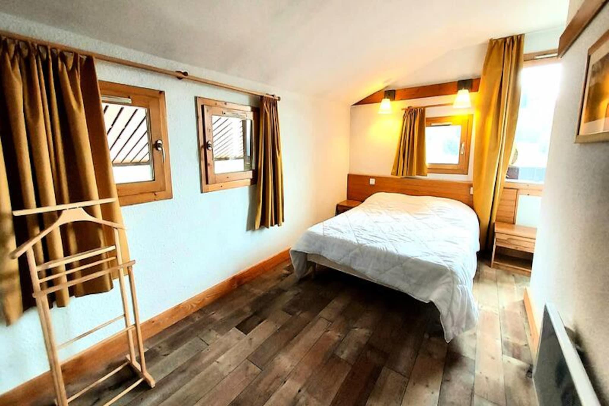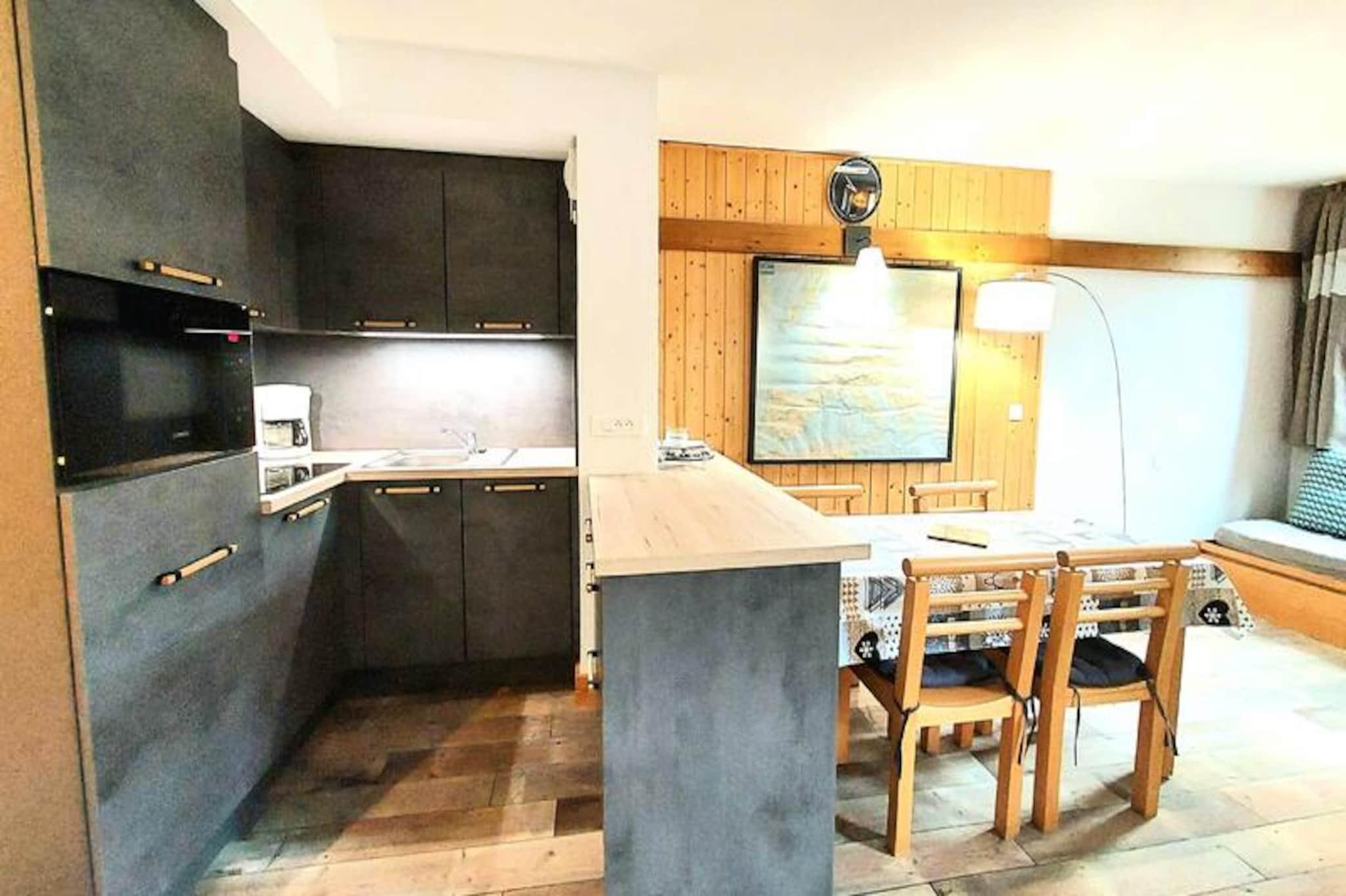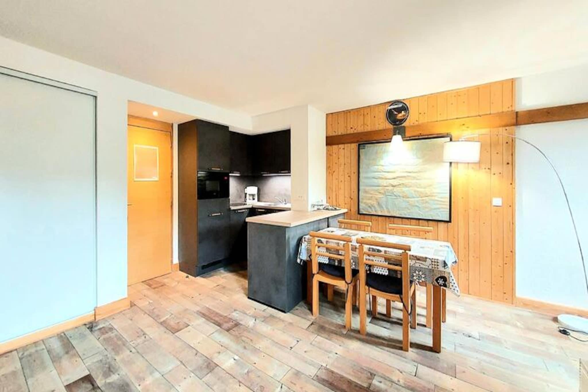 I hjertet af den maleriske Plagne 1800 tilbyder denne charmerende, traditionelle lejlighed et varmt og indbydende tilflugtssted for din alpine ferie. Omgivet af en fredfyldt skov og beliggende i et kompleks af syv bygninger i chaletstil, tilbyder den den perfekte balance mellem ro og bekvemmelighed. Den sydvestvendte balkon inviterer dig til at nyde den fantastiske udsigt over bjergene, mens du nyder den friske alpine luft, hvilket gør det til et ideelt sted at slappe af efter en dag med eventyr. Lejligheden på 40 m² er designet til at rumme op til fem gæster og er omhyggeligt indrettet med fokus på komfort og funktionalitet. Stuen har en hyggelig sovesofa og en udtræksseng, perfekt til afslappende aftener, mens det rummelige soveværelse har en komfortabel dobbeltseng. Det åbne køkken er fuldt udstyret med moderne bekvemmeligheder såsom keramisk kogeplade, mikrobølgeovn og opvaskemaskine, hvilket sikrer, at du har alt, hvad du behøver for at tilberede lækre måltider. Et separat badeværelse med badekar og et separat toilet bidrager til bekvemmeligheden under dit ophold. Yderligere fordele inkluderer et skiskab og en parkeringsplads på den overdækkede plads, hvilket gør din skiferie problemfri. Gæsterne har også adgang til Plagne Lauzes wellness-område med en opvarmet udendørs pool (afhængigt af sæsonbestemt tilgængelighed). Det familievenlige feriested Plagne 1800 er perfekt til afslapning med nærliggende butikker og gratis shuttlebusser til Plagne centrum fra morgen til sen aften. Uanset om du er her for at stå på ski, vandre eller blot for at lade op midt i et betagende alpint landskab, er denne lejlighed din port til uforglemmelige bjergminder. Vælg denne dejlige bolig for dens blanding af komfort, charme og uovertrufne beliggenhed i hjertet af de franske alper. Oplev magien ved Plagne 1800 og skab varige minder med dine kære i dette idylliske tilflugtssted.