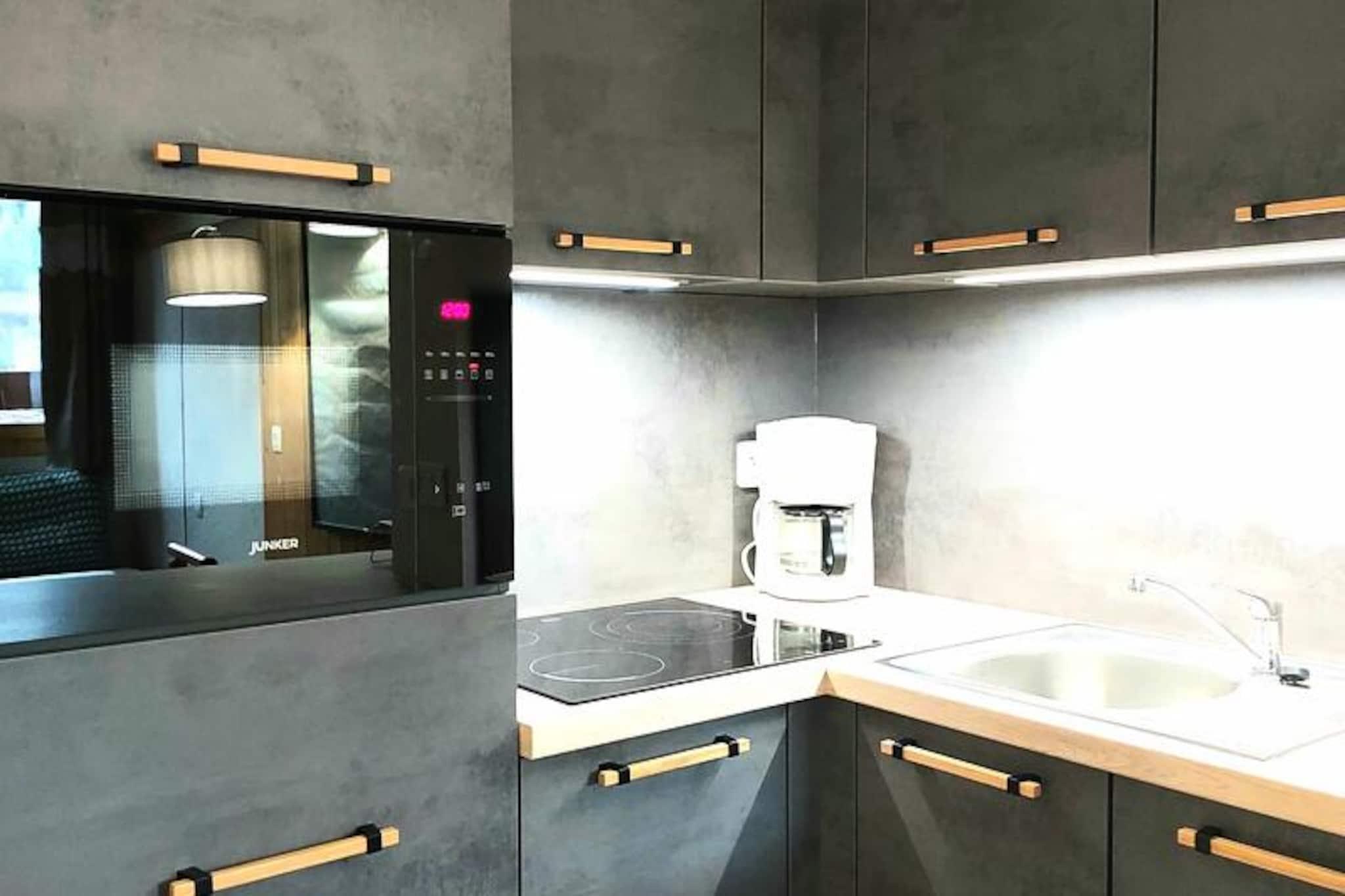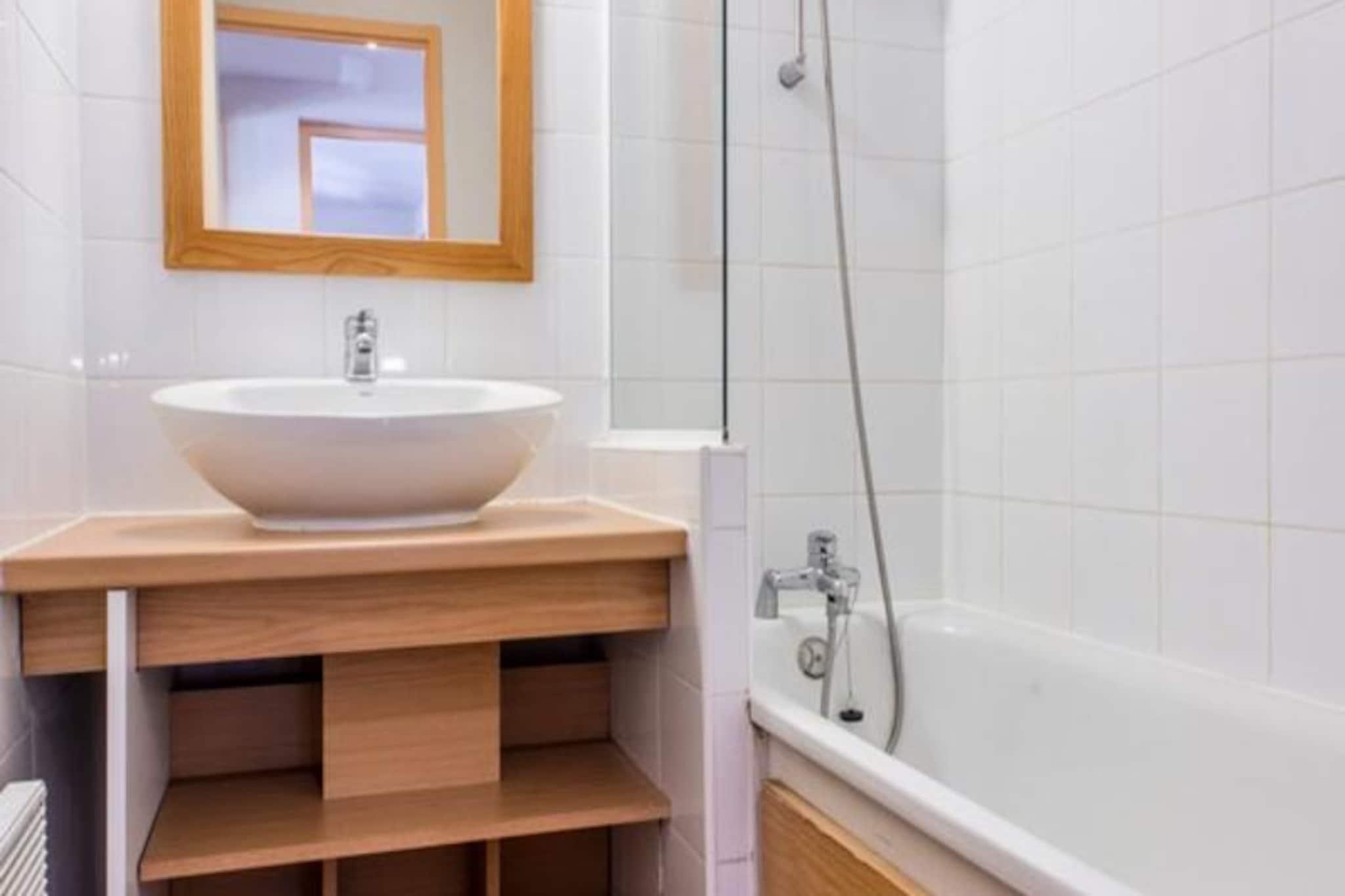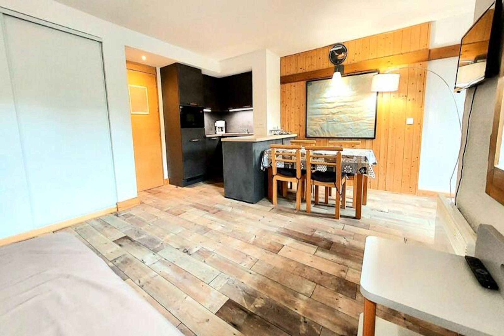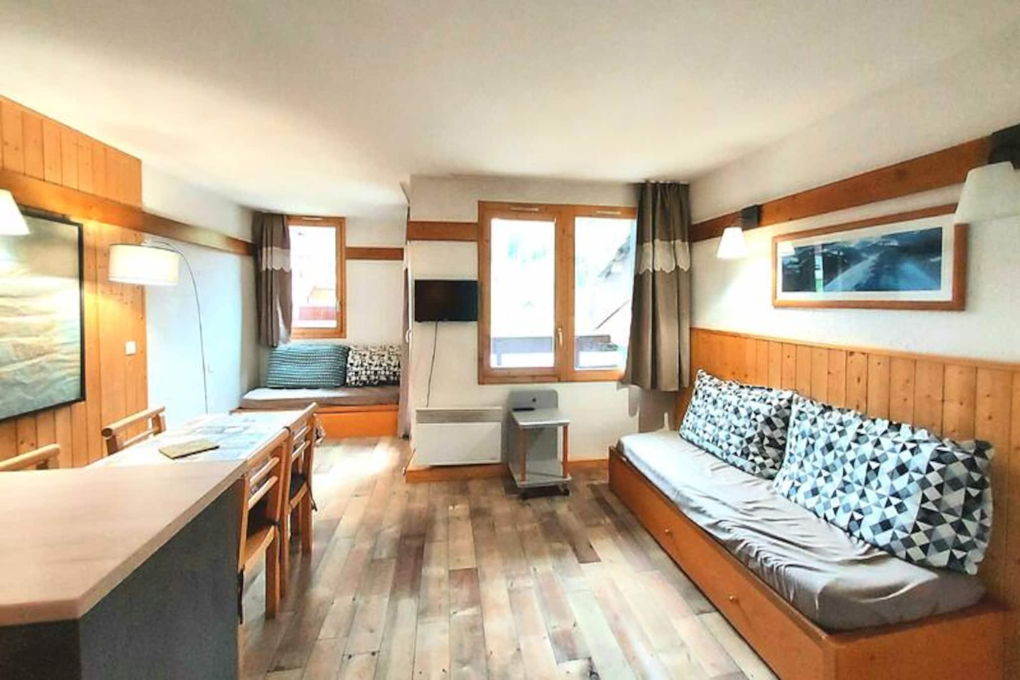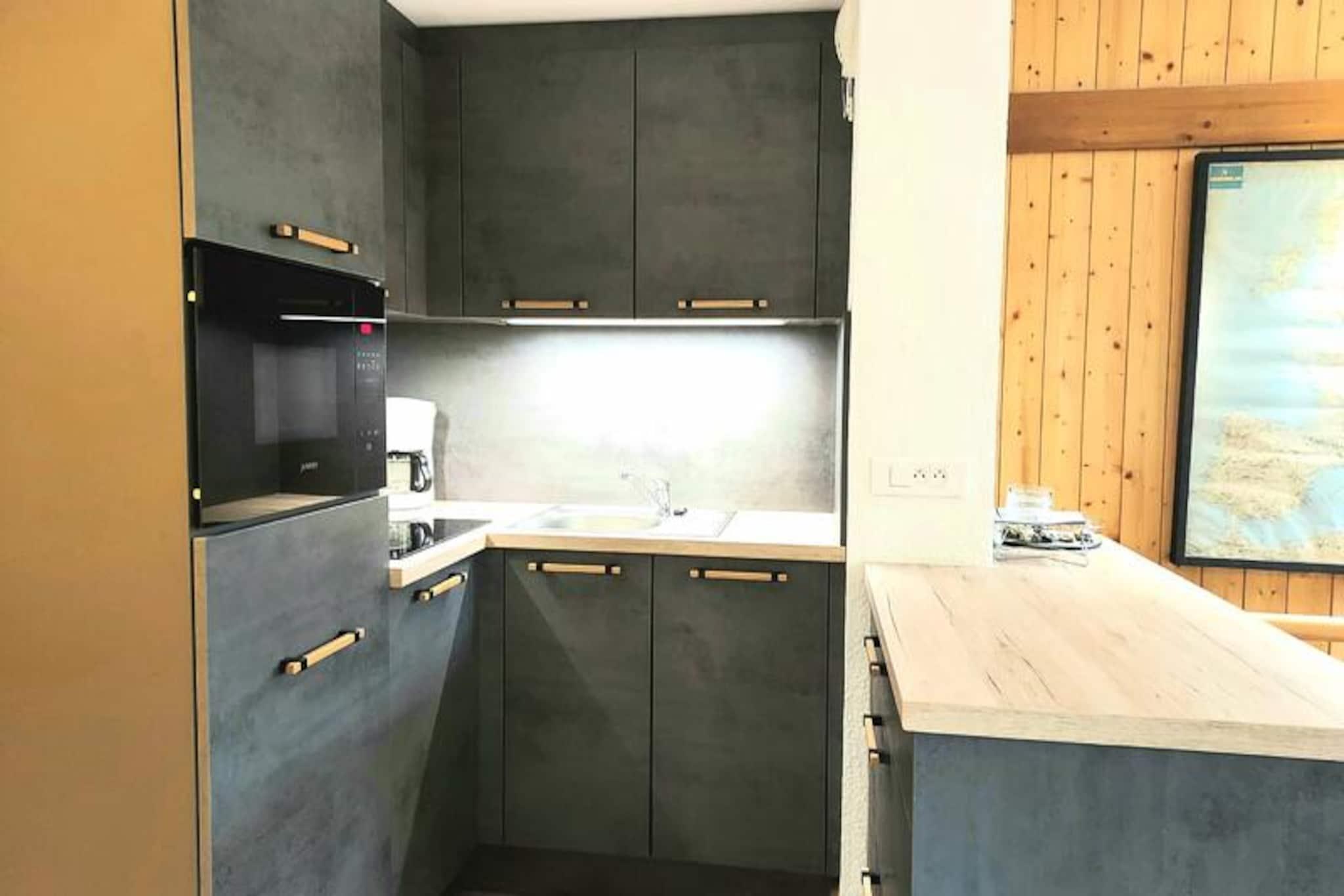 I hjertet af den maleriske Plagne 1800 tilbyder denne charmerende, traditionelle lejlighed et varmt og indbydende tilflugtssted for din alpine ferie. Omgivet af en fredfyldt skov og beliggende i et kompleks af syv bygninger i chaletstil, tilbyder den den perfekte balance mellem ro og bekvemmelighed. Den sydvestvendte balkon inviterer dig til at nyde den fantastiske udsigt over bjergene, mens du nyder den friske alpine luft, hvilket gør det til et ideelt sted at slappe af efter en dag med eventyr. Lejligheden på 40 m² er designet til at rumme op til fem gæster og er omhyggeligt indrettet med fokus på komfort og funktionalitet. Stuen har en hyggelig sovesofa og en udtræksseng, perfekt til afslappende aftener, mens det rummelige soveværelse har en komfortabel dobbeltseng. Det åbne køkken er fuldt udstyret med moderne bekvemmeligheder såsom keramisk kogeplade, mikrobølgeovn og opvaskemaskine, hvilket sikrer, at du har alt, hvad du behøver for at tilberede lækre måltider. Et separat badeværelse med badekar og et separat toilet bidrager til bekvemmeligheden under dit ophold. Yderligere fordele inkluderer et skiskab og en parkeringsplads på den overdækkede plads, hvilket gør din skiferie problemfri. Gæsterne har også adgang til Plagne Lauzes wellness-område med en opvarmet udendørs pool (afhængigt af sæsonbestemt tilgængelighed). Det familievenlige feriested Plagne 1800 er perfekt til afslapning med nærliggende butikker og gratis shuttlebusser til Plagne centrum fra morgen til sen aften. Uanset om du er her for at stå på ski, vandre eller blot for at lade op midt i et betagende alpint landskab, er denne lejlighed din port til uforglemmelige bjergminder. Vælg denne dejlige bolig for dens blanding af komfort, charme og uovertrufne beliggenhed i hjertet af de franske alper. Oplev magien ved Plagne 1800 og skab varige minder med dine kære i dette idylliske tilflugtssted.