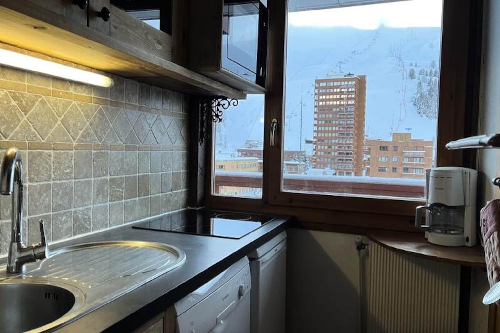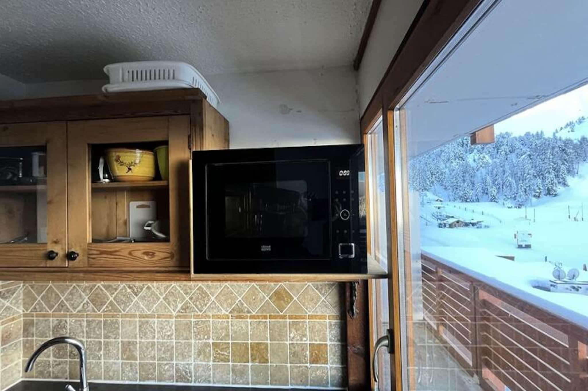 Højt over Tarentaise-dalen tilbyder denne indbydende lejlighed med et soveværelse i La Meije Residence et hyggeligt alpint tilflugtssted med betagende udsigt over de omkringliggende tinder og det pulserende Plagne Centre nedenfor. Beliggende kun 20 meter fra pisterne og 50 meter fra skilifterne, tilbyder denne ejendom uovertruffen adgang til det vidtstrakte Paradiski-område, hvilket gør det til en drømmedestination for både skientusiaster og bjergelskere. Fra den store hjørnebalkon kan du nyde den panoramaudsigt, der strækker sig over dalen og feriestedet og skaber en perfekt baggrund for din alpine flugt. Indenfor er den nyrenoverede lejlighed på 50 m² omhyggeligt designet til at rumme op til syv gæster. Den delbare stue har to komfortable sovesofaer og et fladskærms-tv, der tilbyder et fleksibelt og afslappende rum til at slappe af efter en dag på pisterne. Det fuldt udstyrede køkken med kogeplader, ovn, køleskab og opvaskemaskine sikrer, at du har alt, hvad du behøver for at tilberede solide måltider. Yderligere bekvemmeligheder inkluderer et badeværelse, separat toilet og et skirum til dit udstyr. For ekstra komfort kan valgfrie tjenester såsom sengelinned, håndklæder og slutrengøring arrangeres inden din ankomst. Plagne Centre, der ligger i en højde af 1.970 meter, er feriestedets bankende hjerte. Med sit livlige indkøbscenter, restauranter og skiliftbilletkontorer kun få skridt væk, er alt hvad du behøver lige ved hånden. Opstigningen til La Grande Rochette, et af de mest fantastiske 360°-panoramaer i Alperne, er et must-see. Uanset om du udforsker pisterne om vinteren eller nyder den friske bjergluft om sommeren, placerer denne lejlighed dig i centrum af det hele. Med sin uovertrufne beliggenhed, moderne faciliteter og ærefrygtindgydende udsigt er denne ejendom det perfekte valg for familier, venner eller par, der søger en mindeværdig alpeferie. Lad magien i de franske alper fortrylle dig, mens du skaber uforglemmelige minder i dette charmerende tilflugtssted.