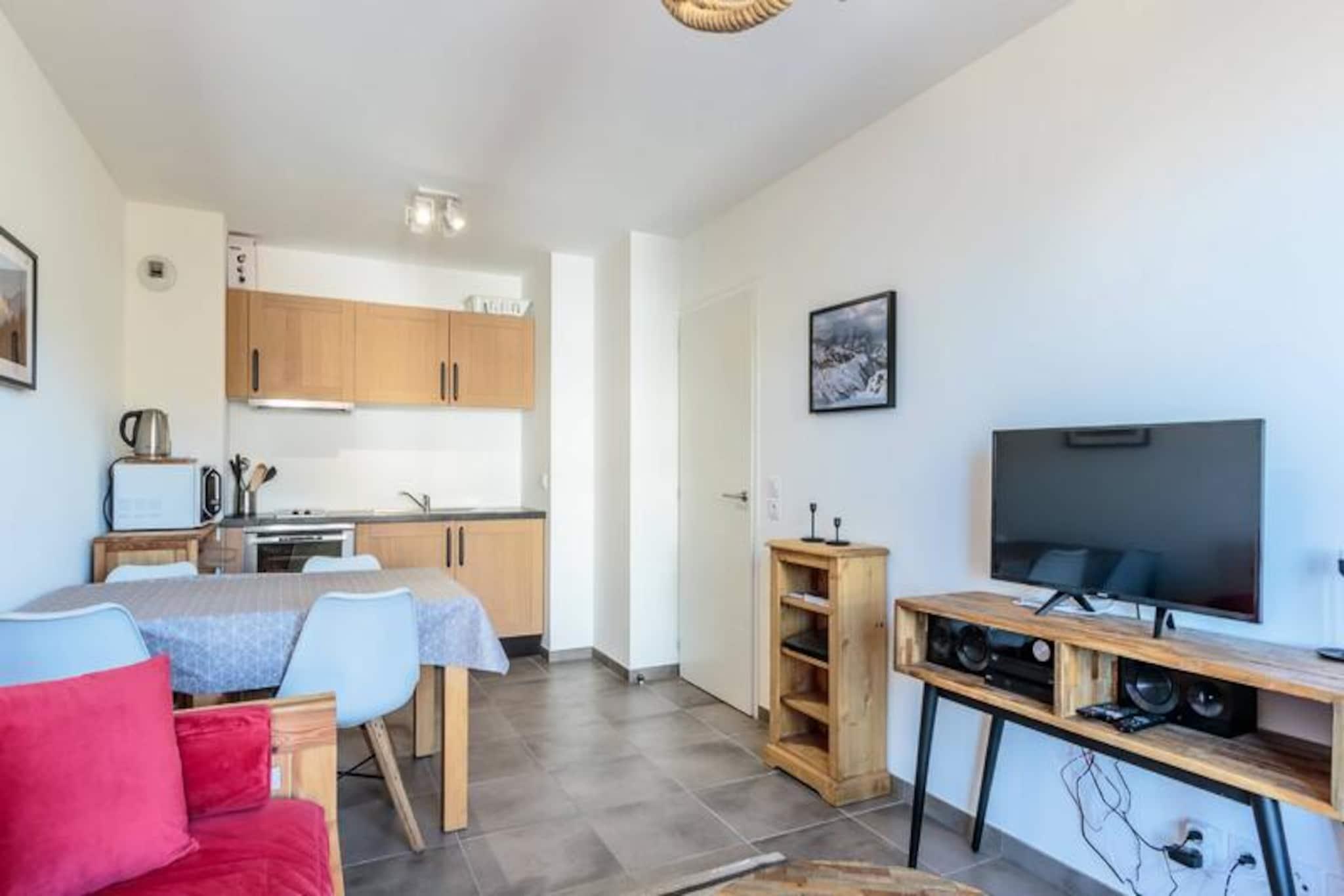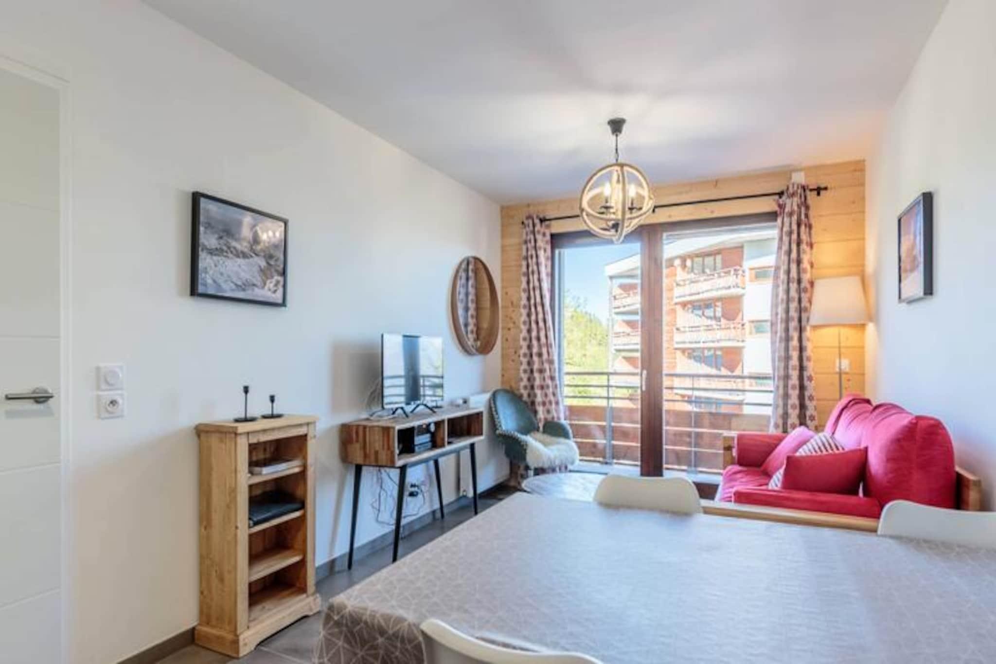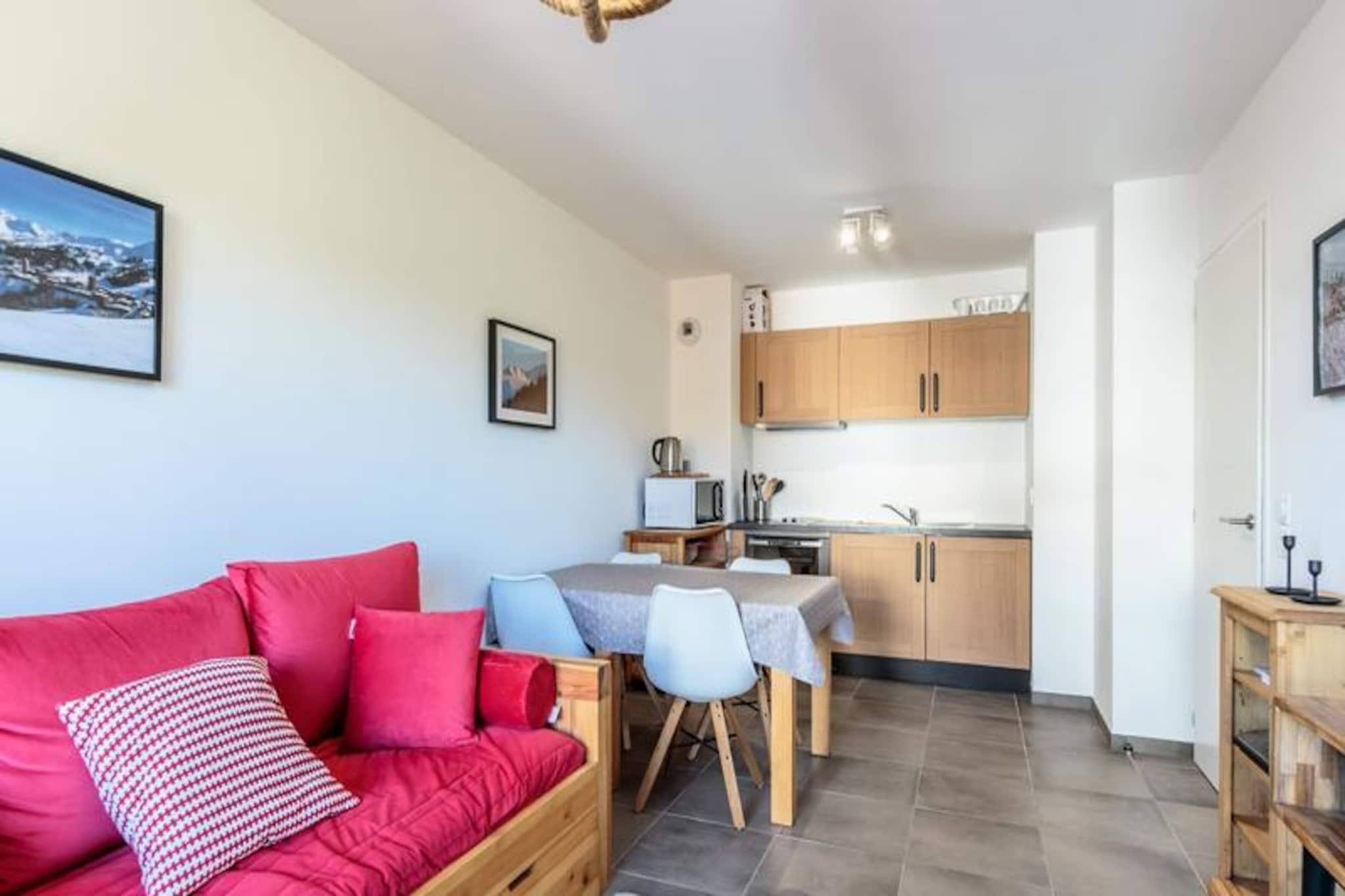 Forestil dig at vågne op til det majestætiske syn af Mont Blanc fra din private balkon, hvor den friske alpine luft forfrisker dine sanser. Denne charmerende lejlighed på 36 m², beliggende på 4. sal i en moderne bolig i Plagne Centre, tilbyder det perfekte tilflugtssted for bjergentusiaster, der søger både eventyr og afslapning. Med sin førsteklasses beliggenhed i 1.970 meters højde befinder du dig i hjertet af et af de mest pulserende skiområder i Alperne. Indenfor er lejligheden omhyggeligt designet til komfort og bekvemmelighed. Den hyggelige stue har en udtræksseng og et fjernsyn, hvilket skaber et indbydende rum at slappe af efter en dag på pisterne. Det åbne køkken er fuldt udstyret med opvaskemaskine, køleskab og ovn, hvilket gør det nemt at tilberede solide måltider. Det separate soveværelse med to enkeltsenge sikrer afslappende nætter, mens skiboksen og den private garage bidrager til det praktiske ved dit ophold. Selve boligen er en sikker, seks-etagers bygning med elevator, der tilbyder nem adgang til skicentret og butikkerne kun 100 meter væk. Plagne Centre er et centrum for aktivitet, med alt fra restauranter og butikker til spændende udendørseventyr lige uden for døren. Opstigningen til La Grande Rochette, der kan prale af en af ??de mest betagende 360°-panoramaer i Alperne, er kun få øjeblikke væk. Uanset om du er her for at slentre gennem uberørte skråninger, udforske naturskønne stier eller blot nyde bjergenes fredfyldte skønhed, er denne lejlighed den ideelle base for en uforglemmelig alpeflugt. Med sengelinned, håndklæder og slutrengøring inkluderet, skal du blot ankomme og fordybe dig i magien i de franske alper.