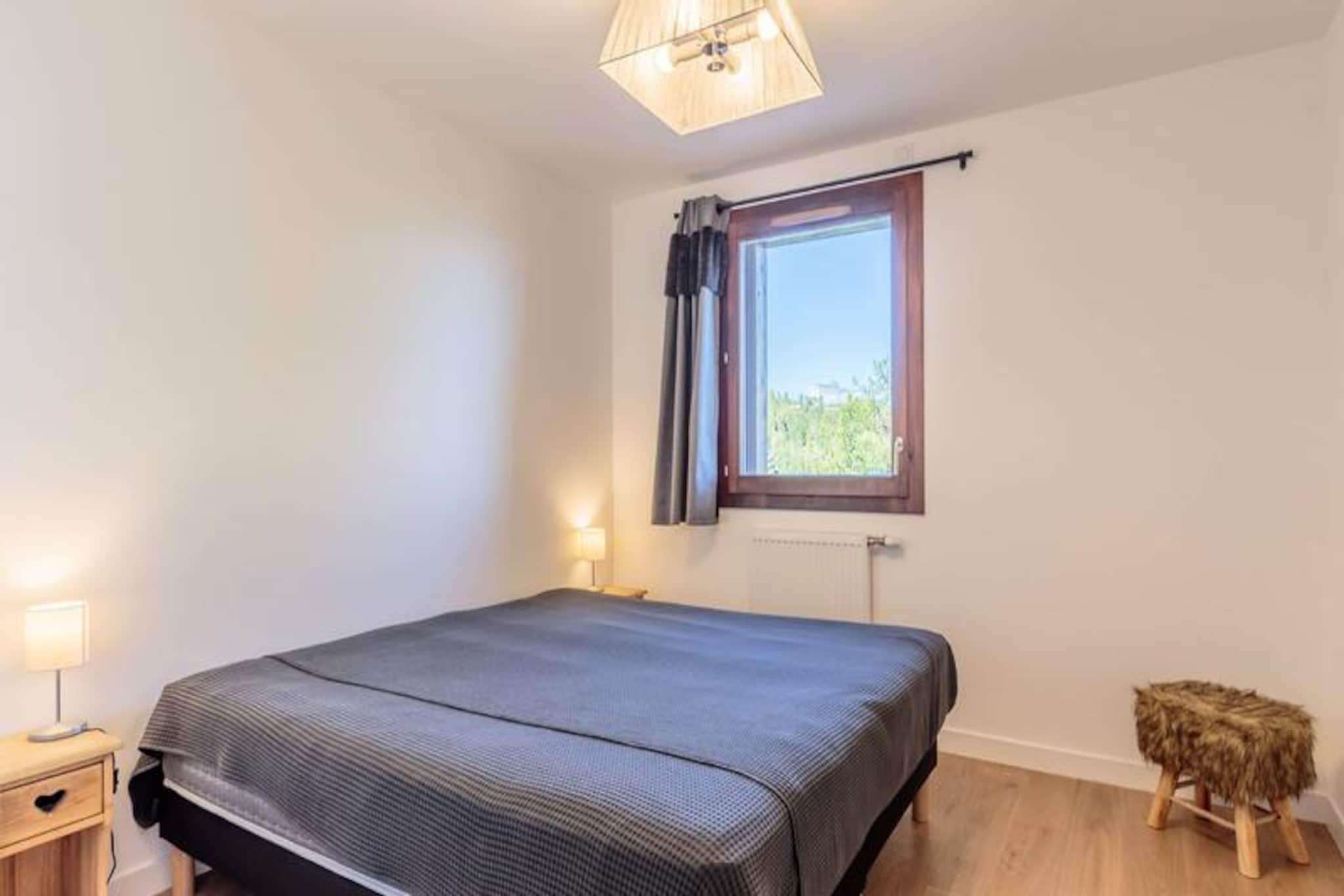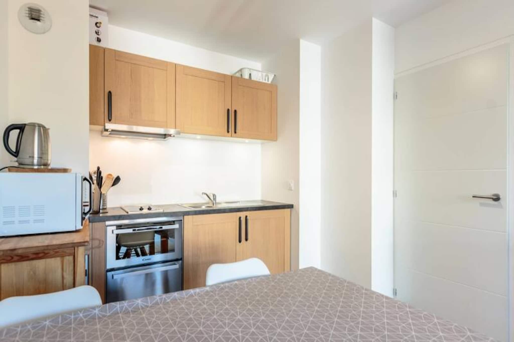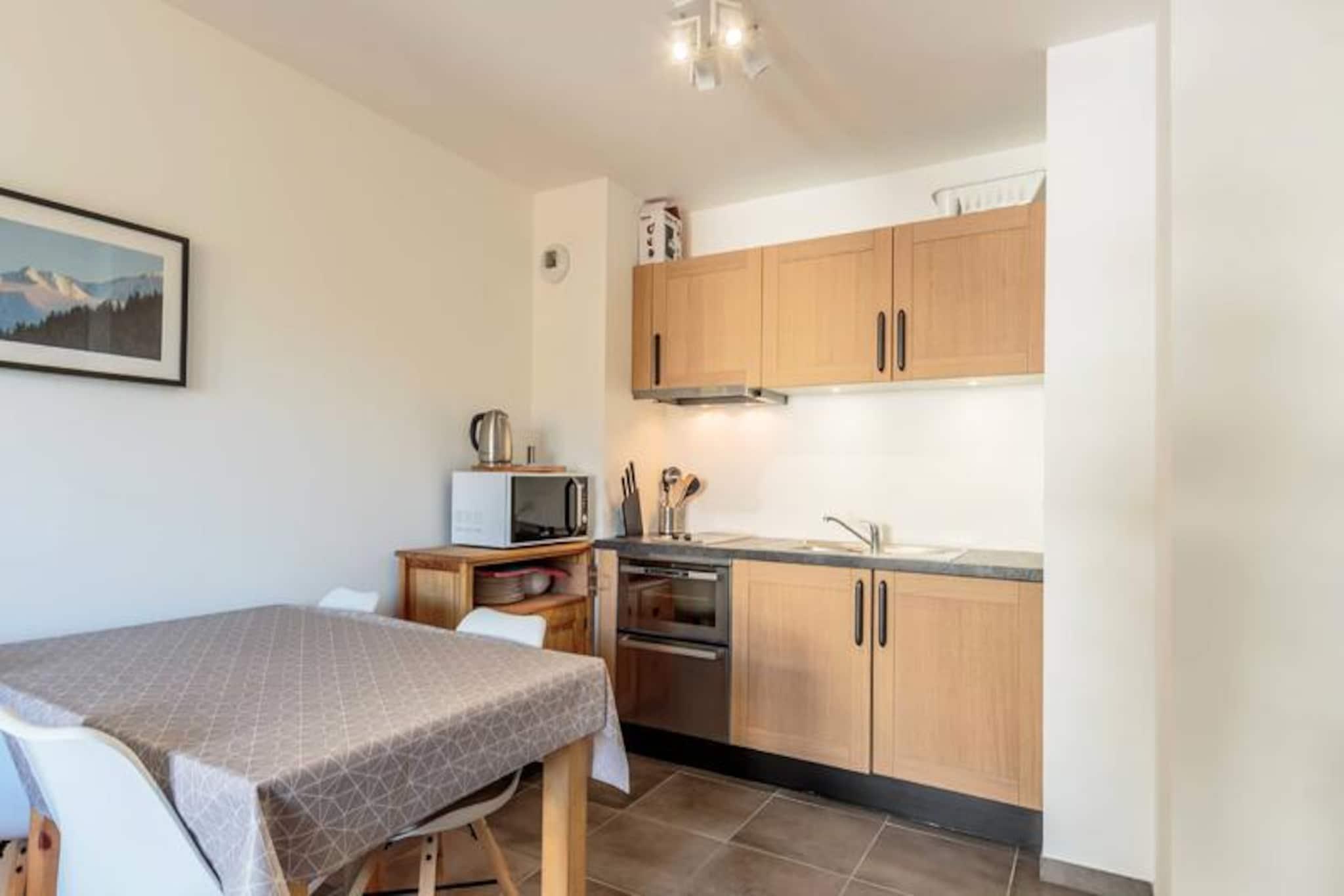 Forestil dig at vågne op til det majestætiske syn af Mont Blanc fra din private balkon, hvor den friske alpine luft forfrisker dine sanser. Denne charmerende lejlighed på 36 m², beliggende på 4. sal i en moderne bolig i Plagne Centre, tilbyder det perfekte tilflugtssted for bjergentusiaster, der søger både eventyr og afslapning. Med sin førsteklasses beliggenhed i 1.970 meters højde befinder du dig i hjertet af et af de mest pulserende skiområder i Alperne. Indenfor er lejligheden omhyggeligt designet til komfort og bekvemmelighed. Den hyggelige stue har en udtræksseng og et fjernsyn, hvilket skaber et indbydende rum at slappe af efter en dag på pisterne. Det åbne køkken er fuldt udstyret med opvaskemaskine, køleskab og ovn, hvilket gør det nemt at tilberede solide måltider. Det separate soveværelse med to enkeltsenge sikrer afslappende nætter, mens skiboksen og den private garage bidrager til det praktiske ved dit ophold. Selve boligen er en sikker, seks-etagers bygning med elevator, der tilbyder nem adgang til skicentret og butikkerne kun 100 meter væk. Plagne Centre er et centrum for aktivitet, med alt fra restauranter og butikker til spændende udendørseventyr lige uden for døren. Opstigningen til La Grande Rochette, der kan prale af en af ??de mest betagende 360°-panoramaer i Alperne, er kun få øjeblikke væk. Uanset om du er her for at slentre gennem uberørte skråninger, udforske naturskønne stier eller blot nyde bjergenes fredfyldte skønhed, er denne lejlighed den ideelle base for en uforglemmelig alpeflugt. Med sengelinned, håndklæder og slutrengøring inkluderet, skal du blot ankomme og fordybe dig i magien i de franske alper.