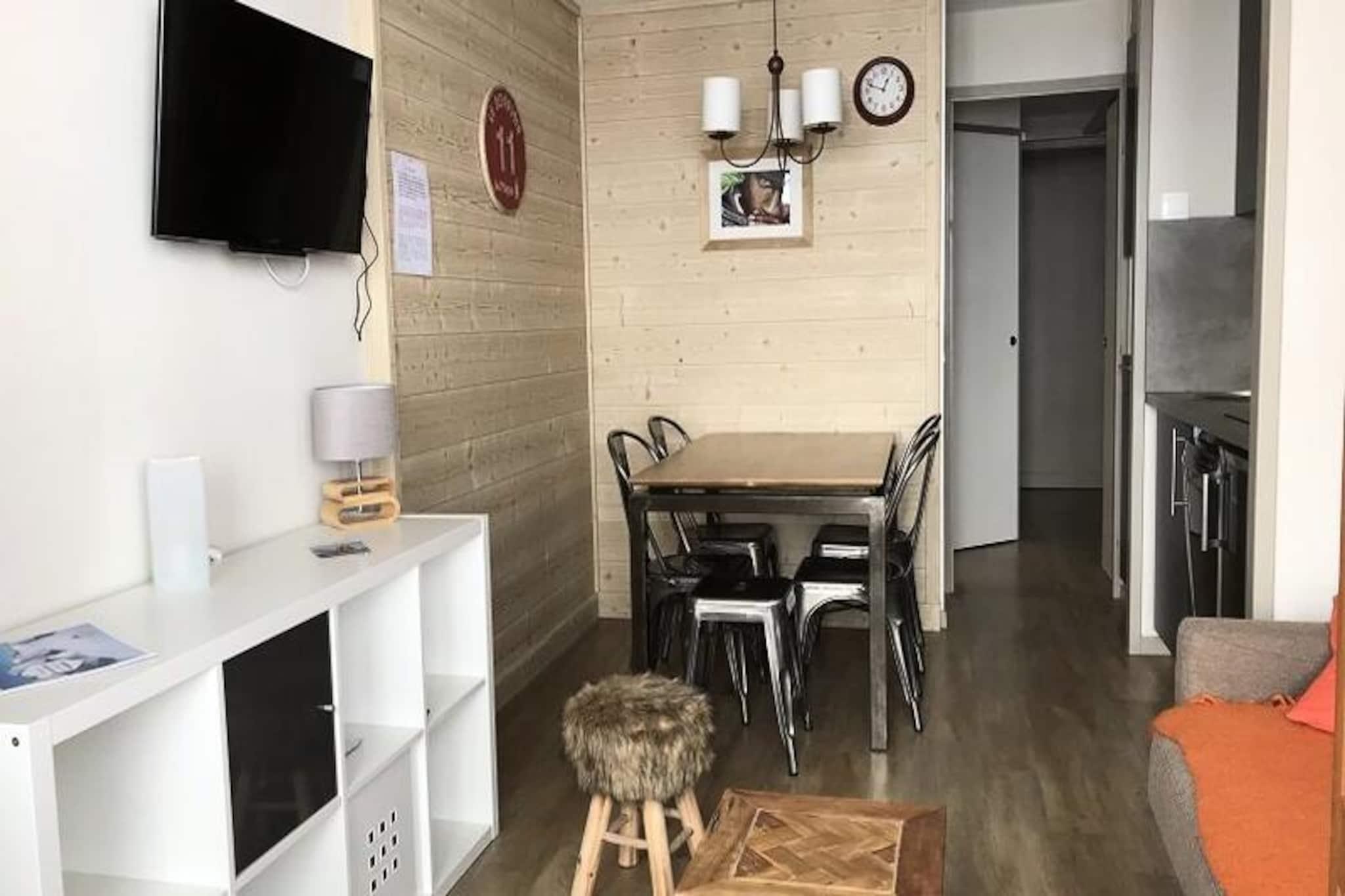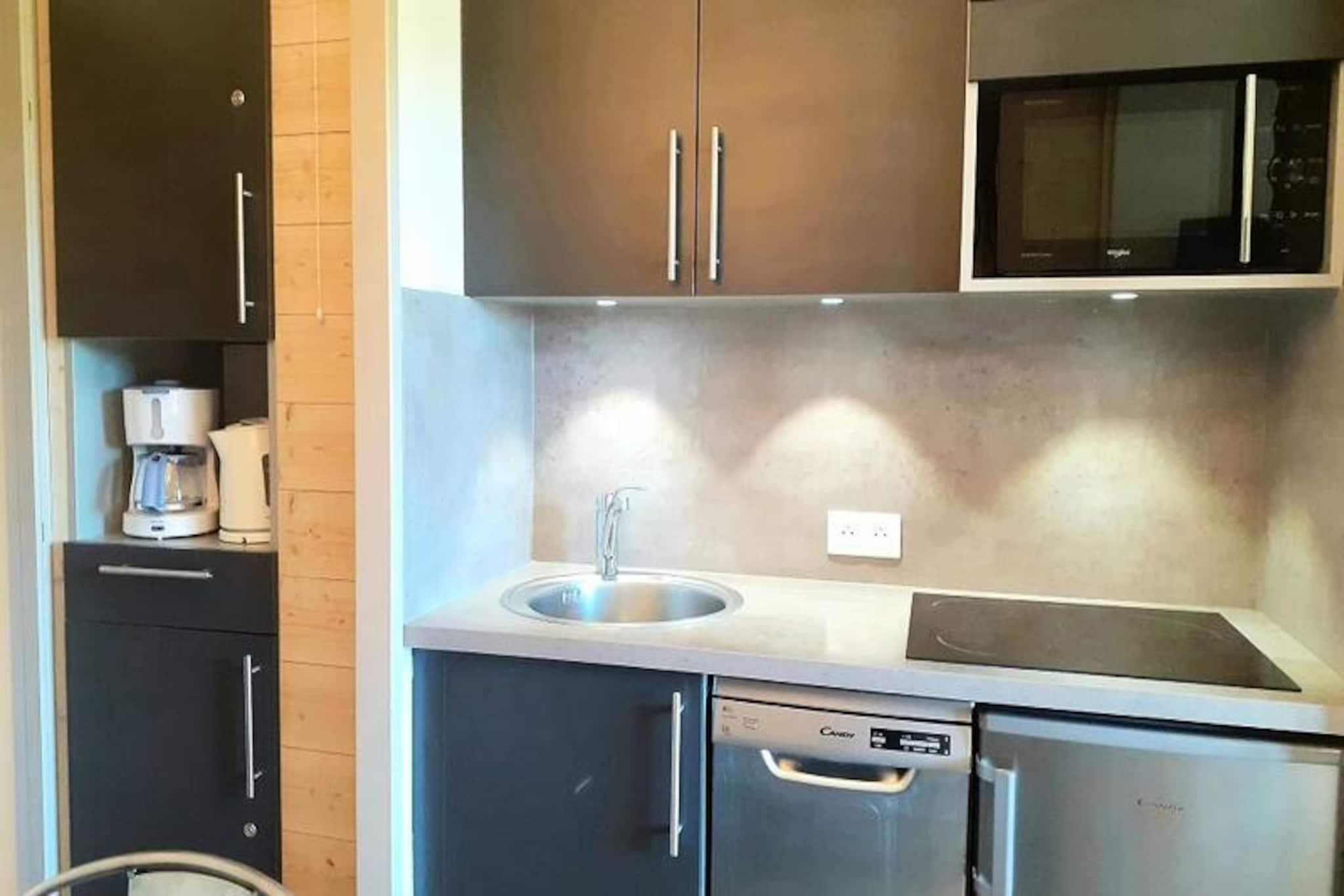 Højt over verden i 2.050 meters højde tilbyder Thémis-residensen i Belle Plagne en uforglemmelig alpin ferie. Omgivet af charmen ved traditionel bjergarkitektur og beliggende i et af de sjældne feriesteder, der kun er for fodgængere, er dette sted et paradis for dem, der søger ro og eventyr. Residensen har ski-in/ski-out-adgang, så du kan træde direkte ud på de uberørte pister og fordybe dig i den betagende skønhed i de franske Alper. En gratis svævebane forbinder Belle Plagne med Plagne Bellecôte, så du kan udforske området fra morgen til aften. Denne hyggelige 23 m² store lejlighed, der er totalrenoveret i 2018, ligger på 4. etage og har elevator. Boligarealet er gennemtænkt indrettet med en komfortabel sovesofa (160 x 190 cm) i stuen og en sovealkove med to køjesenge (80 x 190 cm), hvilket gør den ideel til par eller små familier. Det moderne køkken er udstyret med opvaskemaskine, mikroovn, ovn og keramisk kogeplade, så du har alt, hvad du behøver for at tilberede solide måltider efter en dag på pisterne. Badeværelset har en elegant brusekabine og toilet, mens lejlighedens store vinduer giver uhindret udsigt over de omkringliggende pister og fylder rummet med naturligt lys og alpin ro. Boligen har praktiske faciliteter såsom et skiskab og leverer sengelinned og håndklæder direkte til din lejlighed. Med rengøring ved afrejse inkluderet bliver din ferie lige så bekymringsfri som mindeværdig. Uden for lejligheden inviterer Belle Plagnes fodgængervenlige gader dig til at udforske de charmerende butikker, hyggelige restauranter og livlige afterski-kultur. Uanset om du står på ski, snowboard eller blot nyder bjergatmosfæren, tilbyder denne beliggenhed den perfekte balance mellem afslapning og spænding. Vælg Thémis-residensen til din næste alpine ferie og oplev magien i Belle Plagne, hvor hvert øjeblik føles som et postkort, der er blevet levende.