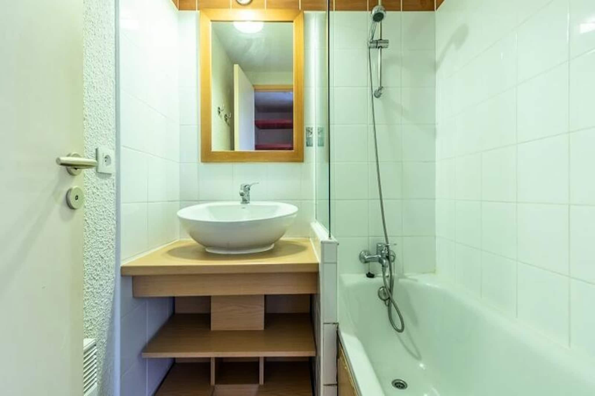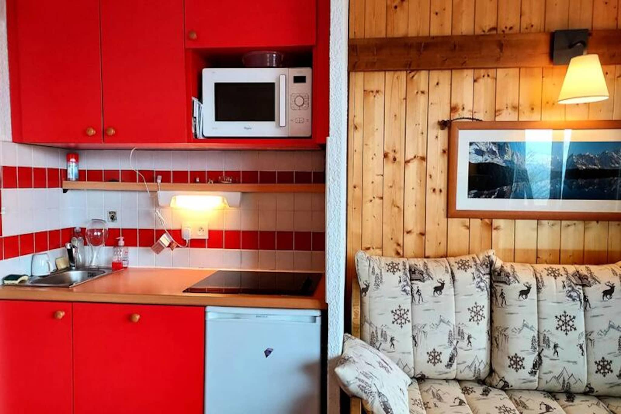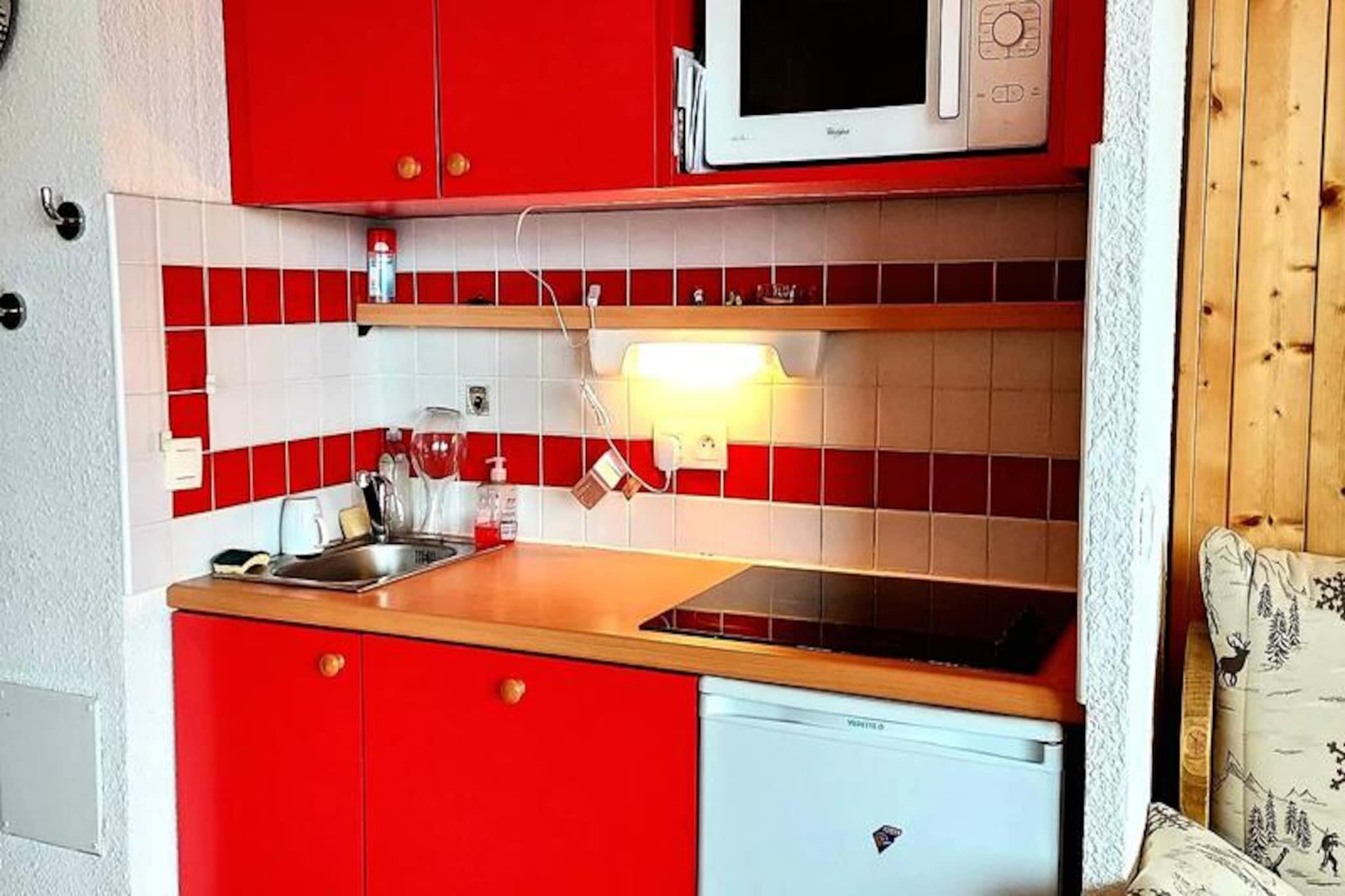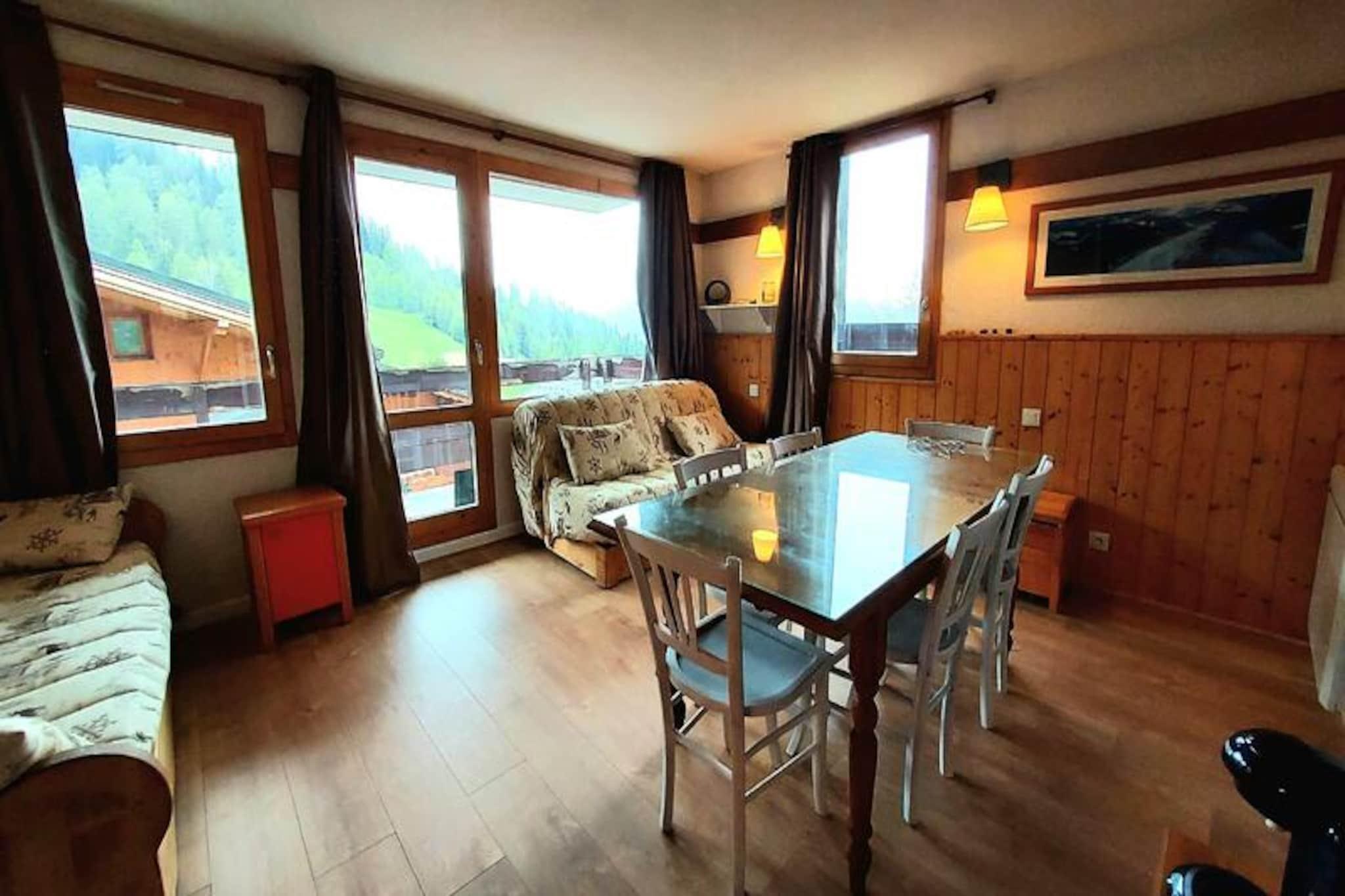 I det rolige hjerte af Plagne 1800, omgivet af frodige alpine skove, tilbyder denne charmerende lejlighed med et soveværelse et perfekt tilflugtssted for familier og små grupper, der søger både eventyr og afslapning. Boligen, som er en del af et malerisk kompleks i chaletstil, kombinerer rustik bjergcharme med moderne bekvemmeligheder og skaber en varm og indbydende atmosfære til din ferie. Den vestvendte balkon tilbyder et roligt sted at slappe af med en fantastisk udsigt over de omkringliggende tinder, mens solen går ned over Alperne. Indenfor er den 32 m² store lejlighed blevet omhyggeligt renoveret for at maksimere komfort og funktionalitet. Den lyse stue har en hyggelig sofa med en udtræksseng, perfekt til afslapning efter en dag på pisterne. Det åbne køkken er fuldt udstyret med moderne apparater, herunder køleskab, opvaskemaskine, keramisk kogeplade og mikrobølgeovn, hvilket gør det nemt at tilberede solide måltider. Soveværelset, komplet med en køjeseng og en enkeltseng, er ideelt for familier med børn. Yderligere faciliteter inkluderer et skiskab, en overdækket parkeringsplads og adgang til Plagne Lauzes wellness-område med en opvarmet udendørs pool (afhængigt af tilgængelighed). Plagne 1800 er et familievenligt feriested kendt for sin fredelige atmosfære og bekvemme faciliteter. Butikker og restauranter ligger kun en kort gåtur væk, og der kører gratis shuttlebusser hele dagen og forbinder dig med det bredere Paradiski-område. Uanset om du står på ski om vinteren eller vandrer gennem alpine enge om sommeren, tilbyder denne beliggenhed uendelige muligheder for udendørs eventyr. Med sin førsteklasses beliggenhed, hyggelige interiør og adgang til wellnessfaciliteter er denne lejlighed den perfekte base for at skabe uforglemmelige minder i de franske alper. Lad skønheden i Plagne 1800 inspirere din næste bjergferie.