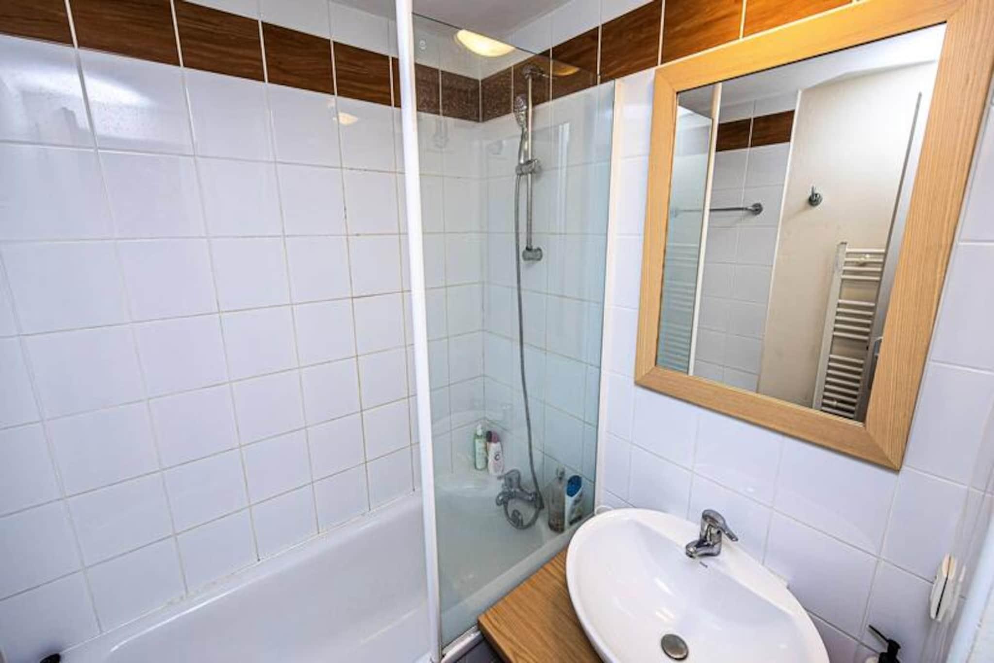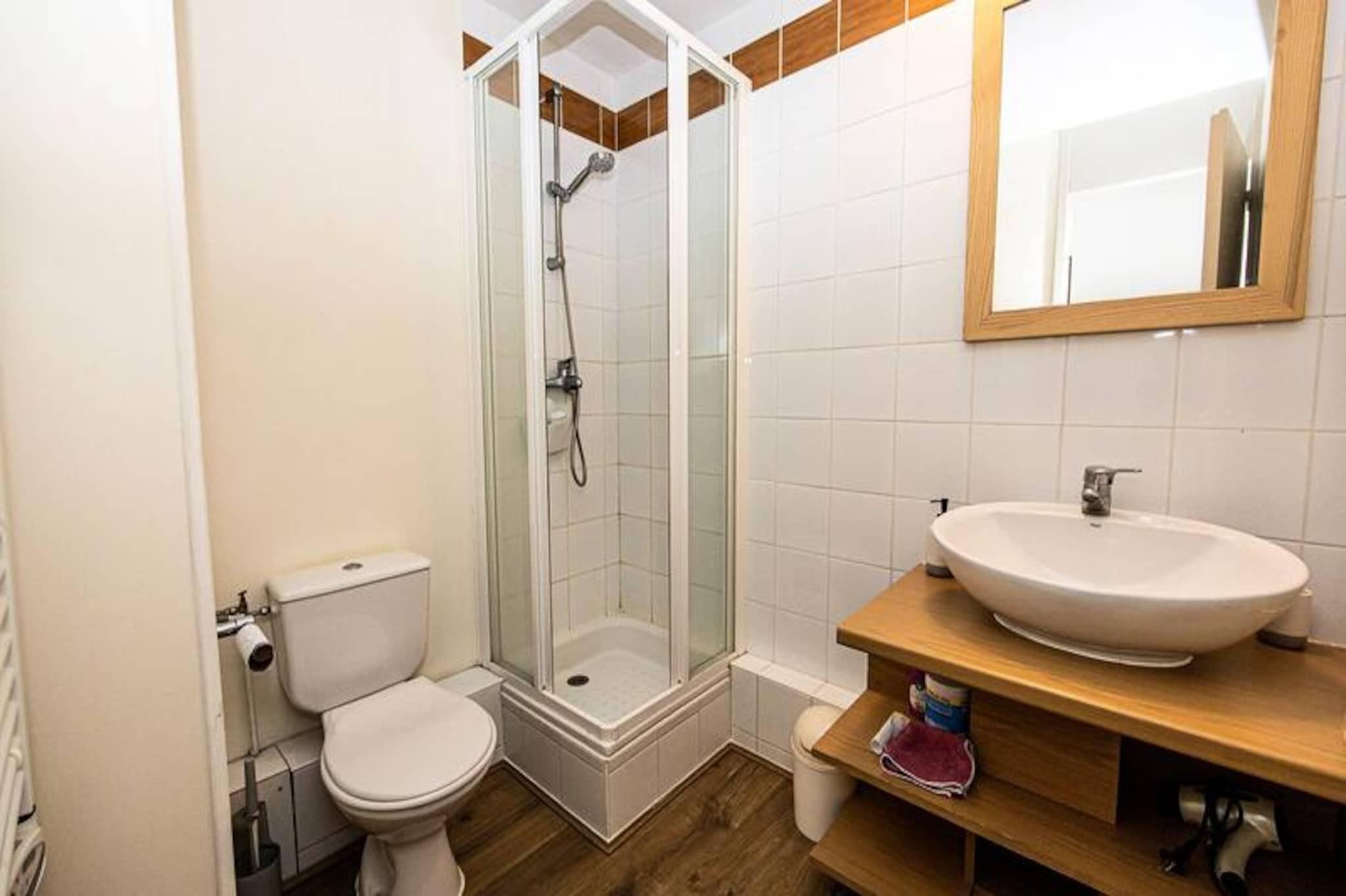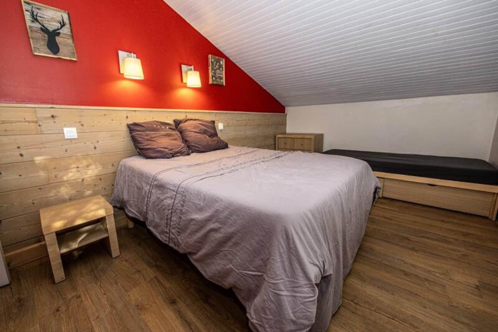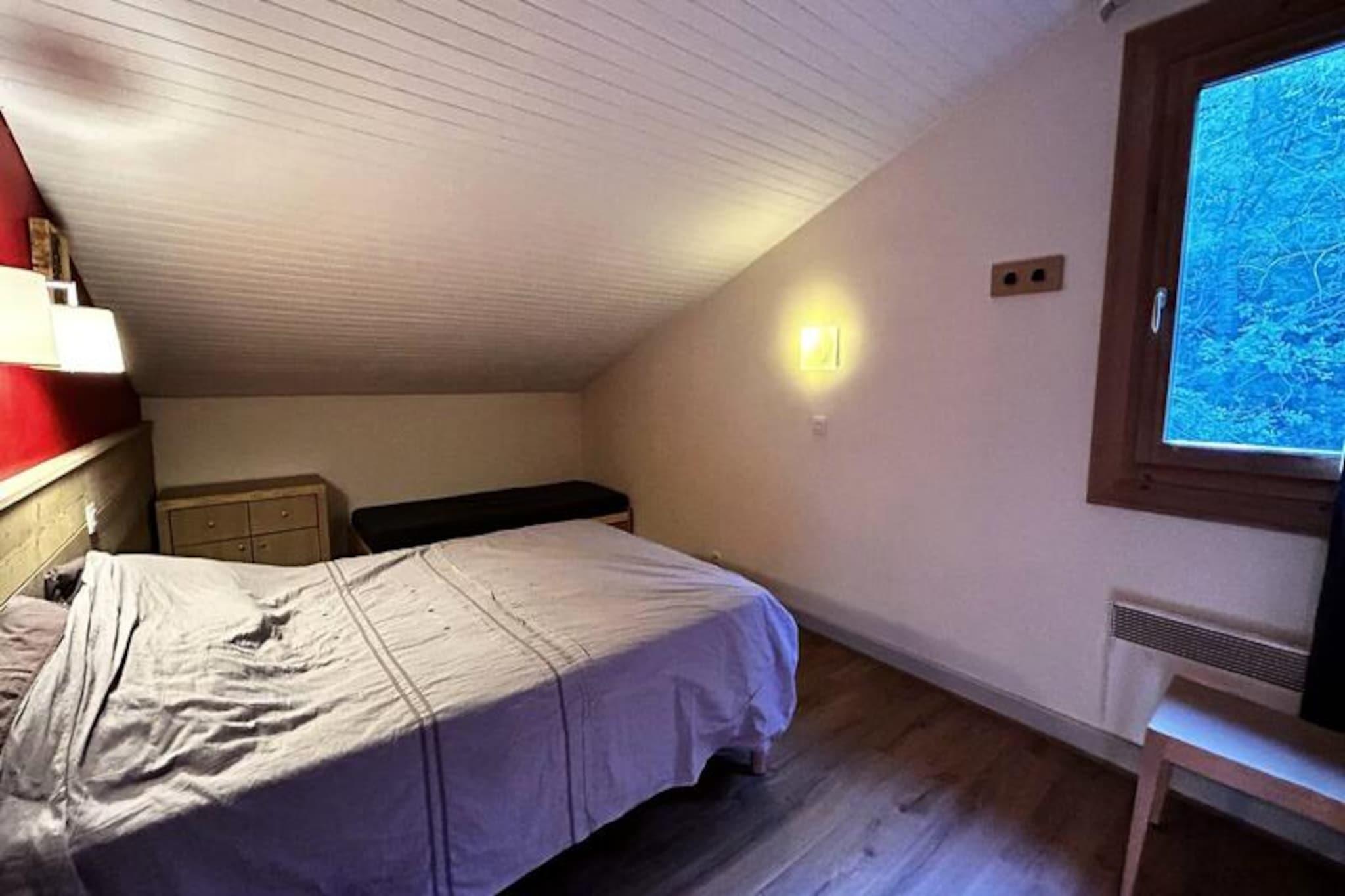 Højt over de fredfyldte skove i Plagne 1800 tilbyder denne charmerende duplexlejlighed et perfekt tilflugtssted for familier og venner, der søger en blanding af alpint eventyr og hyggelig komfort. Fra den sydvendte balkon kan du nyde den uforstyrrede udsigt over La Plagnes majestætiske tinder, hvor det skiftende lys maler et nyt mesterværk hver time. Residensens arkitektur i chaletstil og varme interiør skaber en indbydende atmosfære, ideel til afslapning efter en dag på pisterne. Denne rummelige lejlighed er på 55 m² og er omhyggeligt designet på to etager. Første sal har en lys stue med to sovesofaer, et tv og en spiseplads centreret omkring et stort bord. Det tilstødende åbne køkken er fuldt udstyret med moderne apparater, herunder en keramisk kogeplade, opvaskemaskine og ovn, så du nemt kan tilberede solide måltider. Ovenpå tilbyder soveværelset et roligt fristed med en dobbeltseng, mens børneværelset og mezzaninen giver rigelig soveplads. To badeværelser, et med badekar og et andet med bruser, gør det nemt for større grupper. Et skiskab og en overdækket parkeringsplads i nærheden fuldender de praktiske faciliteter. Residensen SAINBOIS, beliggende på toppen af ??Plagne 1800, tilbyder nem adgang til lokale butikker og en opvarmet udendørs swimmingpool, perfekt til afslapning efter en aktiv dag. Selve feriestedet er et familievenligt paradis, omgivet af frodige skove og forbundet med Plagne centrum med en bekvem busforbindelse, der kører til sent om aftenen. Uanset om du er her for at stå på ski, vandre eller blot indånde den friske bjergluft, er denne lejlighed den perfekte base for uforglemmelige alpine minder.