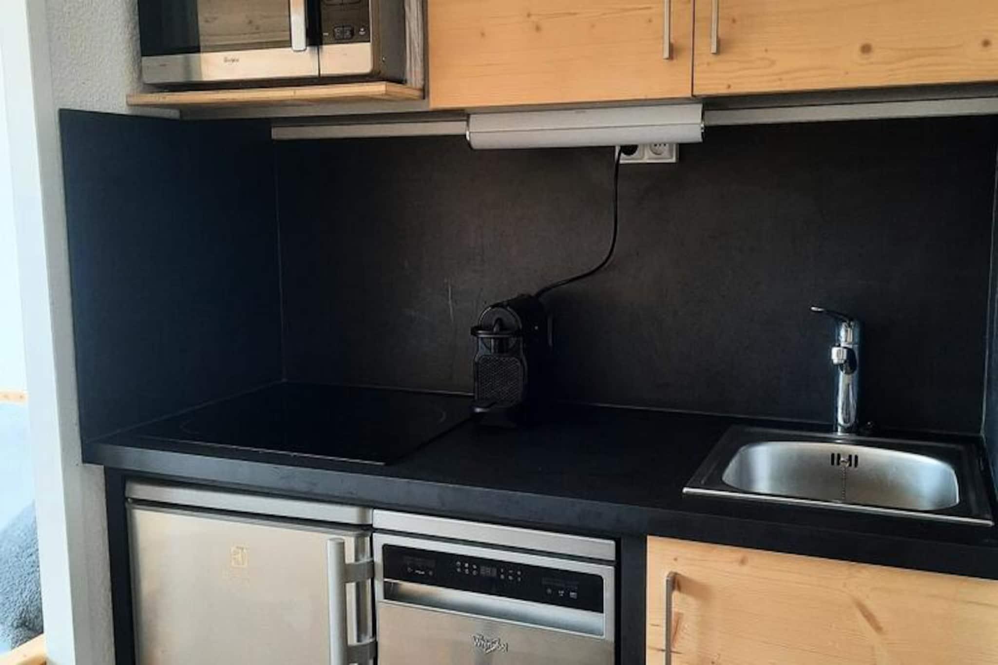 Højt over Tarentaise-dalen tilbyder denne charmerende lejlighed med et soveværelse i Andromède Residence et perfekt alpint tilflugtssted i Belle Plagne. Med sin sydvestvendte balkon kan du nyde den betagende udsigt over bjergene, mens du soler dig, hvilket skaber en rolig og malerisk atmosfære til din ferie. Belle Plagne, der ligger i 2.050 meters højde, er et fodgængervenligt feriested kendt for sin traditionelle bjergarkitektur og direkte ski-in, ski-out adgang til pisterne, hvilket gør det til et paradis for både vintersportsentusiaster og naturelskere. Lejligheden er omhyggeligt designet til op til fire gæster og har en hyggelig stue med to enkeltsenge og et tv samt et separat soveværelse med en komfortabel dobbeltseng. Det åbne køkken er fuldt udstyret med moderne apparater, herunder keramisk kogeplade, køleskab, opvaskemaskine og kaffemaskine, hvilket sikrer, at du har alt, hvad du behøver for at tilberede lækre måltider efter en dag på pisterne. Badeværelset har badekar og toilet, hvilket giver bekvemmelighed og komfort under dit ophold. Yderligere faciliteter såsom et skiskab og overdækket parkeringsplads øger bekvemmeligheden på din alpine ferie. Kun få skridt væk finder du ESF-skilifterne, et kælkeområde og et minimarked, mens feriestedets centrum med dets butikker og restauranter er tilgængeligt på få minutter via trapper eller elevator. En kabelbaneforbindelse til Plagne-Bellecôte kører indtil sent om aftenen og tilbyder problemfri adgang til mere af Paradiski-området. Uanset om du står på ski om vinteren eller udforsker de fantastiske bjergstier om sommeren, lover Belle Plagne en uforglemmelig oplevelse. Vælg denne lejlighed for dens uovertrufne beliggenhed, hyggelige atmosfære og muligheden for at fordybe dig i de franske alpers skønhed. Fra spændende udendørseventyr til fredelige øjeblikke på balkonen er dette den perfekte base for at skabe dyrebare minder i bjergene.