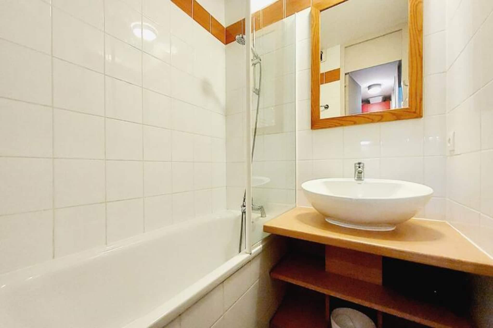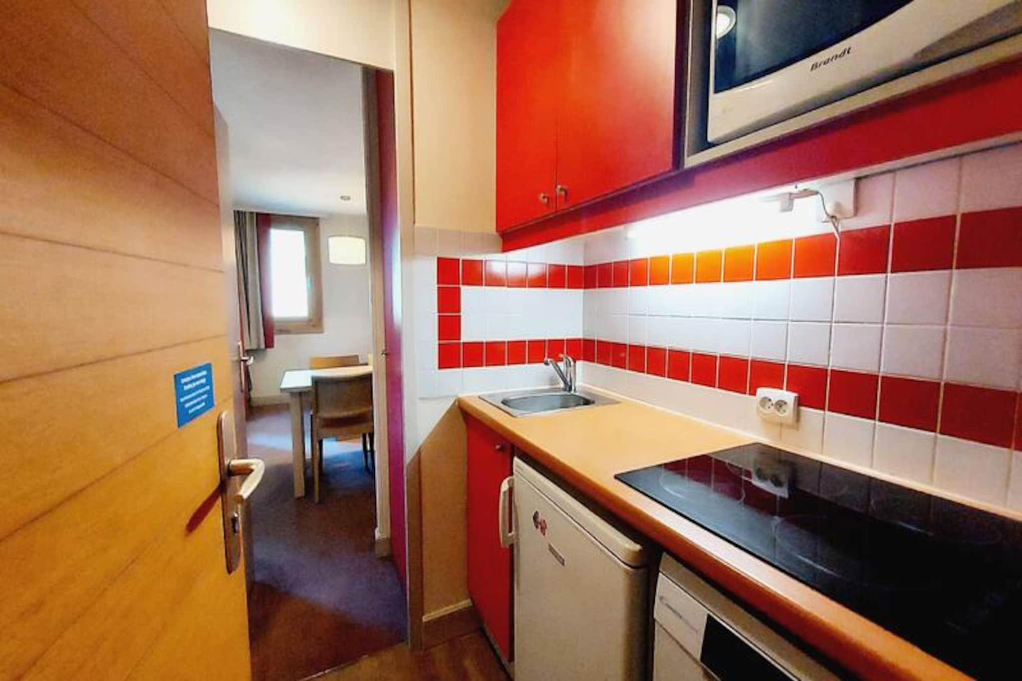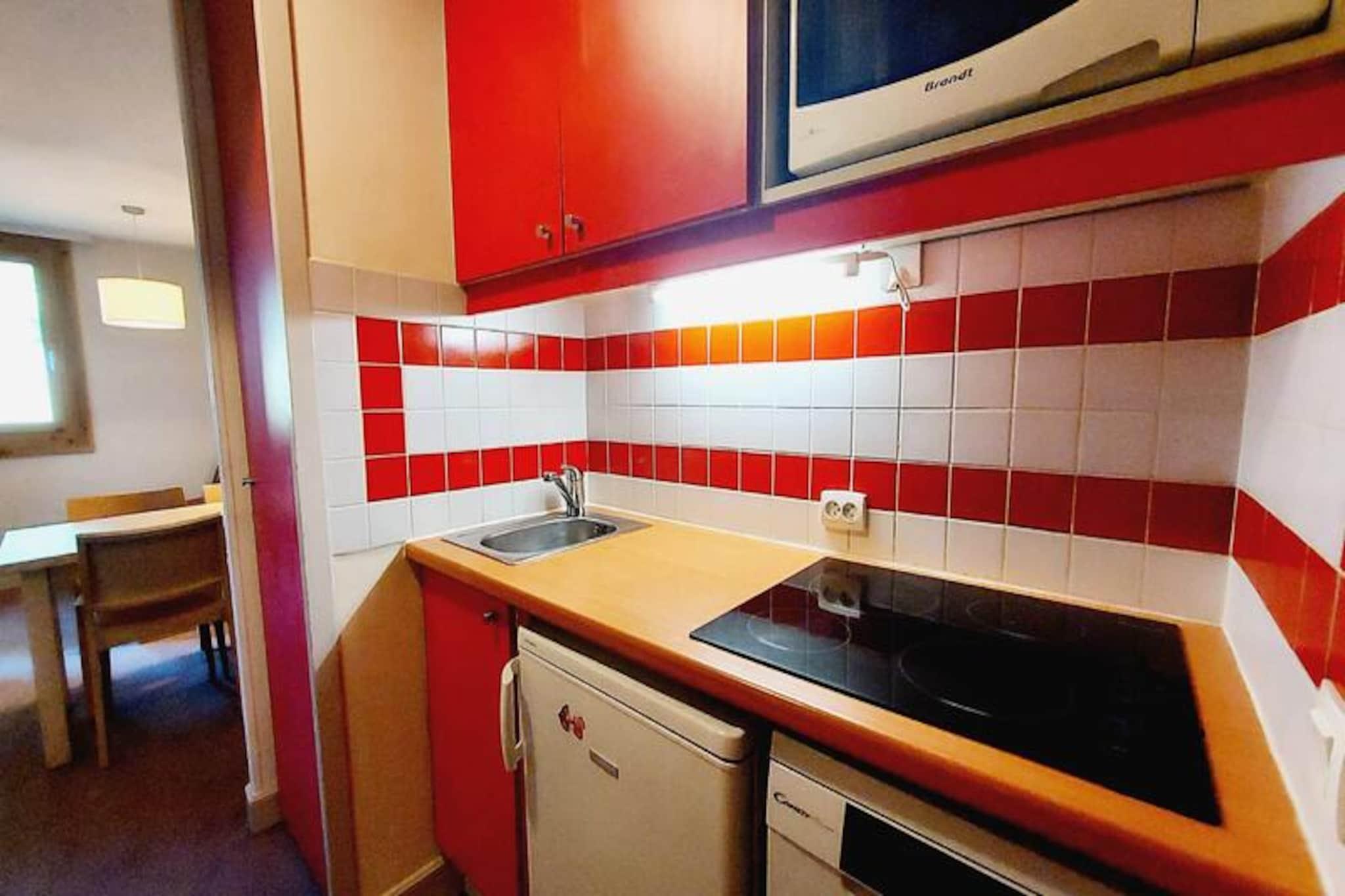 Under de tårnhøje tinder i de franske alper inviterer denne charmerende lejlighed i Plagne 1800 dig til at opleve det perfekte alpine tilflugtssted. Omgivet af fredfyldte skove og beliggende i et kompleks af chalet-lignende bygninger, tilbyder den en varm og indbydende atmosfære, der er ideel for familier og par, der søger både eventyr og afslapning. Den nordvendte terrasse i haveniveau giver et fredeligt sted at slappe af efter en dag med bjergudforskning, hvor den friske alpine luft bidrager til roen. Indenfor er lejligheden omhyggeligt designet til komfort og funktionalitet. Stuen, smart opdelt af en skydedør, har en sovesofa og en udtræksseng, der kan rumme op til fire gæster. Et fuldt udstyret køkken med moderne apparater, herunder mikrobølgeovn, køleskab, opvaskemaskine og keramisk kogeplade, sikrer, at du har alt, hvad du behøver for at tilberede solide måltider. Badeværelset har et badekar til et afslappende bad, mens et separat toilet øger bekvemmeligheden. Yderligere faciliteter såsom et skiskab og adgang til en opvarmet udendørs swimmingpool (sæsonbestemt) forbedrer dit ophold. Plagne 1800 er et familievenligt resort fyldt med charme. Beliggenheden midt i skoven skaber en rolig atmosfære, mens nærliggende butikker og en bekvem busforbindelse til Plagne Centre sikrer, at du har nem adgang til alle fornødenheder. Uanset om du står på ski ned ad uberørte pister om vinteren eller vandrer gennem frodige stier om sommeren, henvender denne destination sig til enhver sæson. Vælg denne dejlige alpine feriedestination for at genoplade, genoprette forbindelsen og skabe uforglemmelige minder i hjertet af de franske alper.