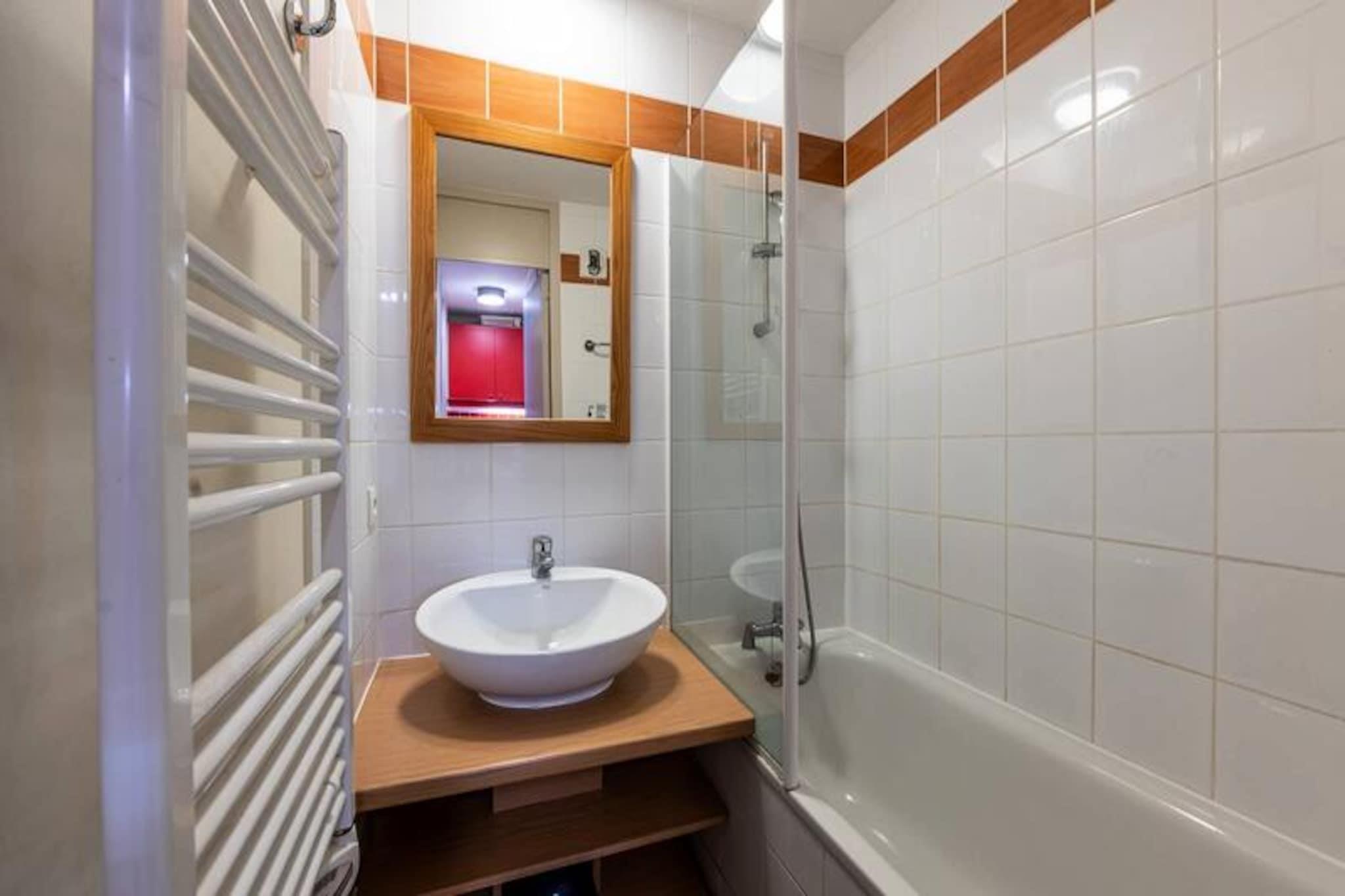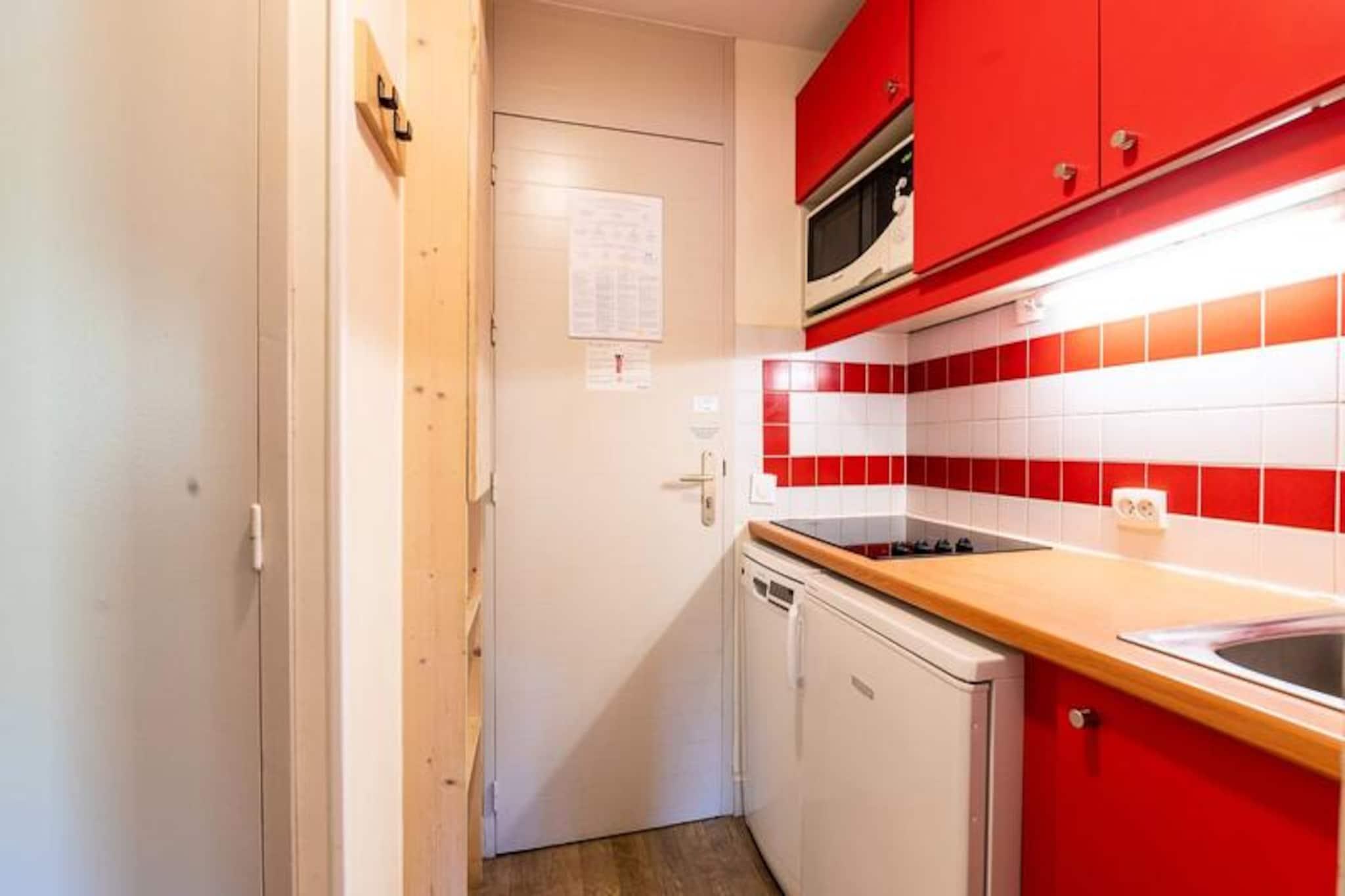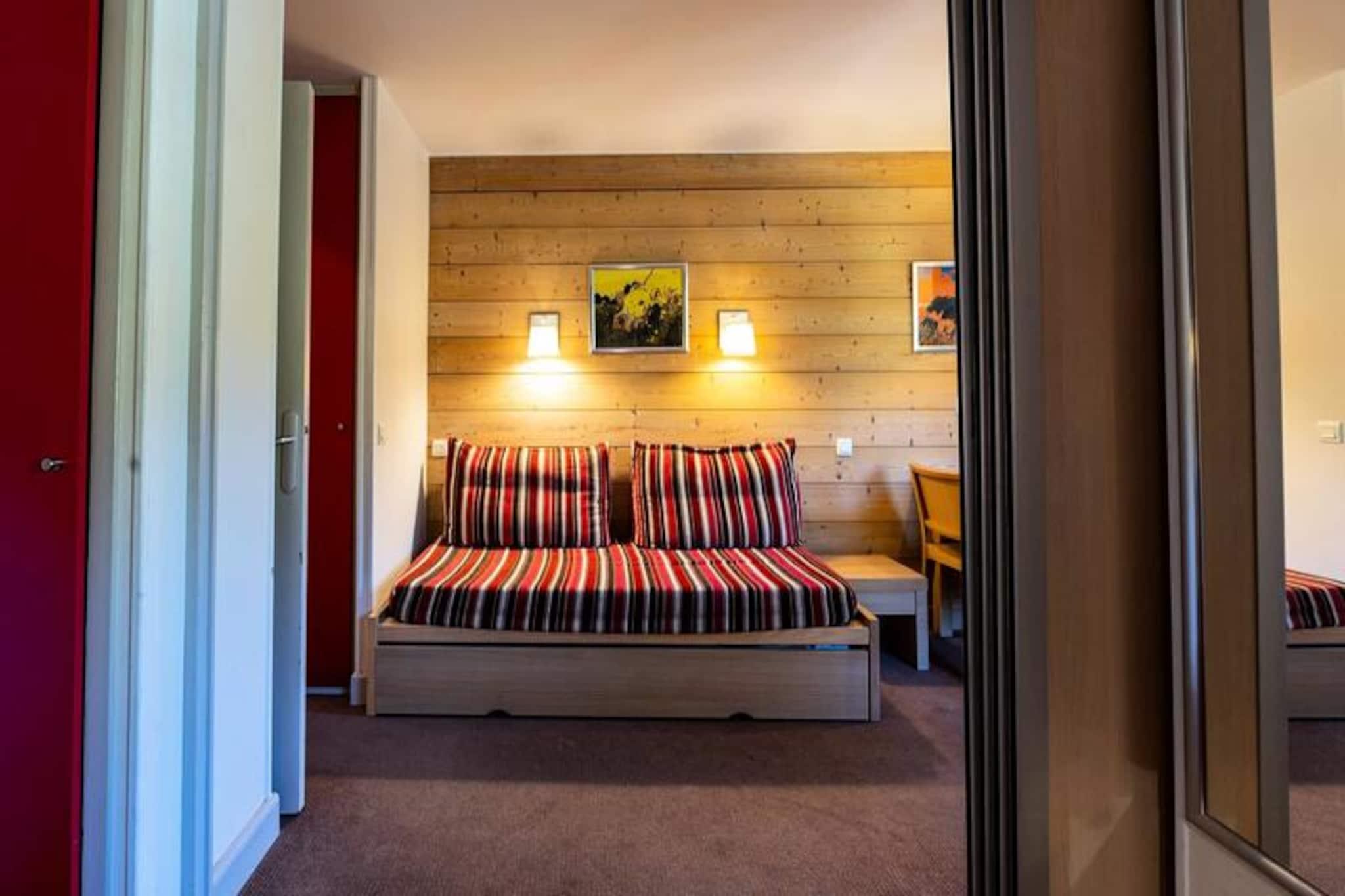 Højt over de fredfyldte alpeskove tilbyder denne charmerende lejlighed på 24 m² på tredje sal et hyggeligt tilflugtssted med betagende sydvendt udsigt over bjergene. Balkonen, der er badet i sollys hele dagen, er det perfekte sted at nippe til din morgenkaffe eller slappe af efter en dag med eventyr, mens du nyder de franske alpers rolige skønhed. Uden elevator belønnes klatringen til dit paradis med en intim forbindelse til de omkringliggende tinder og dale. Indenfor er lejligheden omhyggeligt designet til både komfort og praktisk anvendelighed. Stuen, smart opdelt af en skydevæg, har et siddeområde med en udtræksseng og en sovesofa, der kan rumme op til fire gæster. Et fuldt udstyret køkken inviterer dig til at tilberede lækre måltider med dets moderne bekvemmeligheder, herunder en Nespresso-kaffemaskine, keramisk kogeplade og mikrobølgeovn. Badeværelset kan prale af et afslappende badekar, mens et separat toilet øger bekvemmeligheden. Yderligere fordele inkluderer et skiskab ved indgangen til boligen og en overdækket parkeringsplads i nærheden, hvilket sikrer et problemfrit ophold. Beliggende i et familievenligt resort beliggende i hjertet af skoven, er denne destination ideel til afslapning og foryngelse. Med butikker kun en kort gåtur væk og en bekvem busforbindelse til Plagne Centre, der kører til sent om aftenen, er alt hvad du behøver inden for rækkevidde. Uanset om du er her for at stå på ski, vandre eller blot nyde den friske bjergluft, tilbyder denne lejlighed en varm og indbydende base for din alpine ferie.
