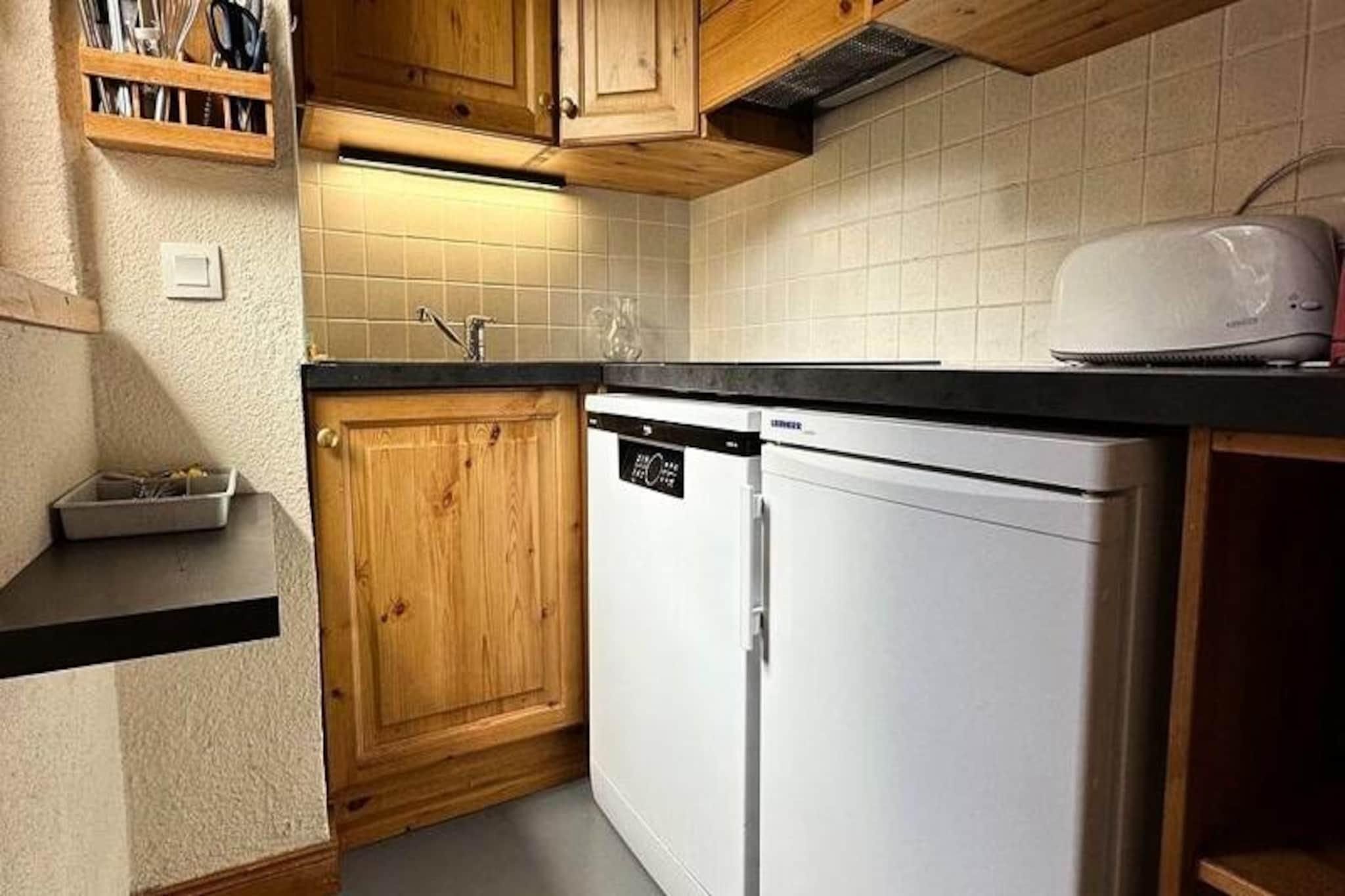 Højt over Tarentaise-dalen tilbyder denne charmerende lejlighed i Soldanelles-residensen et hyggeligt alpint tilflugtssted til din næste bjergferie. Beliggende i hjertet af Plagne Villages i 2.050 meters højde, er det den perfekte base for både skiløbere og naturelskere. Forestil dig at træde ud på din solrige terrasse hver morgen, omgivet af en betagende udsigt over snedækkede tinder og rolige granskove, klar til at omfavne dagens eventyr. Indenfor kombinerer lejligheden komfort og praktisk anvendelighed, hvilket gør den ideel til familier eller små grupper. Opholds- og spisestuen har en udtrækssovesofa, et fladskærms-tv og direkte adgang til terrassen, hvilket skaber et varmt og indbydende rum at slappe af. Det separate køkken er fuldt udstyret med moderne apparater, herunder opvaskemaskine, keramisk kogeplade og kaffemaskine, hvilket sikrer, at du har alt, hvad du behøver for at tilberede solide måltider efter en dag på pisterne. Lejligheden har komfortabel plads til op til syv gæster, med et privat soveværelse med køjesenge og en enkeltseng samt en mezzanin med to ekstra senge. Et badeværelse med badekar og et separat toilet bidrager til bekvemmeligheden. Soldanelles-residensen er perfekt beliggende kun få skridt fra pisterne, ESF-skiskolen og lokale butikker, hvilket gør det nemt at nyde alt, hvad Plagne Villages har at byde på. Forbundet til Plagne-Centre via en svævebane, der kører indtil sent om aftenen, har du adgang til et bredere udvalg af spisesteder, shopping og afterski-muligheder. Uanset om du er her for skiløb i verdensklasse, den rolige bjergatmosfære eller bekvemmeligheden ved et højtliggende feriested, sikrer denne lejlighed et mindeværdigt ophold i de franske alper. Book din alpine ferie i dag og skab uforglemmelige minder i hjertet af Paradiski.