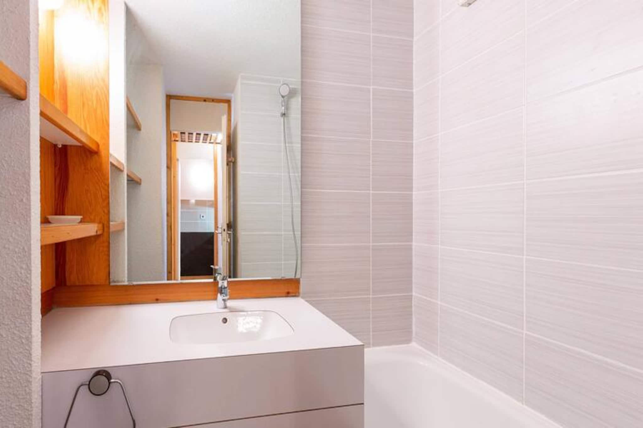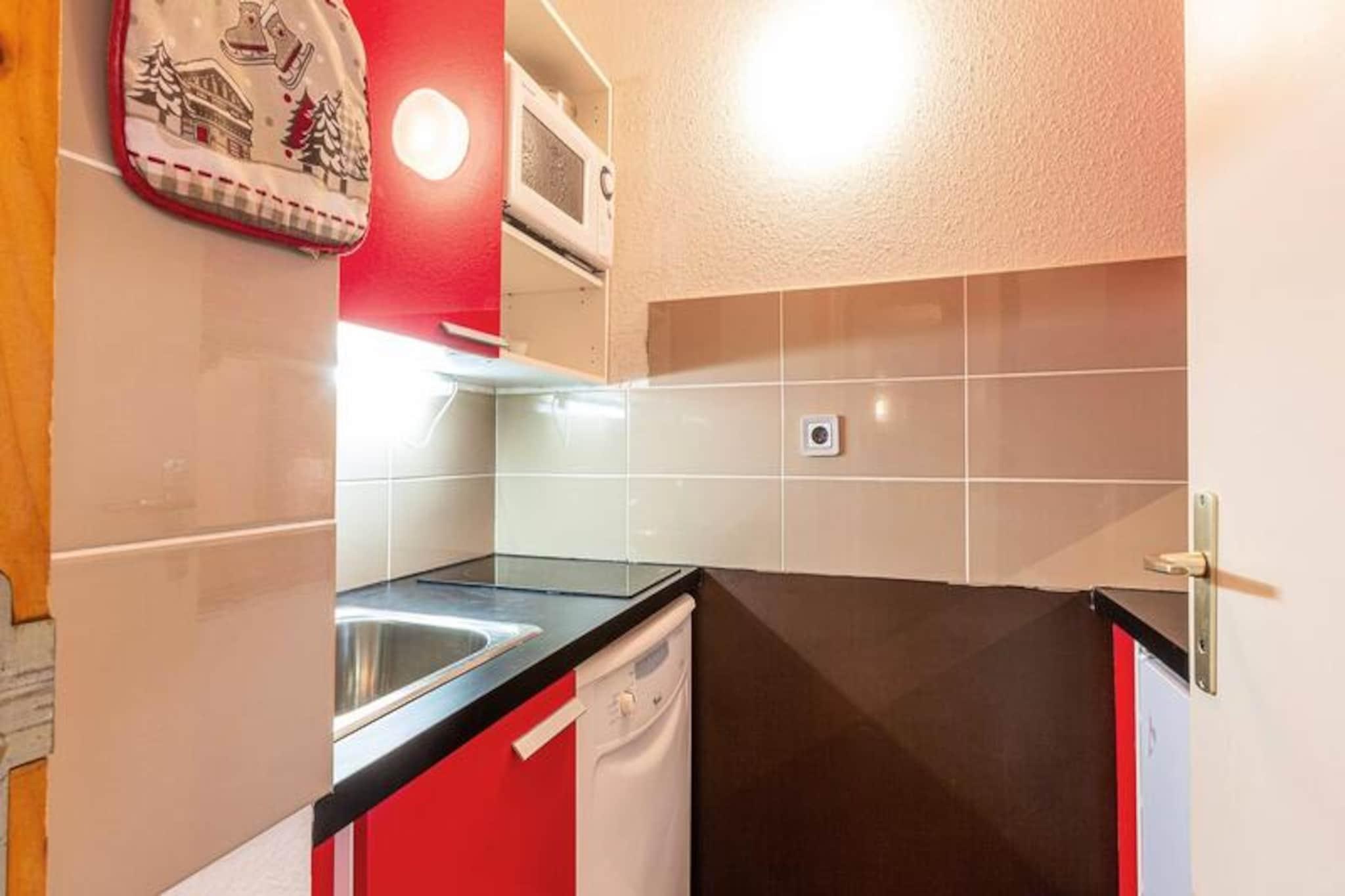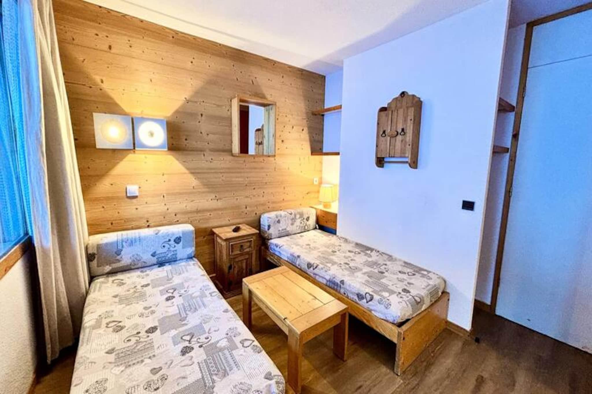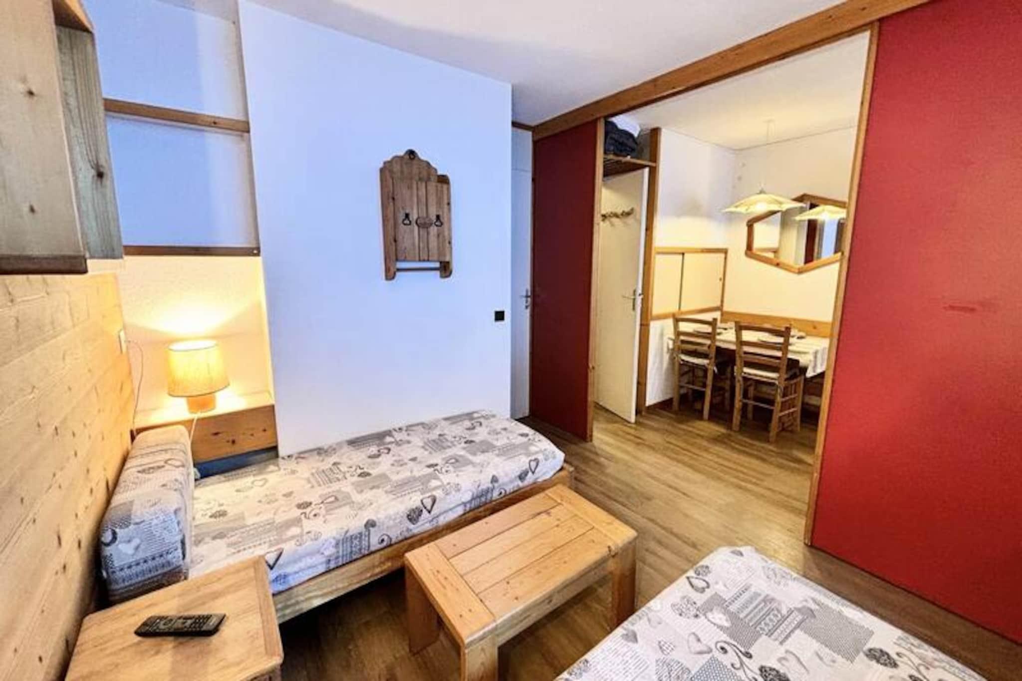 Midt i Les Coches' fredfyldte skønhed tilbyder dette charmerende 27 m² store studie et hyggeligt alpint tilflugtssted for op til fire gæster. Med sin beliggenhed i stueetagen og sydvendte terrasse med udsigt over de fortryllende grantræer er det det perfekte sted at slappe af efter en dag med bjergeventyr. Studiets smarte design inkluderer en flytbar skillevæg, der skaber et fleksibelt opholdsrum, der sikrer både komfort og privatliv under dit ophold. \n\nIndenfor finder du et veludstyret tekøkken med mikrobølgeovn, opvaskemaskine, keramiske kogeplader, køleskab, elektrisk kaffemaskine, brødrister og endda et raclette-sæt for en ægte smag af Alperne. Opholdsstuen har fire enkeltsenge og et tv, mens badeværelset og det separate toilet øger komforten. Lejligheden er røgfri, kæledyrsfri og har behagelige dyner til en god nats søvn. Der er et skiskab i boligen for nem adgang til pisterne.\n\nSelve boligen er en blanding af traditionel træ- og stenarkitektur, der er problemfrit forbundet med nærliggende bygninger for ekstra bekvemmelighed. Beliggende i hjertet af Les Coches, er du kun få skridt fra butikker, restauranter og den livlige Place du Carreau, hvor sæsonbestemte aktiviteter bringer landsbyen til live. Familier vil sætte pris på nærheden til dagplejen og ESF-skiskolen, mens parkeringskælderen sikrer problemfri ankomst.\n\nUanset om du er her for at sno dig gennem Paradiski-pisterne eller udforske sommerløjperne, tilbyder dette studie en indbydende base for din alpine flugt. Book nu og fordyb dig i charmen og eventyret i de franske alper.