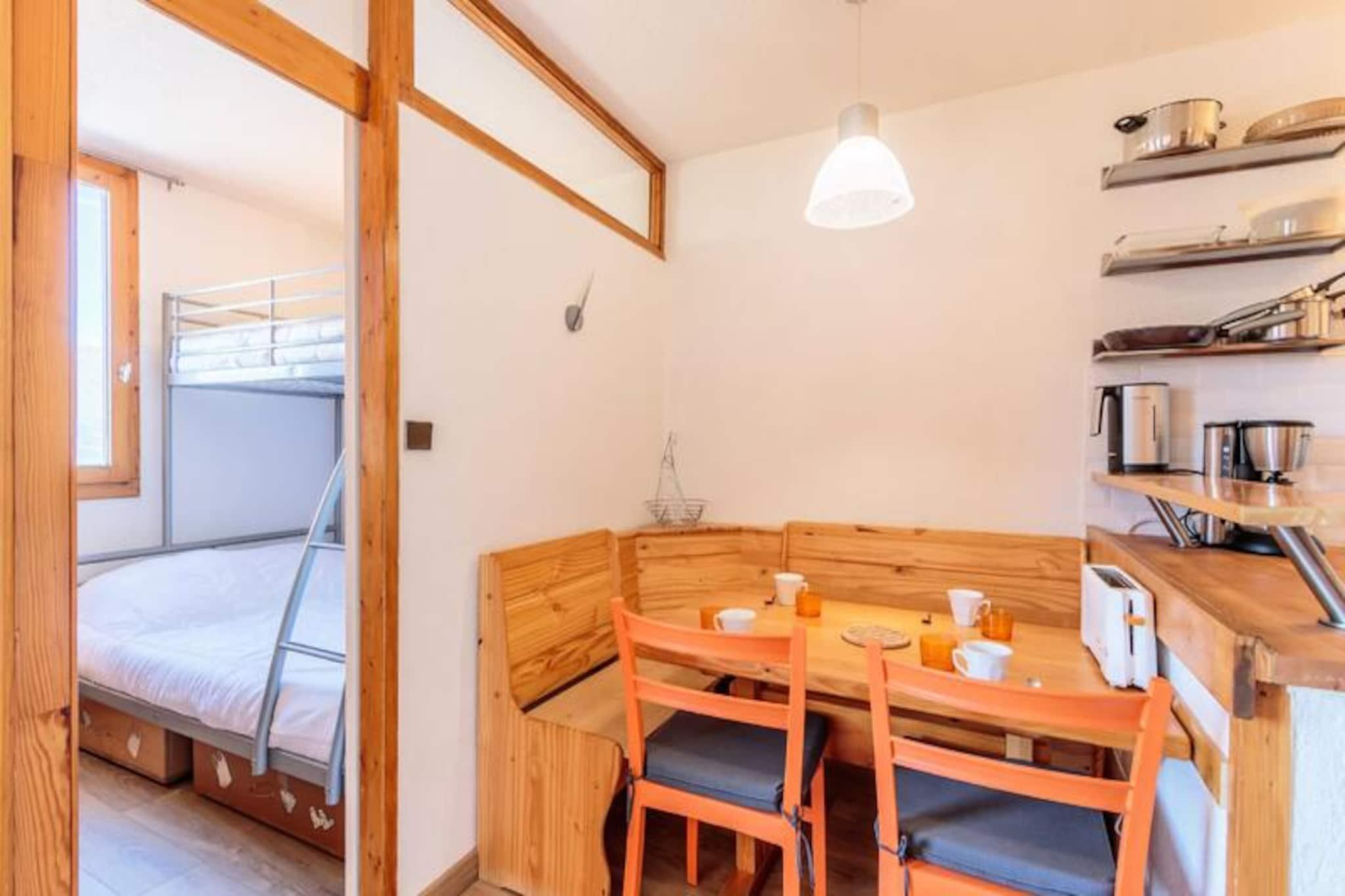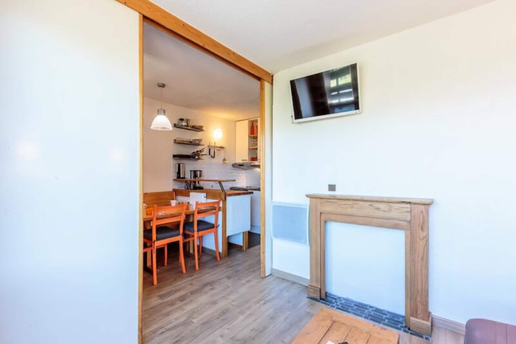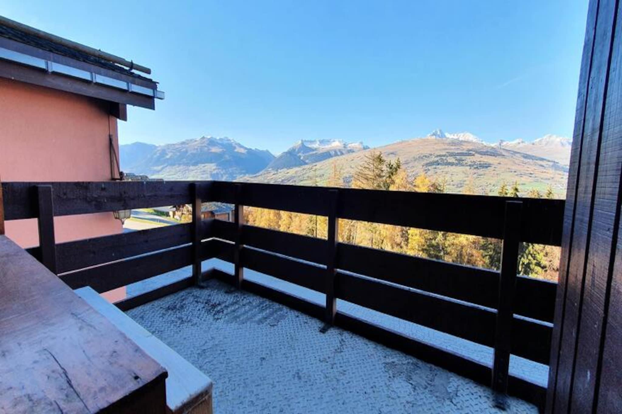 I udkanten af ??den charmerende landsby Les Coches tilbyder denne hyggelige lejlighed et dejligt alpint tilflugtssted med en fantastisk udsigt over Mont Blanc fra den nordvendte balkon. Perfekt beliggende i hjertet af feriestedet giver den nem adgang til pisterne og den pulserende Place des Commerces, hvor lokale butikker, restauranter og aktiviteter skaber en livlig atmosfære for besøgende året rundt. Uanset om du søger spændende skieventyr eller rolige bjergture, sætter denne ejendom scenen for uforglemmelige øjeblikke i de franske alper. \n\nLejligheden, der ligger på anden sal i en stor bolig, er omhyggeligt designet til at rumme op til fire gæster. Den har et komfortabelt soveværelse med køjesenge, en stue med sovesofa, tv og radio samt et veludstyret køkkenområde med ovn, opvaskemaskine, mikrobølgeovn, keramiske kogeplader, køleskab og essentielle apparater som kaffemaskine og brødrister. Et separat badeværelse og toilet sikrer bekvemmelighed, mens skiboksen i bygningen tilføjer praktiske fordele for vintersportsentusiaster. Boligen tilbyder også underjordisk parkering, som kan reserveres på forhånd for ekstra bekvemmelighed. Les Coches er en perle i Paradiski-området, der tilbyder direkte adgang til skiløjper i verdensklasse og en række aktiviteter for alle aldre. ESF-skiskolen og daginstitutionen ligger kun få skridt væk, hvilket gør det til et ideelt valg for familier. Om sommeren forvandles området til et paradis for vandrere og cyklister med stier, der fører til betagende panoramaer og fredfyldte alpine enge. Den pulserende Place du Carreau er vært for arrangementer og aktiviteter, der bringer lokalsamfundet sammen og sikrer underholdning og afslapning under hele dit ophold. Uanset om du er tiltrukket af spændingen ved skiløb eller roen i bjerglandskaber, kombinerer denne lejlighed komfort, bekvemmelighed og charme, hvilket gør den til den perfekte base for dine alpine eventyr.