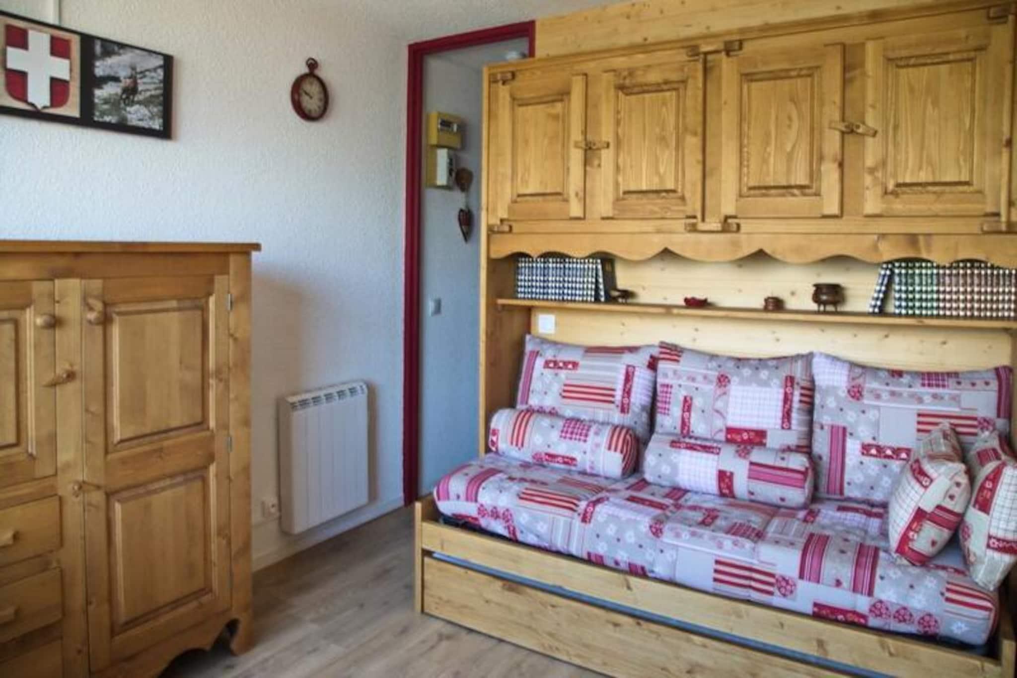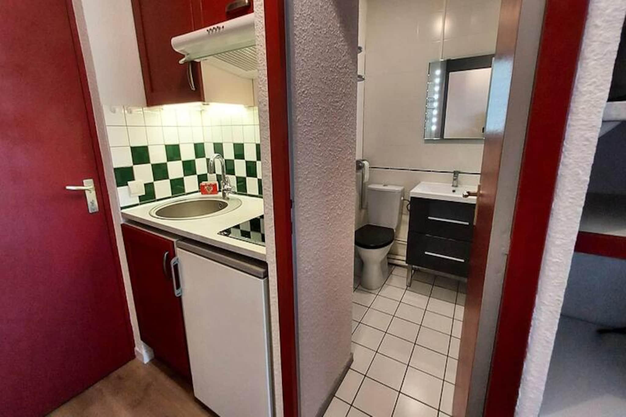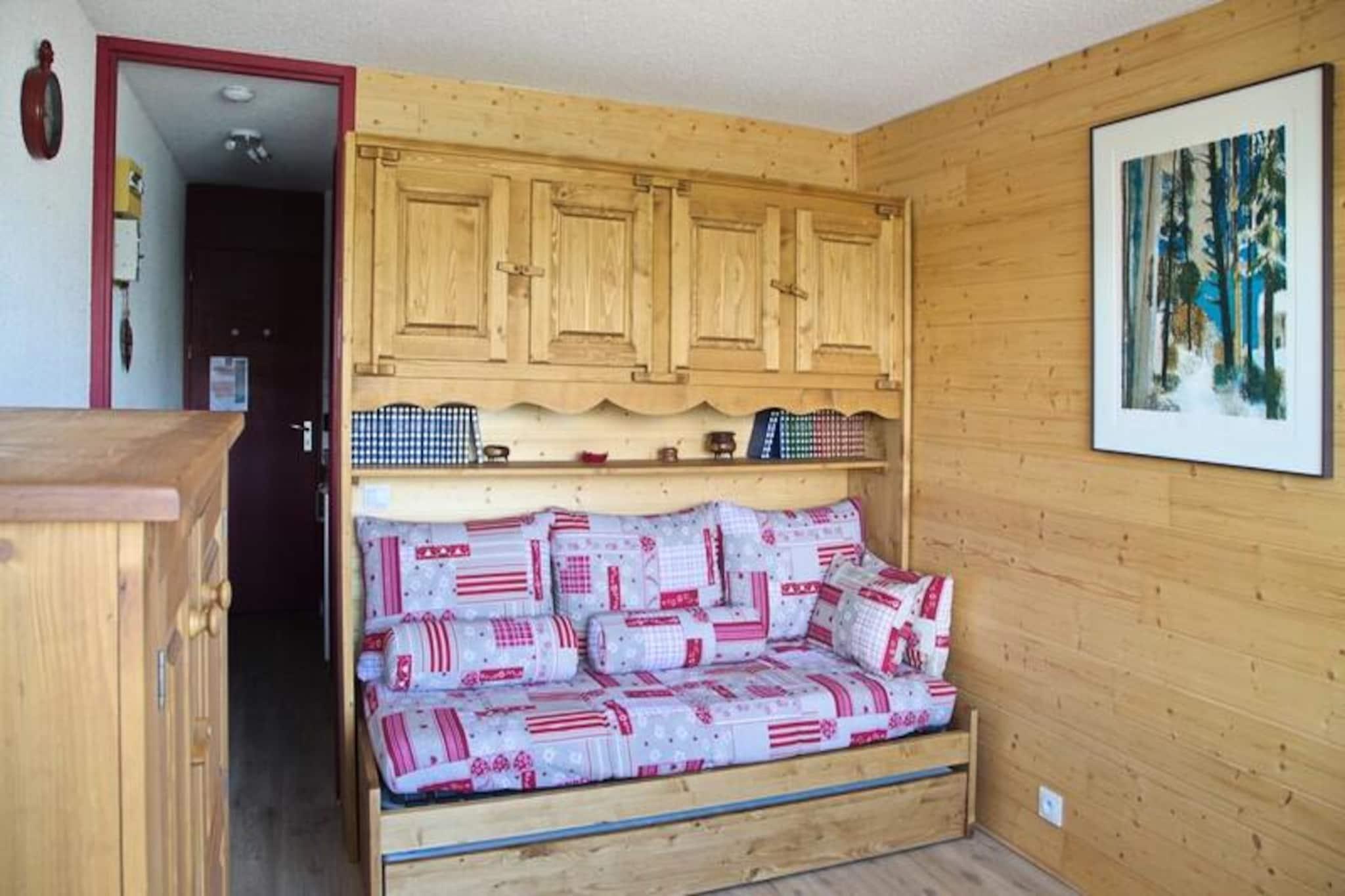 Højt over Tarentaise-dalen tilbyder dette charmerende studie et hyggeligt tilflugtssted for to i det fredfyldte Observatoire-distrikt Les Coches. Fra din private balkon kan du nyde den betagende udsigt over Mont Blanc og de omkringliggende alpine landskaber, mens solen går ned over den nordvestlige horisont. Dette gemmested på øverste etage er perfekt til par eller solorejsende og er en fredelig flugt fra hverdagens travlhed. Det 17 m² store studie er omhyggeligt designet til at maksimere komfort og funktionalitet. Opholdsstuen har en enkelt sovesofa med en udtræksseng, ideel til afslappende nætter efter en dag med eventyr. Det kompakte køkken er udstyret med moderne bekvemmeligheder, herunder en kombinationsovn, keramiske kogeplader, et køleskab og en Nespresso-kaffemaskine, så du nemt kan tilberede måltider. Badeværelset har et toilet og alt det nødvendige for en forfriskende start på dagen. Bemærk venligst, at lejligheden er røgfri, kæledyrsfri og ikke inkluderer Wi-Fi. Beliggende kun 100 meter fra skiløjperne og 300 meter fra feriestedets centrum, tilbyder residensen L'Équerre uovertruffen bekvemmelighed. Der er offentlig parkering lige udenfor, og skiboksen sørger for, at dit udstyr altid er klar til den næste tur. Observatoire-distriktet er kendt for sin ro og fantastiske udsigter, med gangstier, der forbinder dig med butikker, restauranter og det pulserende hjerte af Les Coches på under fem minutter. Uanset om du er her for at grave dig gennem sneen om vinteren eller udforske de frodige bjergstier om sommeren, er dette studie den perfekte base for at skabe uforglemmelige alpine minder. Med Mont Blanc som baggrund og pisterne lige uden for døren venter dit bjergeventyr.