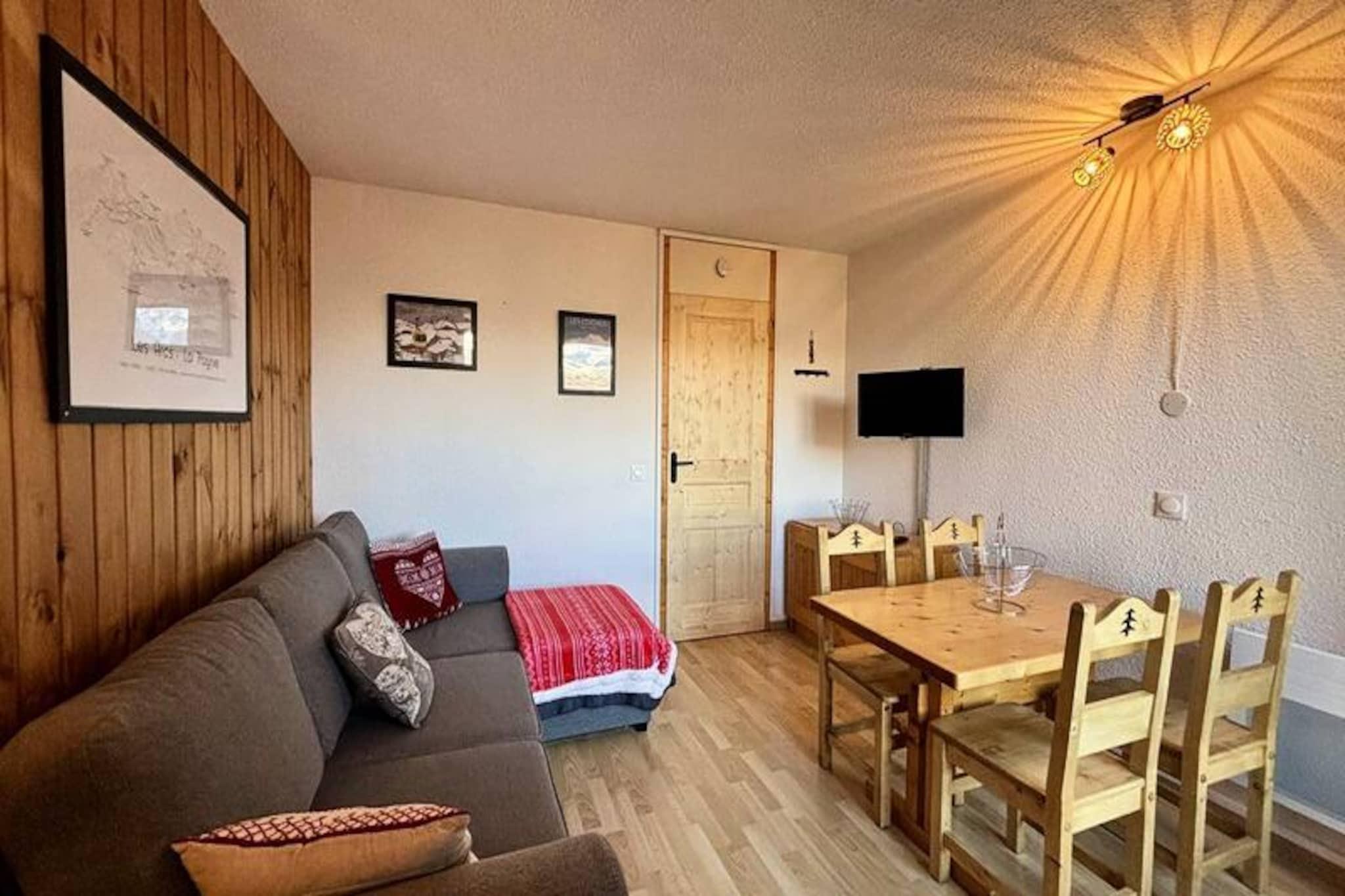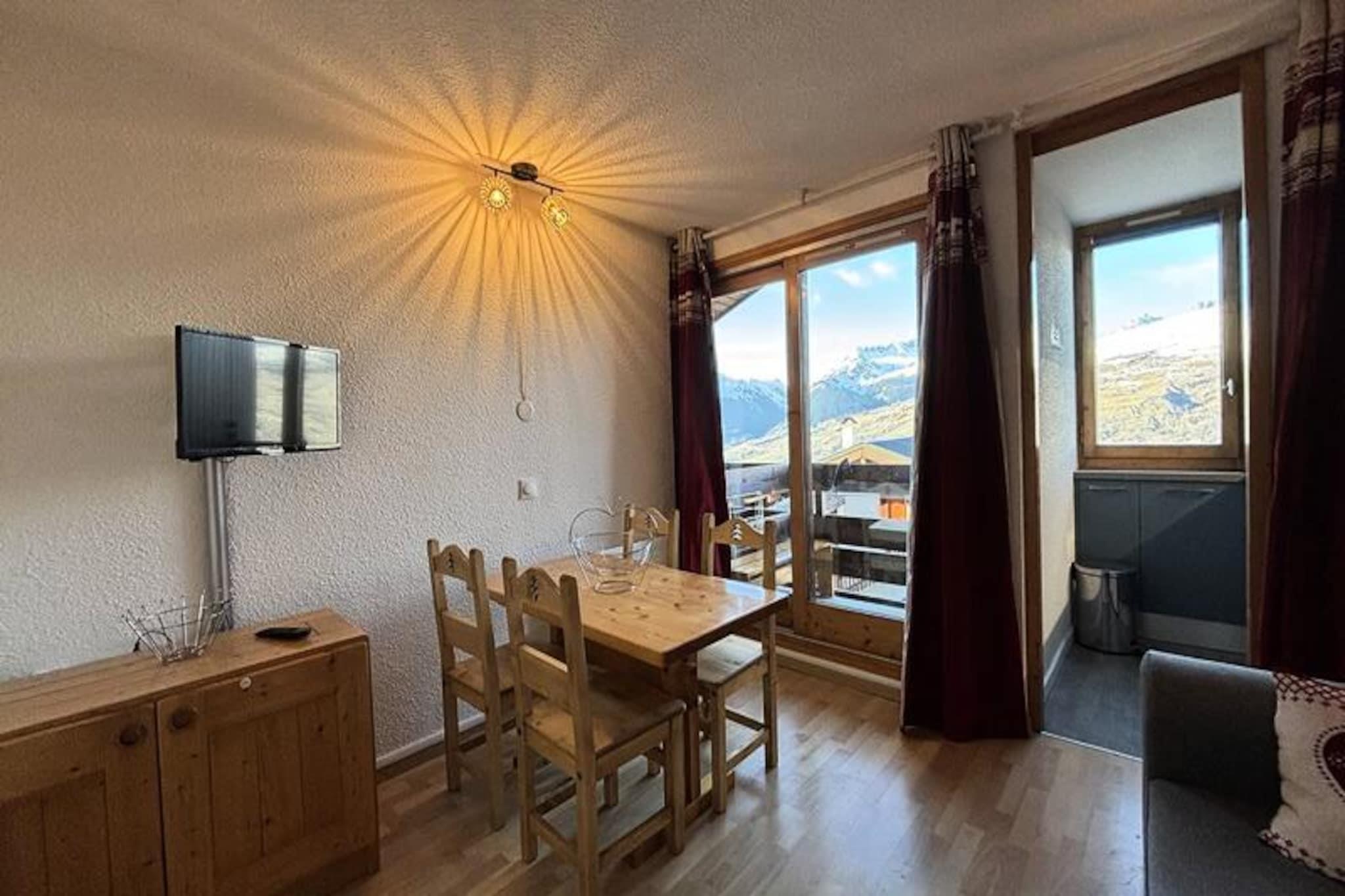 Højt over Tarentaise-dalen tilbyder denne charmerende lejlighed med et soveværelse et hyggeligt alpint tilflugtssted med en betagende udsigt over Mont Blanc. Beliggende i det fredelige observatoriumsdistrikt Les Coches er det den perfekte base for par eller små familier, der søger en rolig flugt midt i de franske alper. Den nordvestvendte balkon inviterer dig til at slappe af med en varm drink, mens du nyder det majestætiske bjerglandskab efter en dag med eventyr. Indenfor er den 25 m² store lejlighed omhyggeligt designet til at maksimere komforten. Stuen har en sovesofa og tv, mens tekøkkenet er fuldt udstyret med moderne apparater, herunder mikrobølgeovn, opvaskemaskine, induktionskogeplader og endda et raclette- og fonduesæt til autentisk alpin mad. Soveværelset har en hyggelig dobbeltseng, og badeværelset og det separate toilet sikrer bekvemmelighed for alle gæster. Selvom der ikke er Wi-Fi, giver de rolige omgivelser og bjergudsigten den perfekte mulighed for at koble fra og genoplade. L'Equerre-residensen er ideelt beliggende kun 100 meter fra skiløjperne og 300 meter fra feriestedets centrum, hvilket giver nem adgang til butikker, restauranter og afterski-aktiviteter. Der er offentlig parkering i nærheden, og et skirum i boligen sikrer problemfri opbevaring af dit udstyr. Om sommeren forvandles området til et paradis for vandrere og naturelskere med stier, der fører til panoramaudsigter og frodige alpine enge. Uanset om du er her for spændingen ved skiløb i Paradiski-området eller roen i bjerglandskaberne, lover denne lejlighed en uforglemmelig alpin ferie.