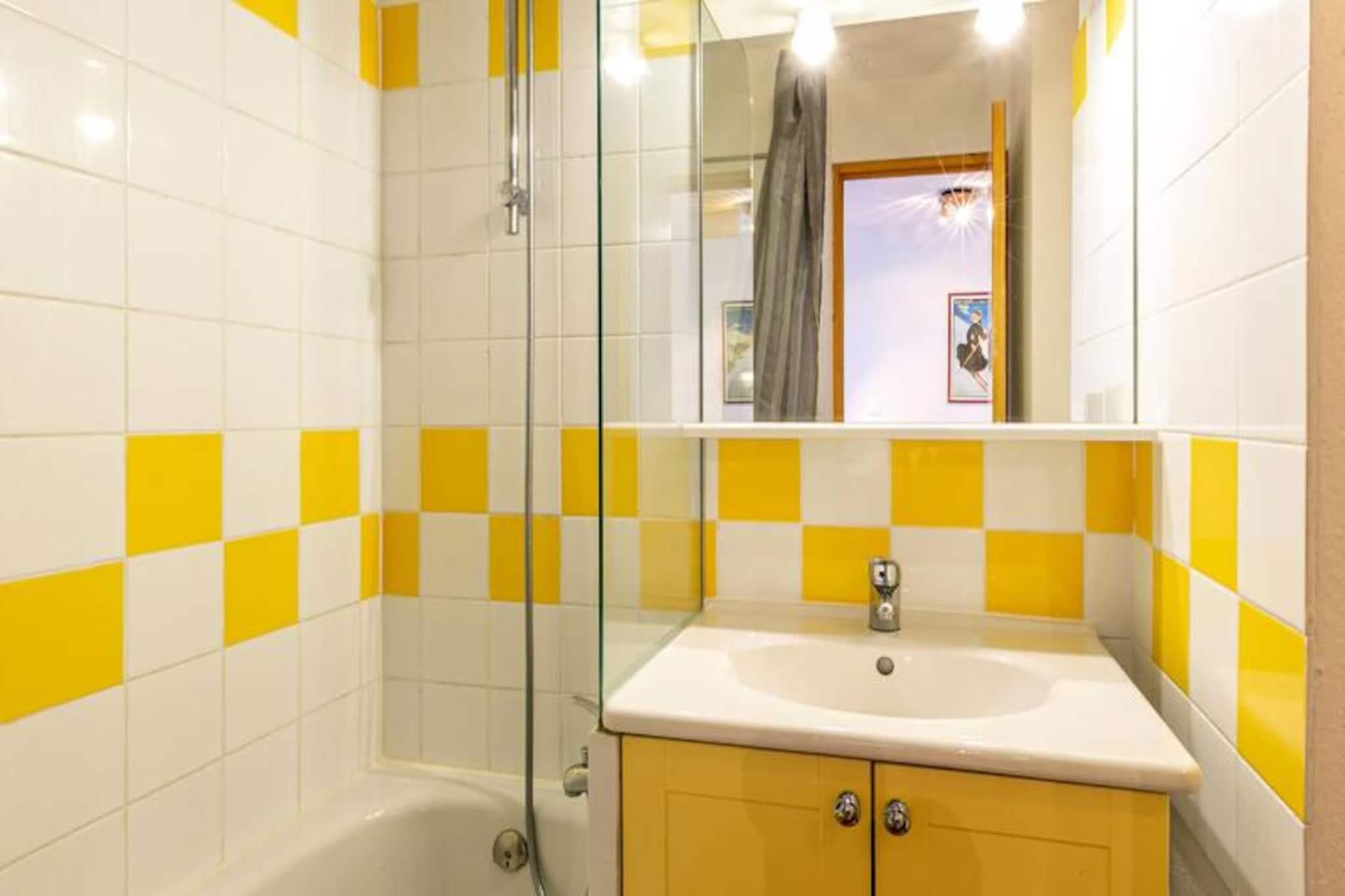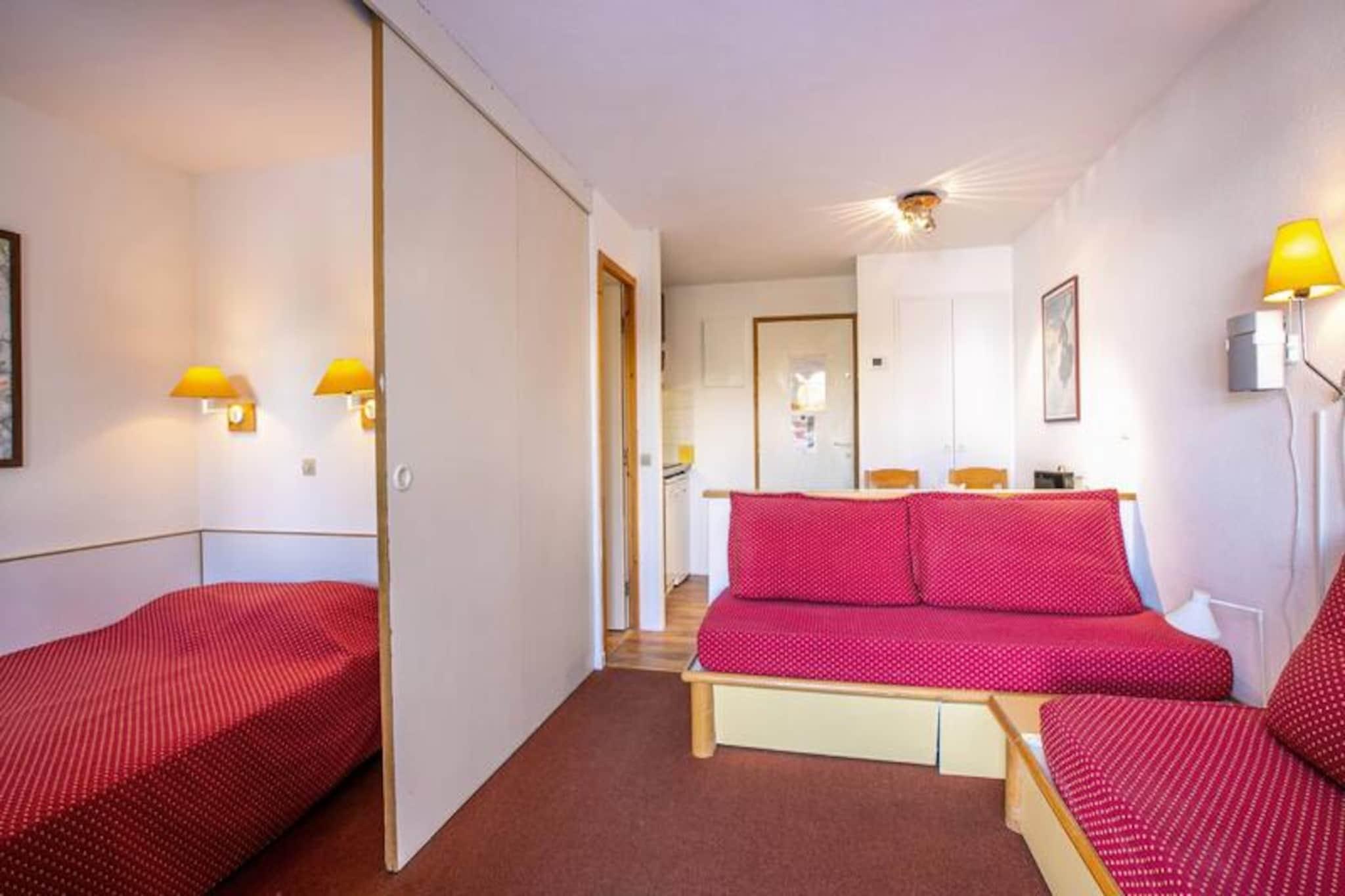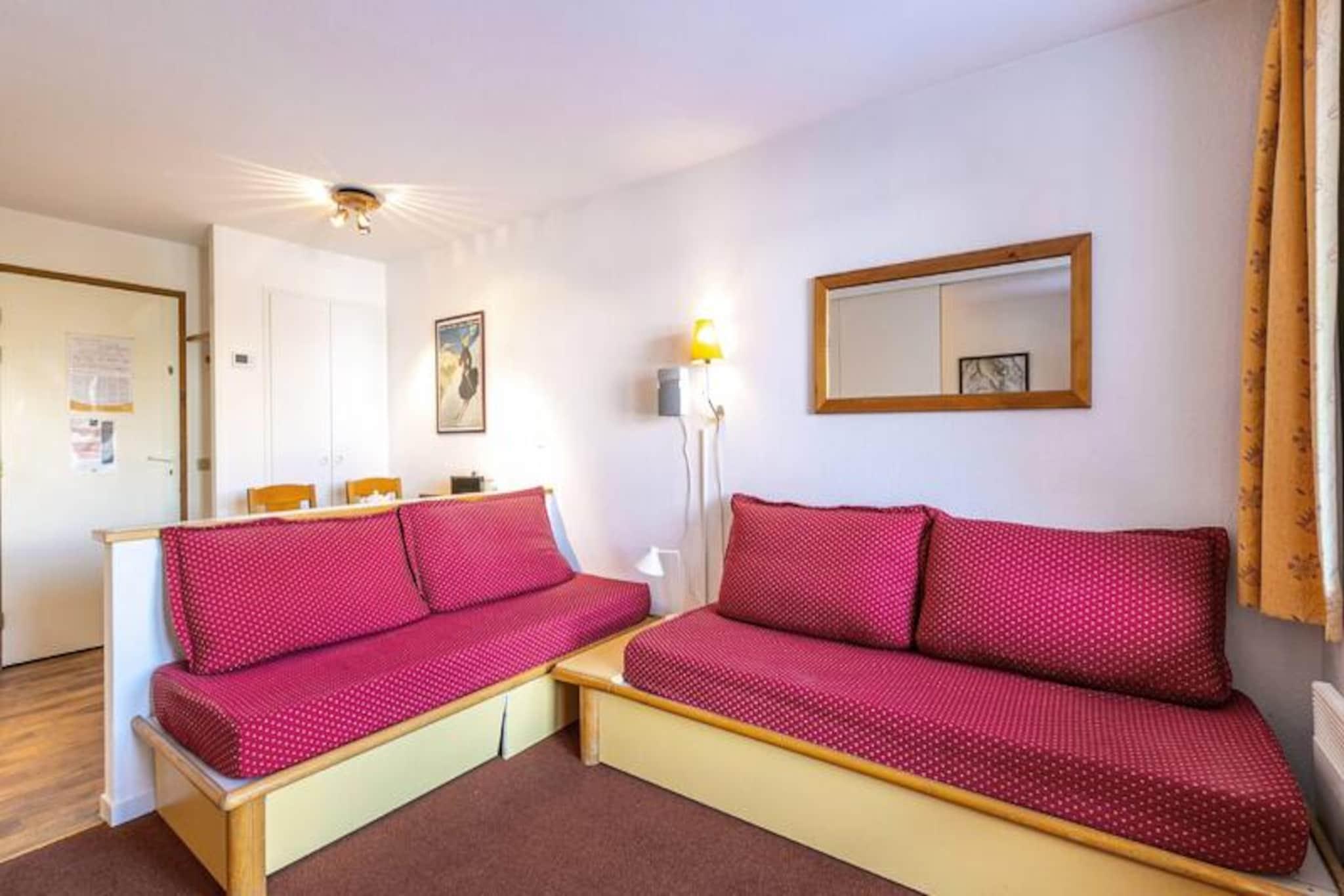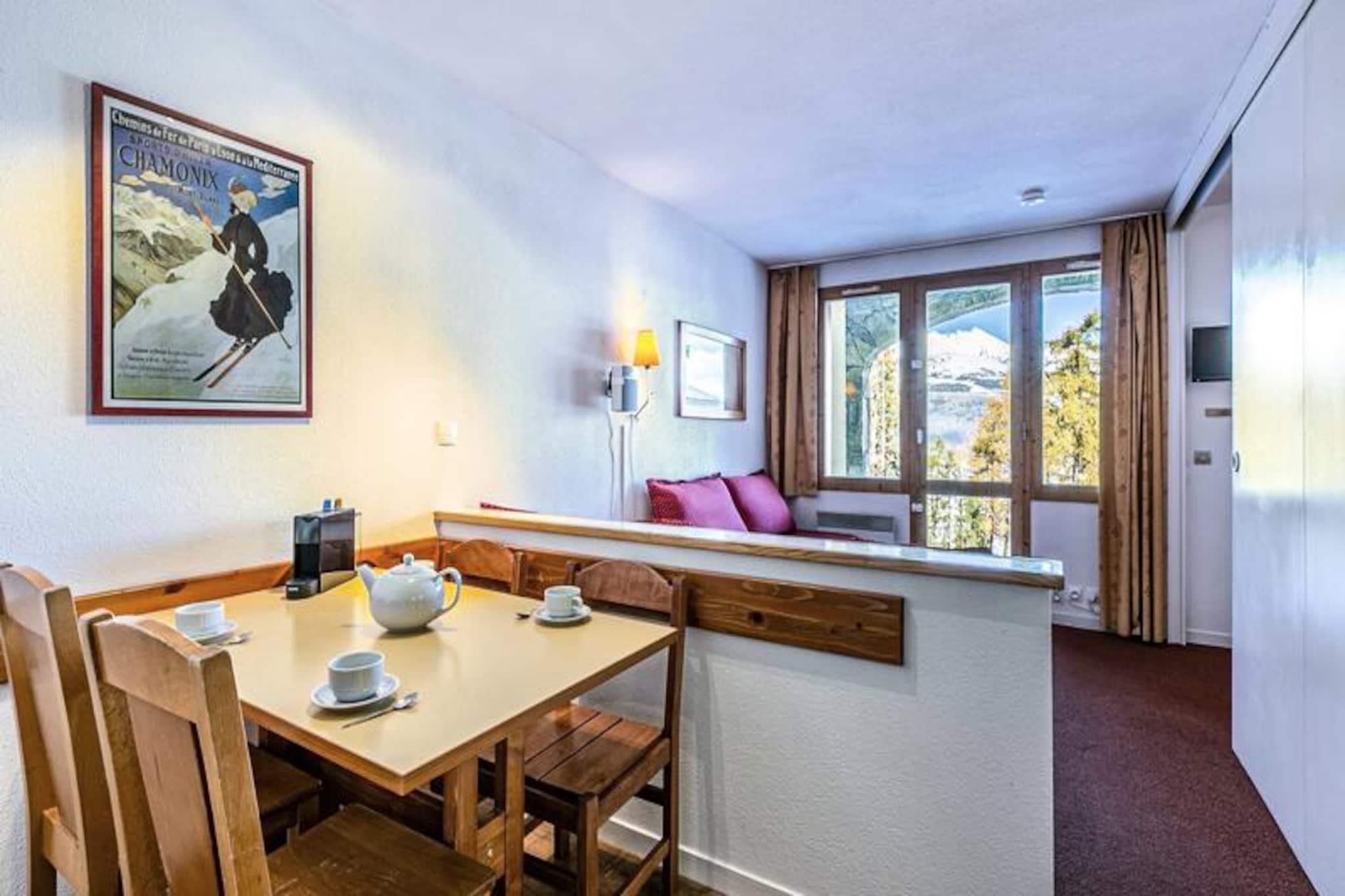 I hjertet af de franske alper, hvor skoven møder pisterne, tilbyder denne charmerende lejlighed i stueetagen et hyggeligt tilflugtssted for op til fire gæster. Forestil dig at træde ud på din private terrasse med udsigt over det majestætiske Mont Blanc, indånde den friske alpeluft og føle dig fuldstændig i fred i disse fredfyldte bjergomgivelser. Uanset om du er her for spændingen ved skiløb eller naturens ro, er denne bolig den perfekte base for dine eventyr. Den 25 m² store lejlighed er omhyggeligt designet til at maksimere komfort og funktionalitet. Stuen har to enkeltsenge og et tv, hvilket skaber et indbydende rum til at slappe af efter en dag på pisterne. Tekøkkenet er fuldt udstyret med moderne apparater, herunder en kombiovn, induktionskogeplade, opvaskemaskine, køleskab og kaffemaskine, hvilket gør det nemt at tilberede dine yndlingsmåltider. Et separat soveværelse med en flytbar skillevæg rummer en komfortabel dobbeltseng, mens badeværelset har badekar og toilet. Bemærk venligst, at lejligheden er røgfri, kæledyrsfri og ikke inkluderer Wi-Fi, hvilket sikrer et fredeligt og distraheringsfrit miljø. L'Epervier-residensen ligger i udkanten af ??en skov og tilbyder ski-in/ski-out-adgang via en nærliggende blå piste. Feriestedets centrum med sit udvalg af butikker og faciliteter ligger kun 10 minutters gang væk, hvilket gør det nemt at spise, shoppe eller deltage i afterskiing. Der er parkering i nærheden af ??residensen, hvilket gør dit ophold endnu nemmere. Uanset om du er tiltrukket af Montchavins pister eller den betagende udsigt over Mont Blanc, inviterer denne lejlighed dig til at opleve Alpernes magi. Perfekt til par eller små familier, det er et sted, hvor uforglemmelige minder skabes, sæson efter sæson.