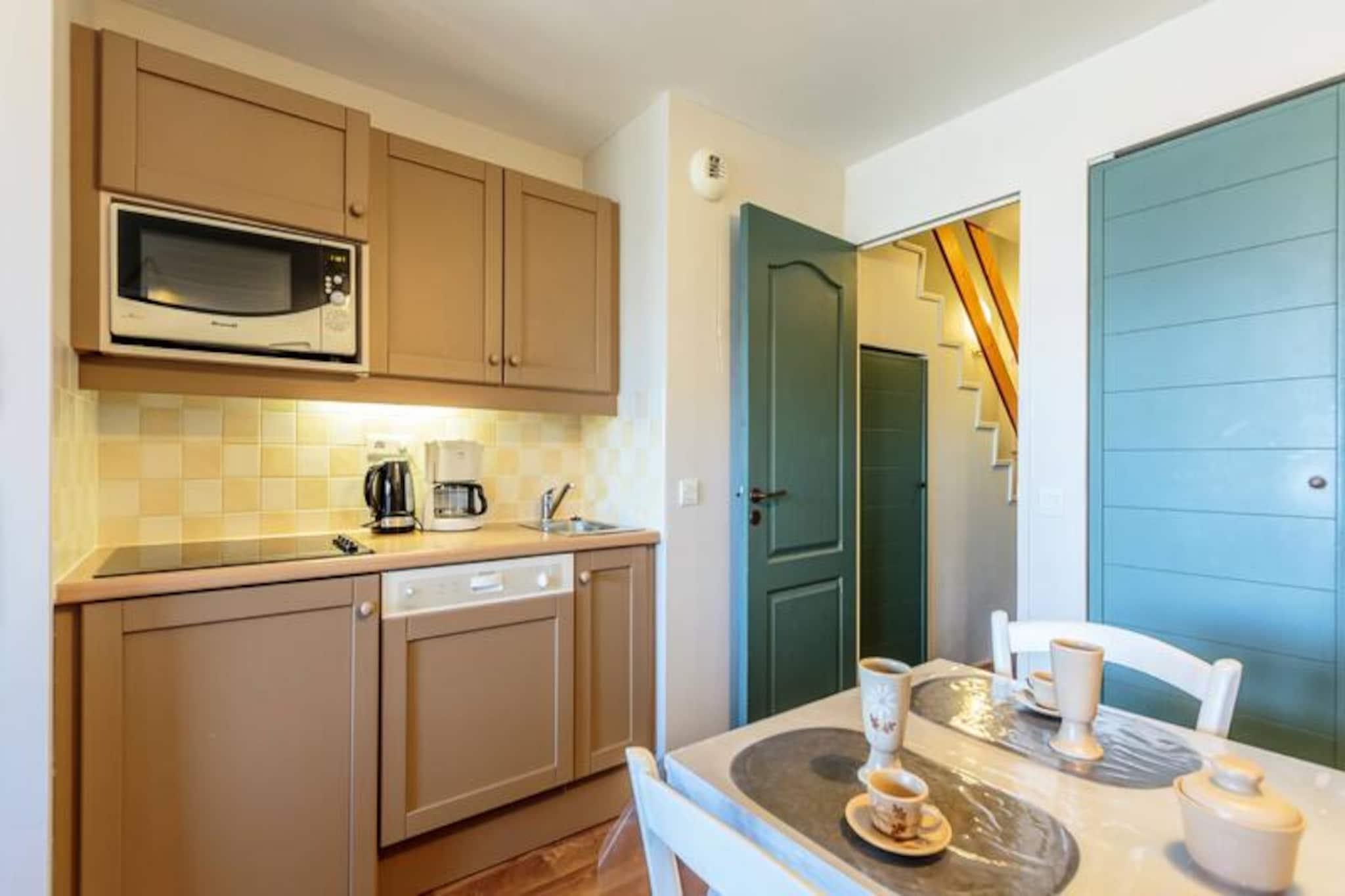 Højt over dalen, hvor luften er frisk, og udsigten over Mont Blanc er intet mindre end betagende, tilbyder denne charmerende duplexlejlighed et hyggeligt alpint tilflugtssted for op til fire gæster. Beliggende på øverste etage i en traditionel bolig med elevatoradgang, kombinerer denne ejendom moderne komfort med den rustikke charme i de franske alper, hvilket gør den til et ideelt tilflugtssted for både skiløbere og naturelskere. Forestil dig at vågne op til den fredfyldte skønhed af snedækkede tinder og træde ud på din private balkon for at nyde panoramaudsigten over dalen nedenfor. Indenfor er lejligheden omhyggeligt designet til at maksimere plads og komfort. Øverste etage har et roligt soveværelse med to enkeltsenge, mens stueetagen kan prale af en lys opholdsstue med en sovesofa og tv, perfekt til afslapning efter en dag på pisterne. Det fuldt udstyrede tekøkken inviterer dig til at tilberede solide alpine måltider, komplet med et raclette-sæt til autentisk regional mad. Et badeværelse, separat toilet og skiboks bidrager til bekvemmeligheden og sikrer et problemfrit ophold. Bemærk venligst, at lejligheden er røgfri, kæledyrsfri og ikke inkluderer WiFi, så du kan koble helt af og fordybe dig i de naturlige omgivelser. Selve boligen er perfekt placeret med ski-in/ski-out-adgang, afhængigt af dine skiløbsevner, med en piste, der fører direkte til Montchavin. Et nærliggende shuttlebusstoppested giver nem adgang til feriestedets centrum, hvor du finder yderligere faciliteter og underholdning. Beliggende i udkanten af ??en fredfyldt skov, bidrager områdets traditionelle arkitektur af træ, sten og skifer til den fortryllende alpine atmosfære. Om sommeren forvandles beliggenheden til et paradis for vandrere og friluftsentusiaster med endeløse stier og fantastiske landskaber at udforske. Uanset om du søger spændende dage på pisterne eller rolige aftener under stjernerne, er denne lejlighed din port til uforglemmelige alpine eventyr. Med Mont Blanc som baggrund er hvert øjeblik her et postkortværdigt minde, der venter på at ske.