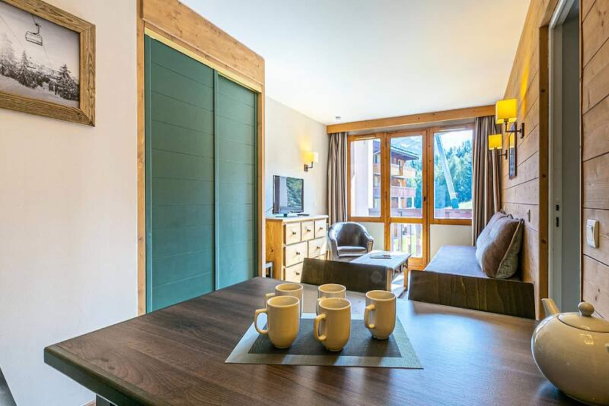 I hjertet af de franske alper tilbyder denne hyggelige lejlighed på 36 m² et idyllisk tilflugtssted for op til fem gæster. Beliggende på anden sal i en charmerende bolig kombinerer den moderne komfort med alpin charme. Forestil dig at vågne op til den fredfyldte skønhed af snedækkede skråninger, der er synlige fra din østvendte balkon – et perfekt sted at nyde din morgenkaffe, mens du nyder den friske bjergluft. Lejlighedens gennemtænkte planløsning inkluderer et soveværelse med en dobbeltseng, en sovealkove med køjesenge og en stue med en enkeltseng, hvilket gør den ideel til familier eller små grupper. Det fuldt udstyrede køkken med raclette- og fonduesæt inviterer dig til at nyde traditionelle savoyard-måltider efter en dag med eventyr. Et separat badeværelse og toilet bidrager til bekvemmeligheden, mens skiboksen sikrer, at dit udstyr altid er klar til den næste udflugt. Bemærk venligst, at dette er en ikke-ryger, kæledyrsfri lejlighed, og Wi-Fi er ikke tilgængelig. Selve boligen er perfekt placeret med ski-in/ski-out adgang, afhængigt af dit niveau, og ligger tæt på pisterne, der fører til Montchavin. Med traditionel arkitektur, der blander træ, sten og skifer, udstråler den alpin autenticitet. Et shuttlebusstoppested i nærheden giver nem adgang til feriestedets centrum, mens parkering er bekvemt placeret tæt på boligen. Omgivet af en malerisk skov og med en betagende udsigt over Mont Blanc og dalen er denne beliggenhed et paradis for både naturelskere og skientusiaster. Uanset om du udforsker pisterne, nyder det lokale køkken eller blot slapper af i de rolige alpine omgivelser, lover denne lejlighed en uforglemmelig bjergferie. Book dit ophold nu, og fordyb dig i magien i de franske alper.