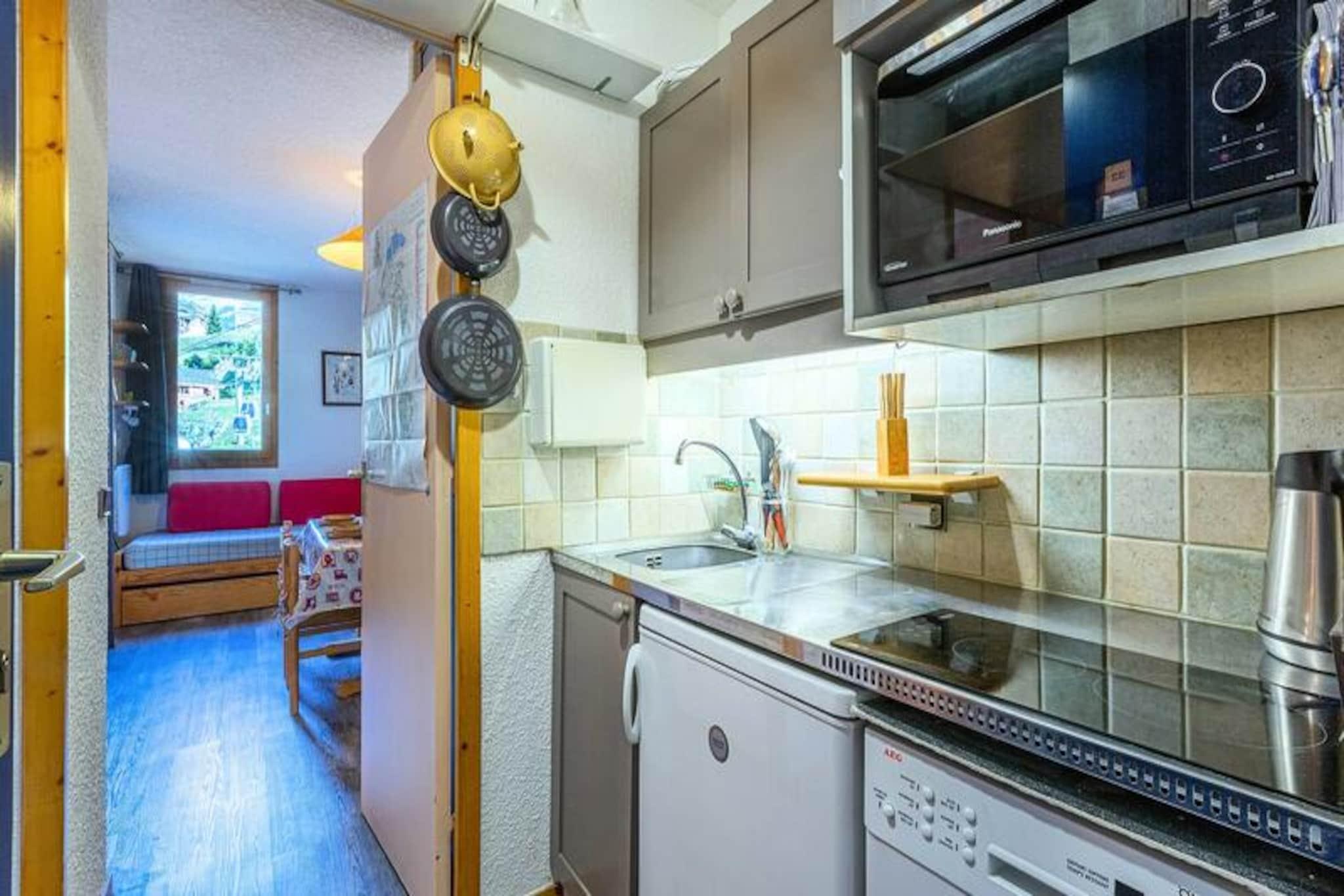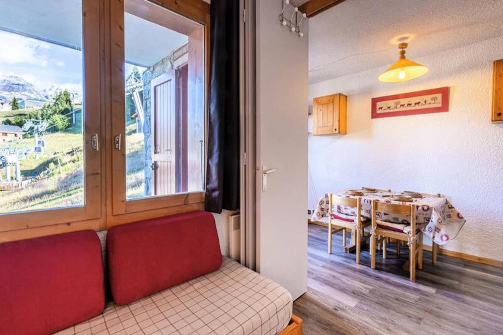 Vågn op til de franske alpers fredfyldte skønhed i dette charmerende studie beliggende i hjertet af Les Coches. Dette hyggelige tilflugtssted er perfekt placeret for skientusiaster og tilbyder direkte adgang til pisterne, så du kan træde udenfor og nyde spændingen ved bjergene. Med sin østvendte terrasse kan du starte din dag med en betagende udsigt over den ikoniske Mont Pourri og det omkringliggende alpine landskab, mens du soler dig i den friske morgenluft. Residensen, La Clef, er en sand perle for dem, der søger en blanding af bekvemmelighed og naturlig skønhed. Dette studie på 24 m² er designet til op til fire gæster og er omhyggeligt udstyret for at sikre et behageligt ophold. Opholdsstuen har to enkeltsenge og en udtræksseng, hvilket gør den ideel til familier eller små grupper. Køkkenet er fuldt udstyret med moderne apparater, herunder en kombiovn, opvaskemaskine, keramiske kogeplader og endda et raclette- og fonduesæt til hyggelige aftener derhjemme. Et separat badeværelse og toilet bidrager til bekvemmeligheden, mens ikke-rygerpolitikken sikrer et friskt og behageligt miljø. Skiboksen i boligen gør det nemt at opbevare dit udstyr, så du kan fokusere på at nyde dit alpine eventyr. La Clef ligger ved foden af ??pisterne, kun få skridt fra Les Coches' pulserende centrum. Her finder du et udvalg af butikker, restauranter og essentielle tjenester samt ESF-skiskolen og daginstitutioner. Den livlige Place du Carreau er vært for en række aktiviteter, der bidrager til charmen i denne maleriske landsby. For dem, der ankommer i bil, er der bekvem overdækket parkering i nærheden. Uanset om du er her for at grave dig gennem sneen, udforske naturskønne stier eller blot nyde den rolige bjergatmosfære, tilbyder dette studie den perfekte base for en uforglemmelig alpin flugt. Oplev magien i Les Coches og skab minder, der vil vare hele livet.