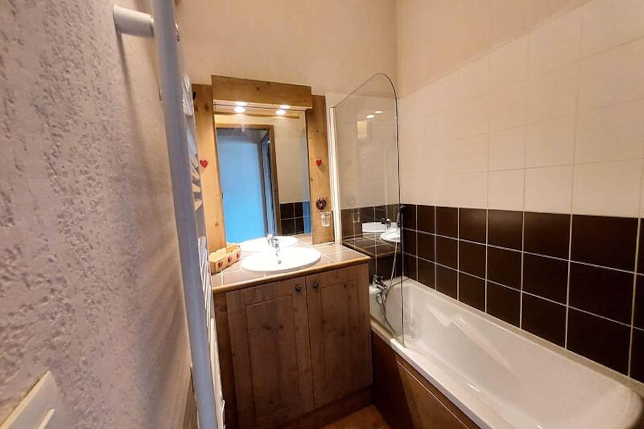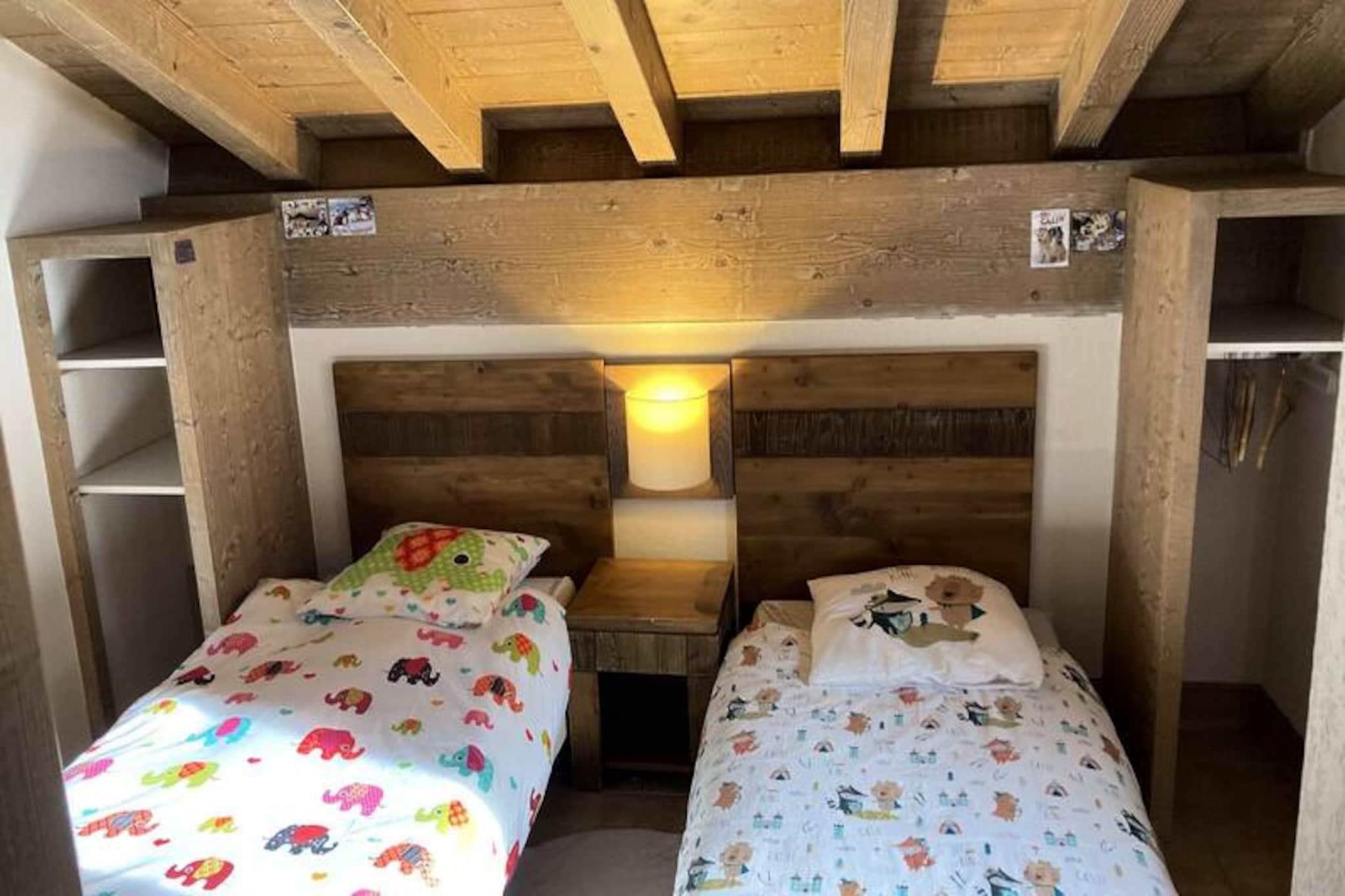 I udkanten af ??den maleriske Mont Blanc-dal tilbyder denne charmerende lejlighed på 56 m² et hyggeligt tilflugtssted for op til seks gæster. Beliggende på første sal i en lille hytte, kombinerer den alpin charme med moderne bekvemmeligheder, hvilket gør den til et ideelt valg for familier eller grupper, der søger en uforglemmelig bjergferie. Forestil dig at vågne op til en betagende udsigt over Mont Blanc fra din nordvendte balkon, indånde den friske bjergluft og træde ind i en dag fyldt med eventyr i hjertet af Les Coches. \n\nLejligheden har en gennemtænkt planløsning, herunder et soveværelse med en 160 cm dobbeltseng og eget brusebad, et soveværelse på loftet med to enkeltsenge og en stue udstyret med en 140 cm sovesofa og tv. Køkkenet er fuldt udstyret med opvaskemaskine, kombinationsovn, induktionskogeplader, køleskab og endda et raclette-sæt for en ægte smag af Alperne. Yderligere bekvemmeligheder inkluderer et badeværelse, separat toilet og privat overdækket parkering. Gæster har også adgang til et skiskab i hovedresidensen. \n\nSelve den luksuriøse residens er en perle, der blander skifer, sten og træ for en varm og indbydende atmosfære. Slap af i den opvarmede indendørs pool, nyd et spil billard i receptionen, eller benyt dig af vaskeriet. Lejligheden ligger kun få skridt fra feriestedets centrum og tilbyder butikker, restauranter og ESF-skiskolen i nærheden. Den første stolelift til skiområdet La Plagne ligger kun 150 meter væk, mens Vanoise Express-svævebanen tilbyder problemfri adgang til Les Arcs. \n\nUanset om du er her for spændende skieventyr eller sommervandreture, er denne lejlighed den perfekte base for at udforske de fantastiske franske alper. Med sin blanding af komfort, bekvemmelighed og betagende udsigt lover den et mindeværdigt ophold i alle årstider.