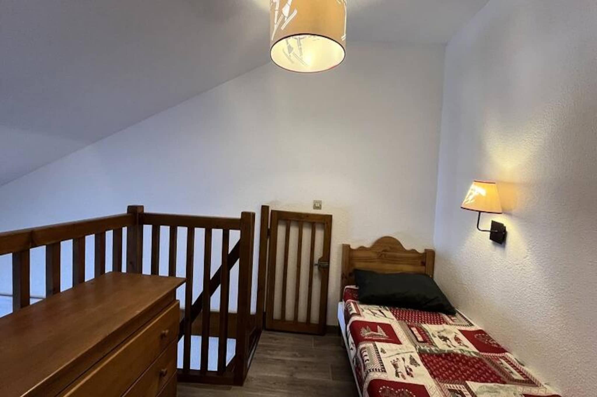 Højt over Tarentaise-dalen, hvor solen pryder hvert hjørne af det alpine landskab, tilbyder denne charmerende lejlighed med to soveværelser i Plagne Soleil et hyggeligt tilflugtssted med betagende udsigt over Grande Rochette og de omkringliggende tinder. Uanset om du er her for spændingen ved skiløb eller roen ved bjergvandringer, placerer denne ejendom dig i hjertet af det hele, med pister og butikker kun få skridt fra din dør. Den sydvendte balkon inviterer dig til at sole dig i solen, mens du nyder en af ??de mest fantastiske panoramaer i Alperne. Lejligheden, der ligger på 4. sal i Residence Le Cervin, er omhyggeligt designet til at rumme op til seks gæster. Den lyse stue har en komfortabel sovesofa og et fjernsyn, hvilket skaber et varmt rum til at slappe af efter en dag med eventyr. Køkkenet er fuldt udstyret med moderne apparater, herunder opvaskemaskine, mikrobølgeovn og keramisk kogeplade, hvilket gør madlavning til en leg. Ovenpå finder du et hyggeligt soveværelse med en dobbeltseng og en enkeltseng, mens mezzaninen og det ekstra soveværelse giver fleksible sovemuligheder. Med faciliteter som WiFi, skiboks og badekar til afslapning er hver eneste detalje skræddersyet til din komfort. Plagne Soleil lever op til sit navn med sin solrige beliggenhed og ideelle beliggenhed. Skientusiaster vil sætte pris på den direkte adgang til pisterne, mens vandrere kan udforske de naturskønne stier. En gratis shuttle forbinder dig med Plagne Village, hvilket udvider dine muligheder for restauranter, shopping og afterskiing. Uanset om du besøger skisportsstedet om vinteren for den uberørte sne eller om sommeren for de frodige stier, tilbyder denne lejlighed en perfekt base for din alpine flugt. Skab uforglemmelige minder i dette solrige paradis, hvor bjergenes skønhed møder varmen fra et indbydende hjem.