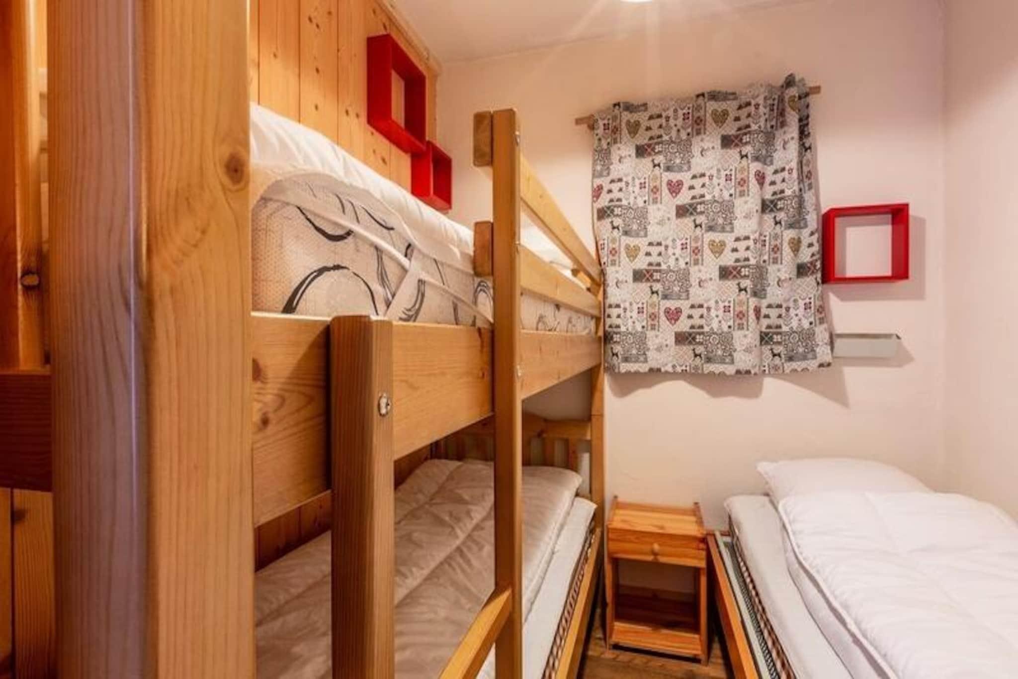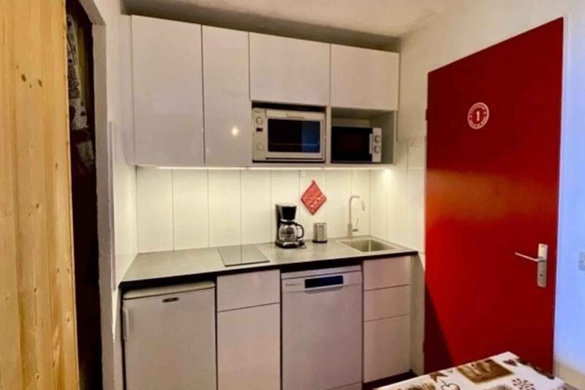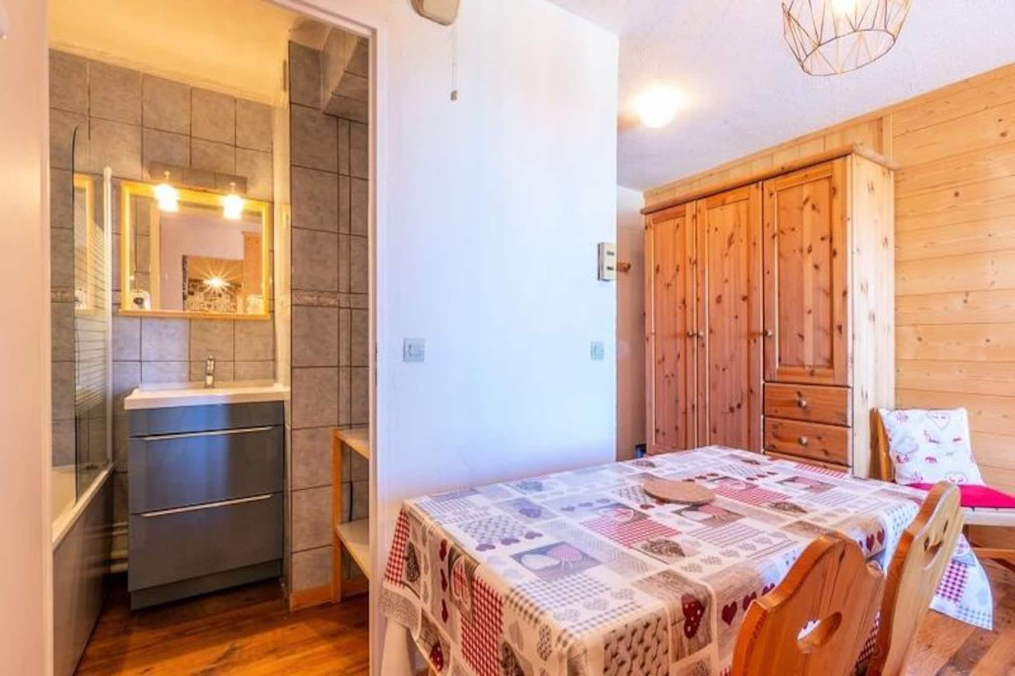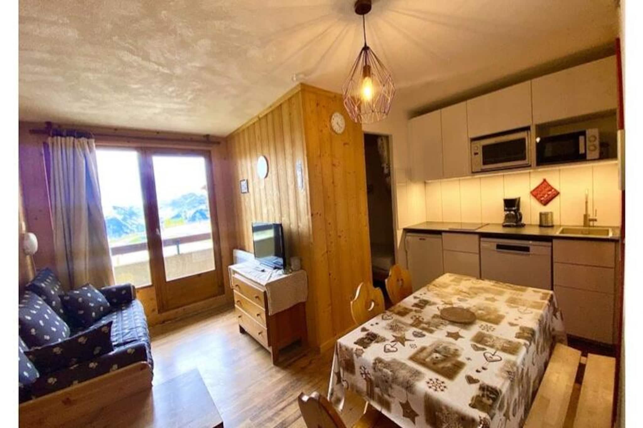 Denne charmerende 2-værelses lejlighed i hjertet af Plagne Soleil, der soler sig i de franske alpers gyldne lys, tilbyder et hyggeligt tilflugtssted for op til fem gæster. Med en betagende udsigt over Aime 2000 og dalen er boligen perfekt beliggende ved foden af ??pisterne, hvilket gør den til en drømmedestination for både skientusiaster og naturelskere. Uanset om du er her for at grave dig gennem uberørt sne eller udforske naturskønne gangstier, vil den pulserende alpine atmosfære betage dig. Den gennemtænkte lejlighed på 25 m² ligger på anden sal og er tilgængelig med elevator. Stuen har en udtræksseng, der kan laves om til to komfortable enkeltsenge, suppleret med et fladskærms-tv til hyggelige aftener derhjemme. Det åbne køkken er fuldt udstyret med moderne apparater, herunder opvaskemaskine, køleskab, ovn og mikrobølgeovn, hvilket sikrer, at du har alt, hvad du behøver for at tilberede lækre måltider. Det separate soveværelse tilbyder en enkeltseng og en køjeseng, perfekt til familier eller små grupper. Et badeværelse med badekar og et separat toilet fuldender rummet og tilbyder både komfort og bekvemmelighed. Yderligere faciliteter inkluderer Wi-Fi og et skiskab til dit udstyr. Plagne Soleil lever op til sit navn med sin solbeskinnede beliggenhed og nemme adgang til det store skisportsområde Paradiski. En gratis shuttle forbinder dig til den nærliggende landsby Plagne, hvilket udvider dine muligheder for restauranter, shopping og underholdning. Om vinteren kan du nyde direkte adgang til pisterne, mens sommeren byder på muligheder for vandreture og bjergudforskning. Områdets gåstier tilbyder rolige vandreture med en fantastisk udsigt over alperne, hvilket gør det til et paradis året rundt. Uanset om du søger spændende eventyr eller fredelige øjeblikke i naturen, er denne lejlighed din port til uforglemmelige alpine minder. Book dit ophold og fordyb dig i Plagne Soleils skønhed og charme.
