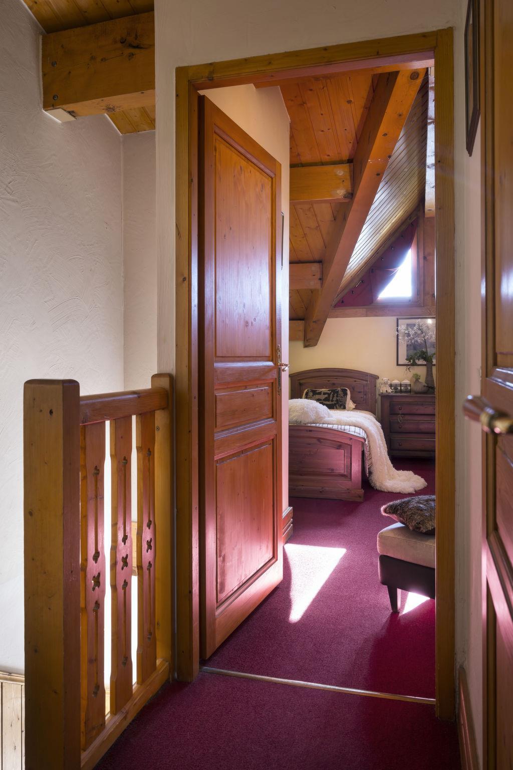 "Le Chalet des Cimes", 5-room apartment 95 m2 on 3 levels. Spacious, tasteful and cosy furnishings: 1 room with 1 french bed (160 cm). 1 room with 2 beds. Sep. WC, 2 baths or showers. Upper floor: living room with open-hearth fireplace, dining table and TV. Exit to the balcony. Kitchen (4 hot plates, oven, dishwasher, toaster, kettle, microwave, electric coffee machine). Top floor: 2 rooms with sloping ceilings, each room with 2 beds. Bath/WC or shower/WC. Heating. Balcony. Beautiful view of the mountains. Facilities: safe. Internet (WiFi, free). Please note: non-smokers only. Maximum 1 pet/ dog allowed. The property is one of a type of property or apartment.