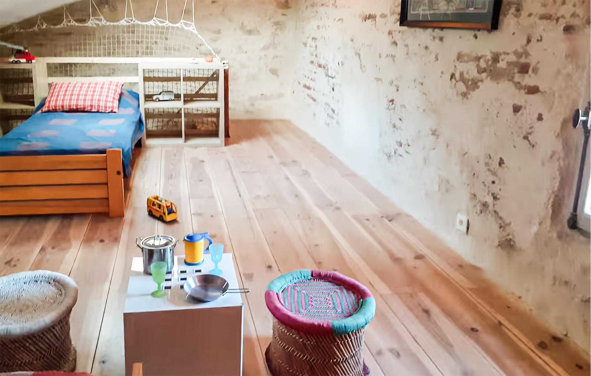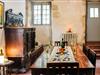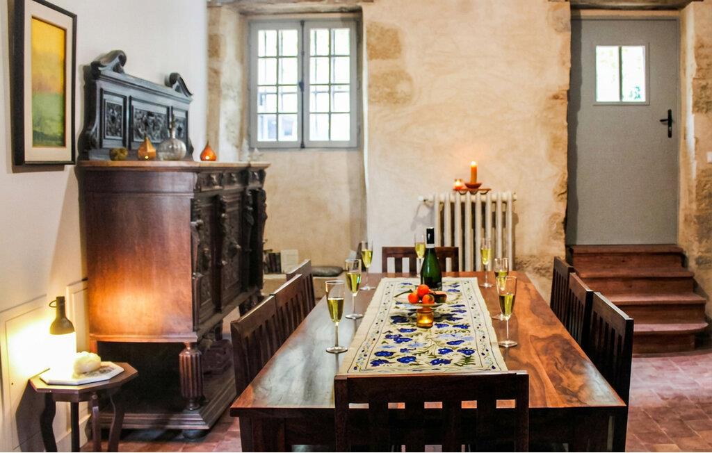 Træd ind i det rummelige interiør i denne omhyggeligt renoverede middelalderby. Oplev den unikke karakter skabt af synlige stenmure, massive træbjælker og originale detaljer. Læn jer tilbage i stuen med pejs og stilfulde siddepladser. Hvert værelse er individuelt designet og fortæller sin egen historie. Udnyt det rummelige køkken, der passer harmonisk ind i den historiske atmosfære. Find sammen omkring det lange spisebord og nyd måltiderne i ro og mag.