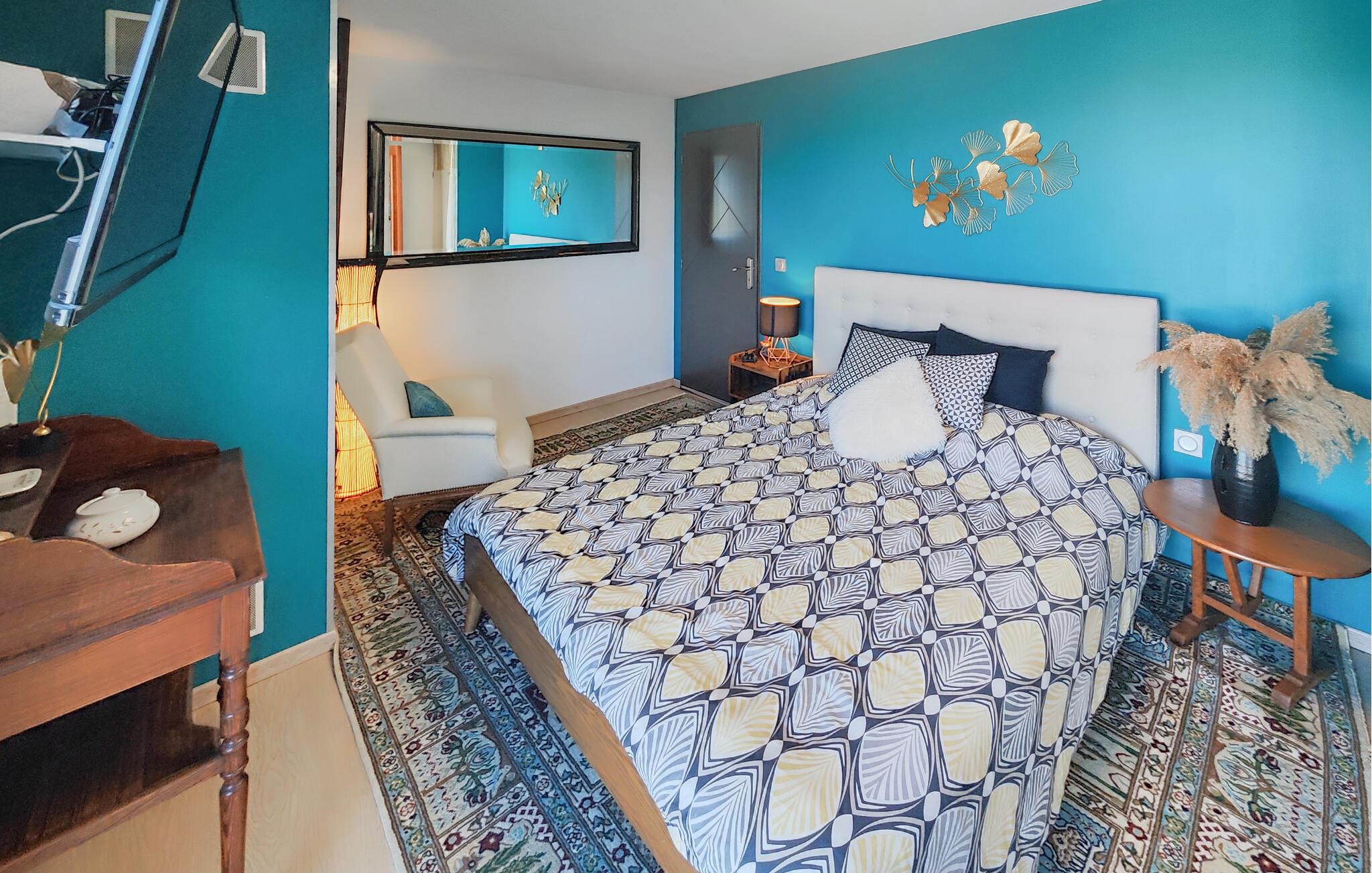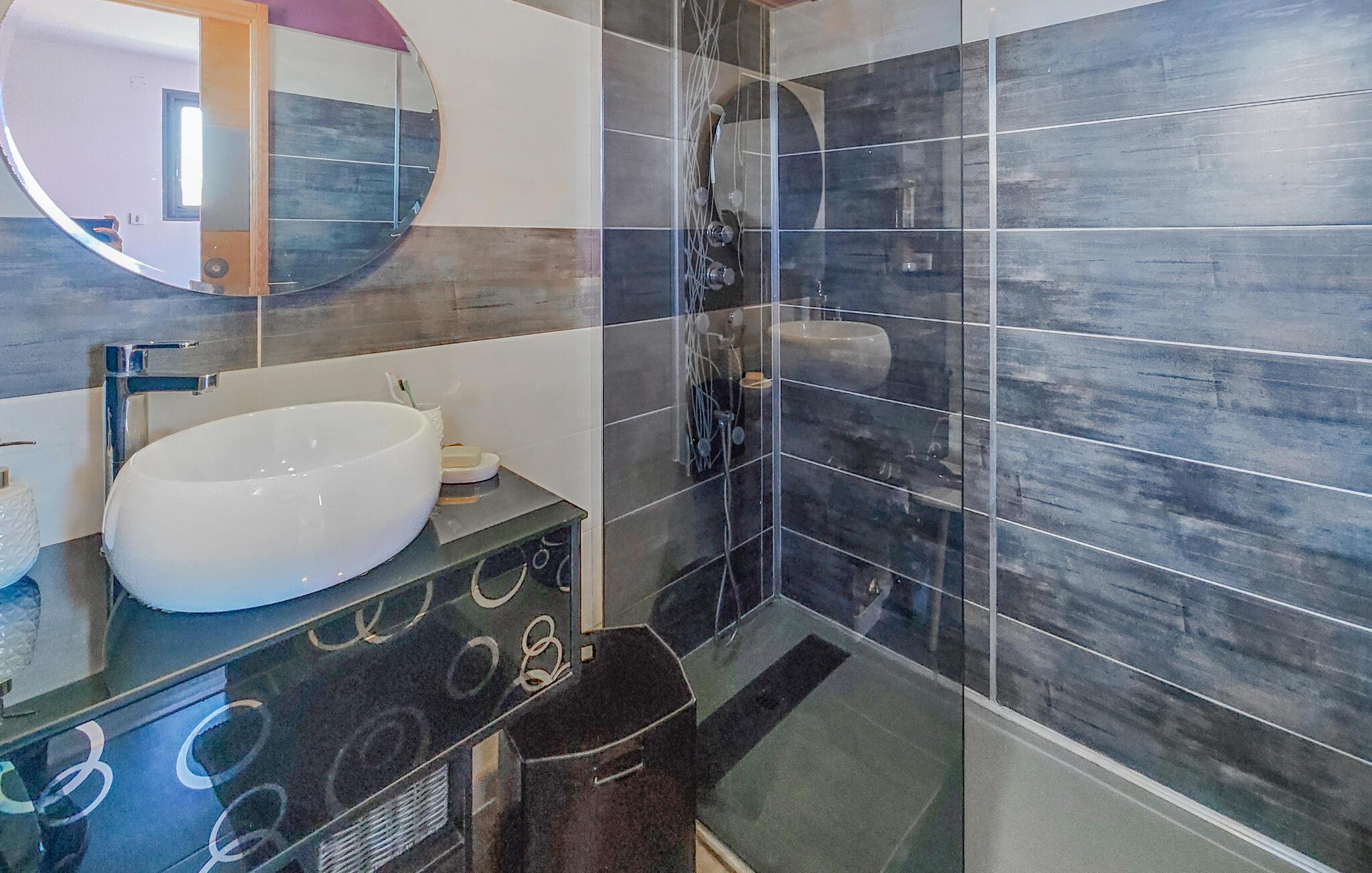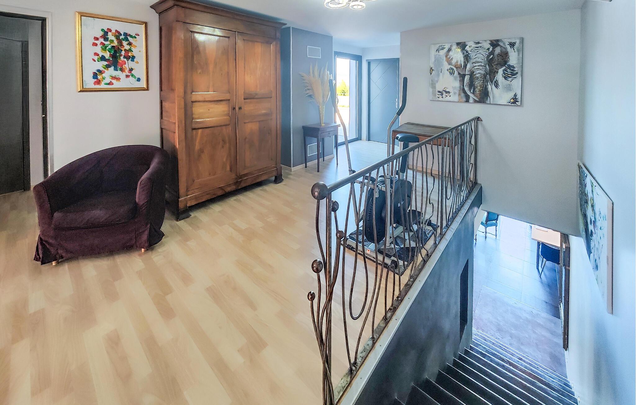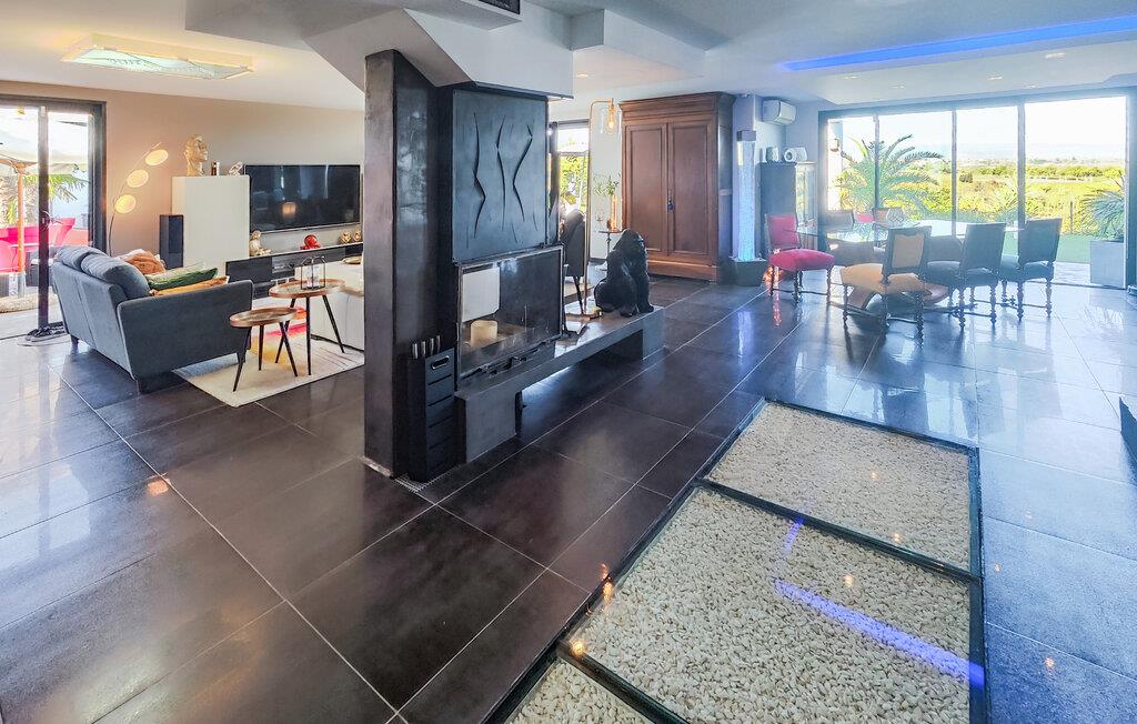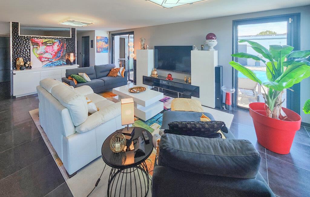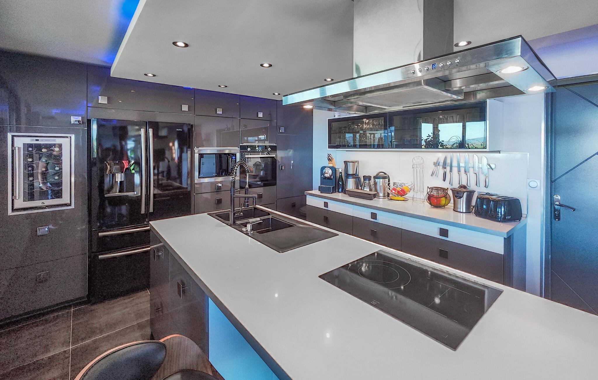 Velkommen til dette rummelige feriehus, som vil forkæle jer med elegant, smagfuldt møbleret interiør og adskillige ekstrafunktioner under en solrig ferie med familien. Glæd jer til hyggelige madlavningsaftener i det moderne køkken, hold jer i form på motionscyklen, stream en spændende serie i den behagelige sofa, eller fordyb jer i jeres ferielæsning i et af de mange indbydende retræter i huset.