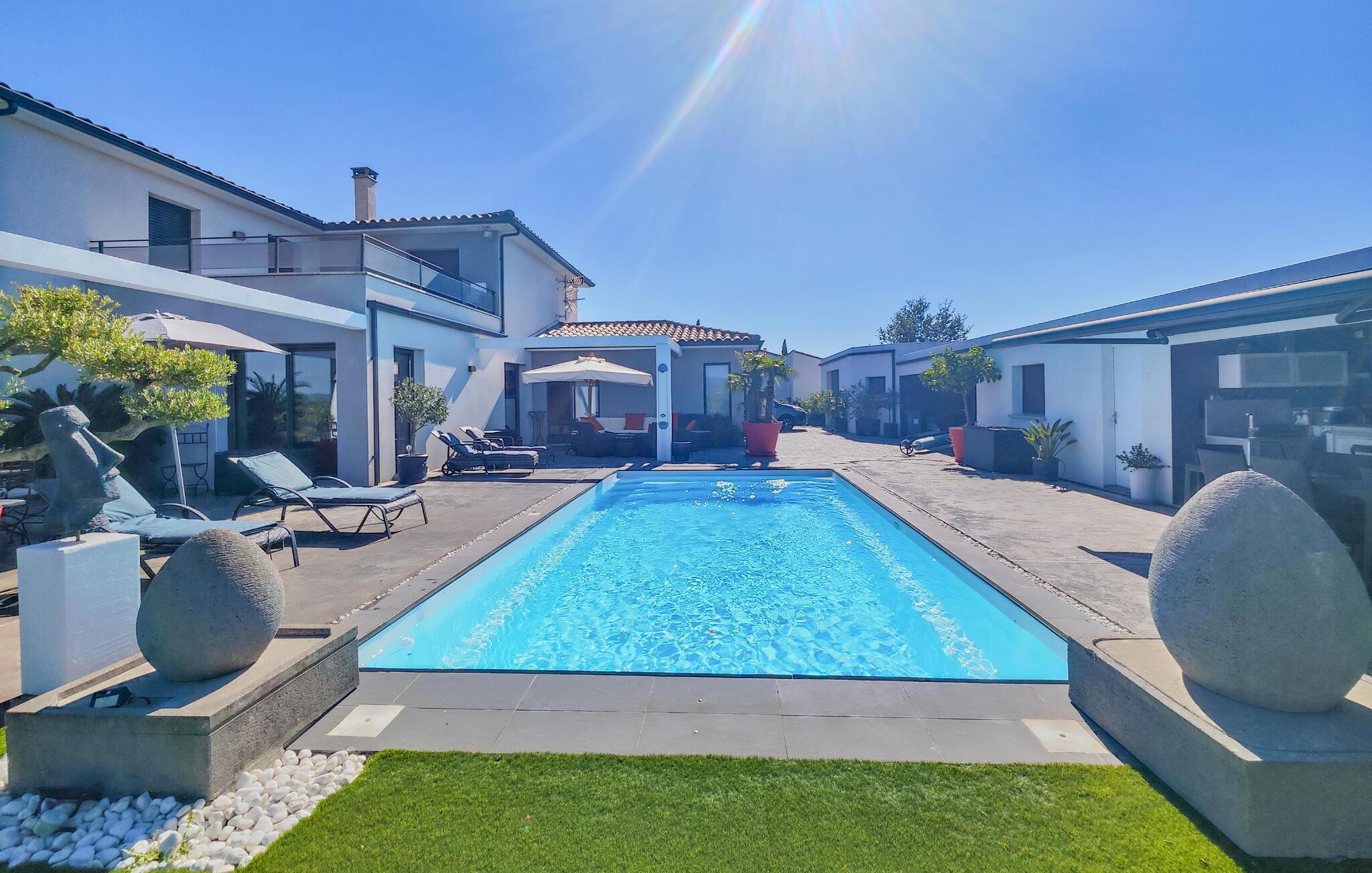 Forkæl jer selv med en behagelig ferie i dette moderne feriehus med pool og slap af fra den travle hverdag.