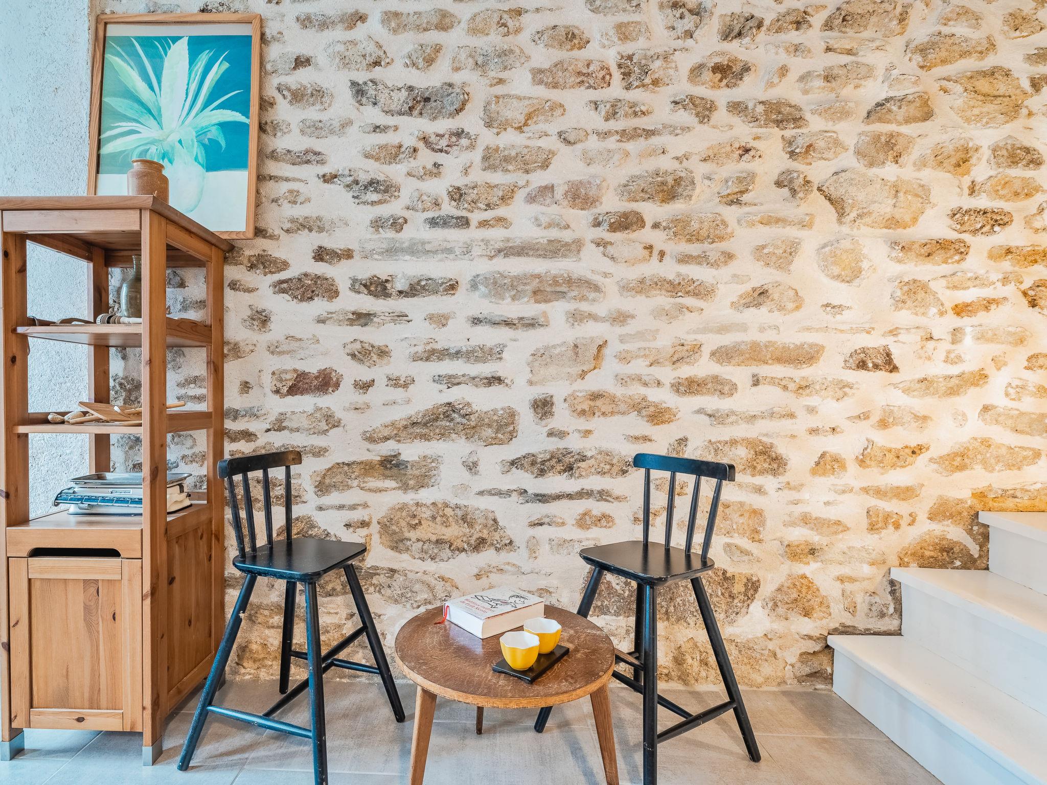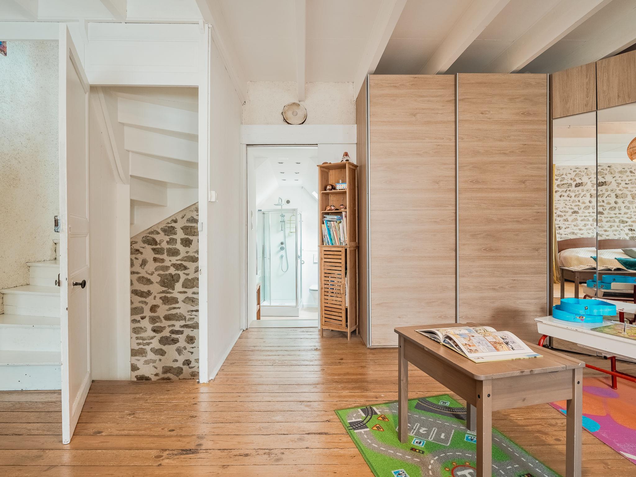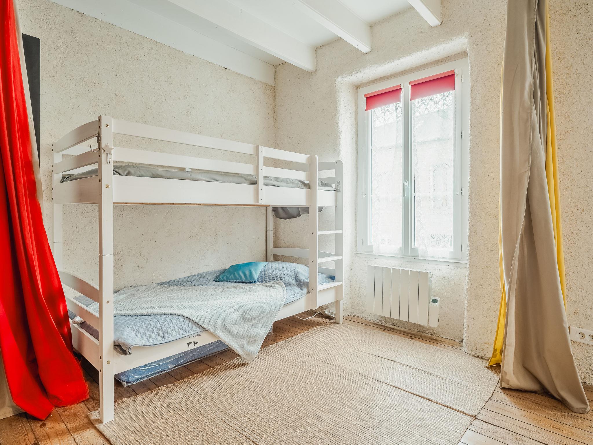 "L'Annexe", 3-room terraced house 90 m2, south-east facing position. Living/dining room. Open kitchen (dishwasher, 4 induction hot plates, toaster, kettle, microwave, electric coffee machine). Sep. WC. Electric heating. Upper floor: (spiral staircase), 1 room with 1 x 2 bunk beds (90 cm, length 180 cm), 1 french bed (1 x 140 cm, length 190 cm). Shower/WC. 2nd upper floor: (spiral staircase), 1 room with 1 french bed (1 x 140 cm, length 190 cm). Facilities: washing machine, dryer, hair dryer. Internet (WiFi, extra). Please note: non-smokers only. Maximum 1 small pet/ dog allowed. Smoke alarm. On the first floor: a large room with a double bed and two single bunk beds and access to the bathroom. Curtains help visually insulate the beds. On the second floor: a bedroom with a double bed. Access to this room is via the first floor. No television. The garden is not attached to the house. Offer by a private individual according to Art. 155, IV of CGI.