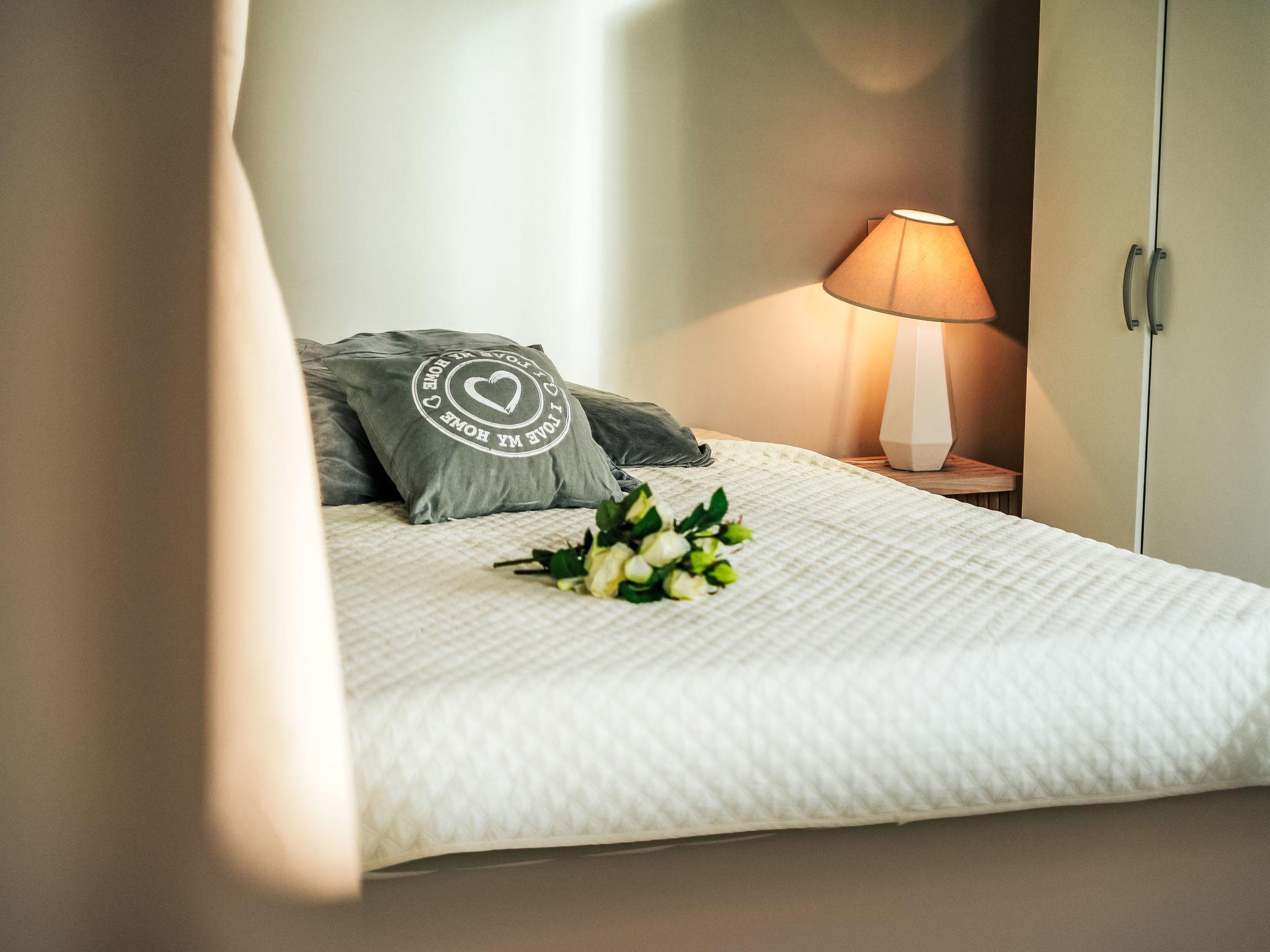 "La Rancia", 2-room apartment 45 m2 on 1st floor, south-west facing position. Living/dining room with 1 x 2 bunk beds (90 cm, length 190 cm), TV (flat screen). Exit to the balcony. 1 room with sliding door with 1 french bed (1 x 160 cm, length 200 cm). Open kitchen (4 hot plates, oven, toaster, kettle, electric coffee machine). Bathroom, sep. WC. Electric heating. Side view of the sea. Facilities: washing machine. Internet (WiFi, extra). Parking (1 car). Please note: non-smokers only. Maximum 1 pet/ dog allowed. Smoke alarm. Offer by a private individual according to Art. 155, IV of CGI.