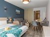 Stue(feltseng, enkeltsovesofa, Fjernsyn), tekøkken(kogeplade, mikrobølgeovn, opvaskemaskine , køleskab), soveværelse(dobbeltseng), soveværelse(dobbeltseng eller 2 enkeltsenge Senge), badeværelse(badekar med bruser, håndvask), toilet, balkon eller terrasse, swimmingpool(deles med andre gæster, opvarmes, opened from Apr upto and including Sep)