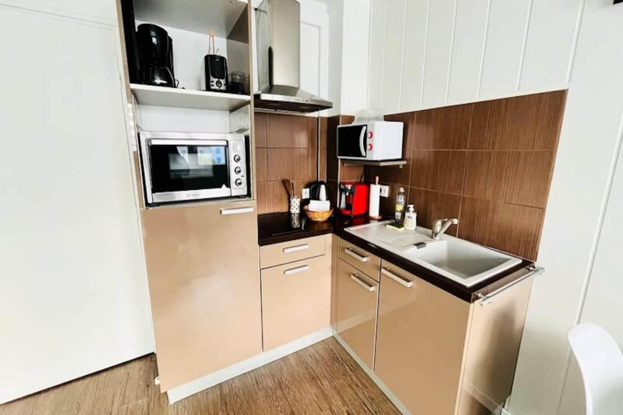 I hjertet af La Rochelle tilbyder denne charmerende lejlighed på 36 m² et indbydende tilflugtssted kun få skridt fra de pulserende parker og den historiske gamle havn. Perfekt til par, familier eller venner, og den kombinerer bylivets bekvemmelighed med roen i en rolig bolig. Forestil dig at starte dagen med en slentretur gennem brostensbelagte gader, nyde frisk bagværk fra det nærliggende bageri og afslutte den med en solnedgang over havnen. Lejligheden har komfortabel plads til op til fire gæster og har et separat soveværelse og en hyggelig stue med en sovesofa. Det fuldt udstyrede køkken er designet til kulinariske entusiaster og har køleskab med fryser, induktionskogeplade, ovn, mikrobølgeovn, brødrister, elkedel samt både Tassimo- og filterkaffemaskine. Lejligheden ligger på anden sal i en sikker bolig (bemærk venligst, ingen elevator) og er omhyggeligt indrettet for at sikre et behageligt og afslappende ophold. Træd udenfor, og du vil finde dig selv i gåafstand fra La Rochelles mest ikoniske attraktioner. Concurrence-stranden ligger kun 7 minutters gang væk, mens Casino Barrière og den gamle havn kan nås inden for 8 til 10 minutter. For dem, der nyder at udforske den lokale kultur, ligger det travle marked og dets overdækkede haller 16 minutters gang derfra, hvor man kan smage på regionens fineste råvarer og delikatesser. Med sikker parkering og Aloha Concierge Service, der er tilgængelig for at hjælpe dig under hele dit ophold, er alle detaljer blevet tænkt over for at gøre dit besøg uforglemmeligt. Uanset om du er her for at nyde den maritime charme, forkæle dig selv med det lokale køkken eller blot slappe af ved havet, er denne lejlighed din port til det bedste af La Rochelle. Lad byens tidløse charme og komforten i dette dejlige tilflugtssted skabe minder, du vil værdsætte for evigt.