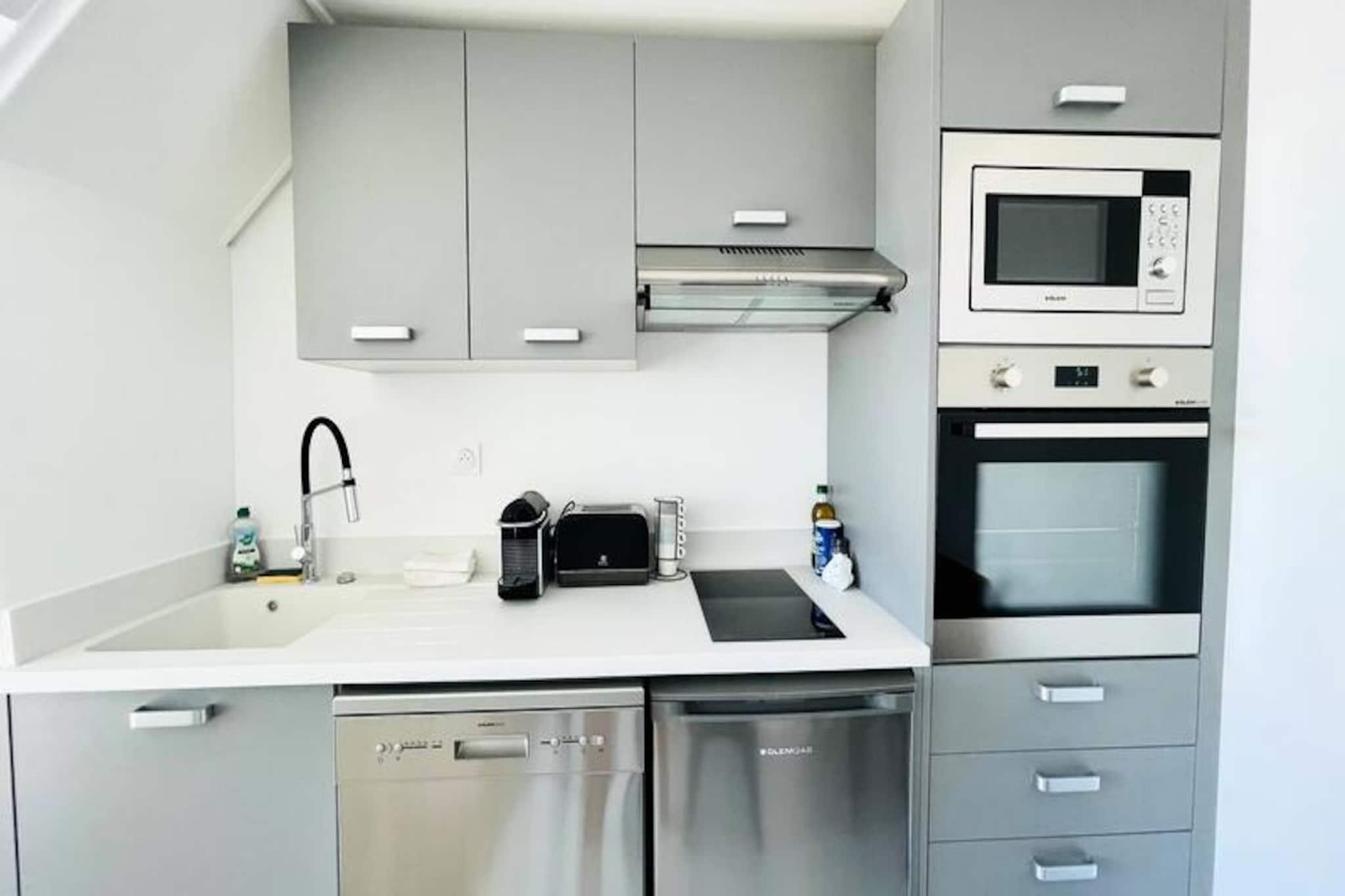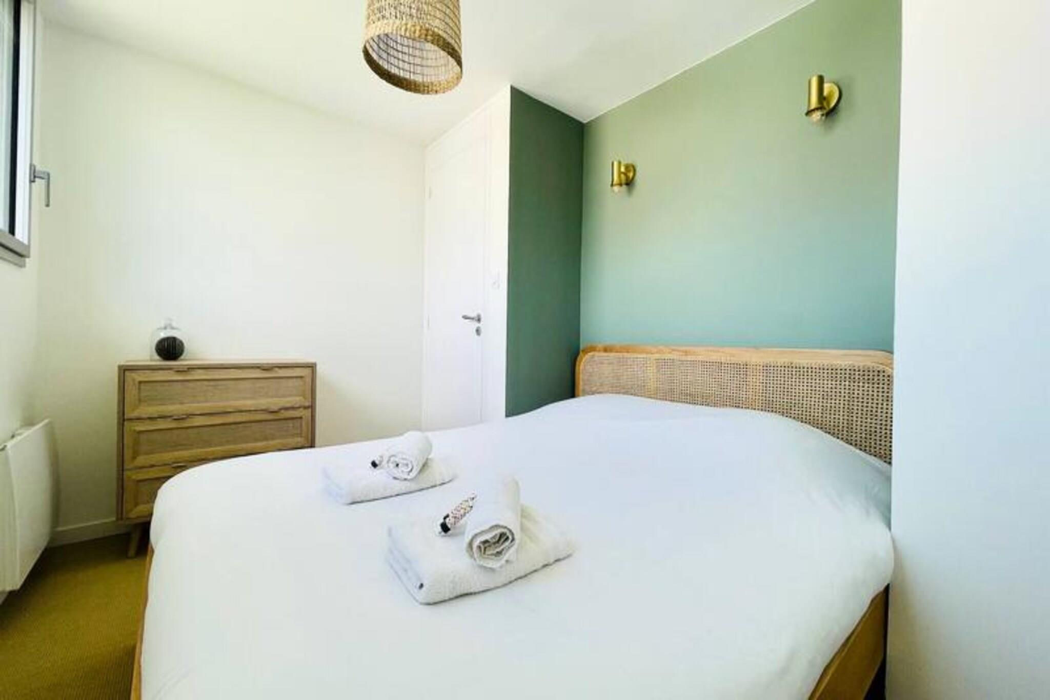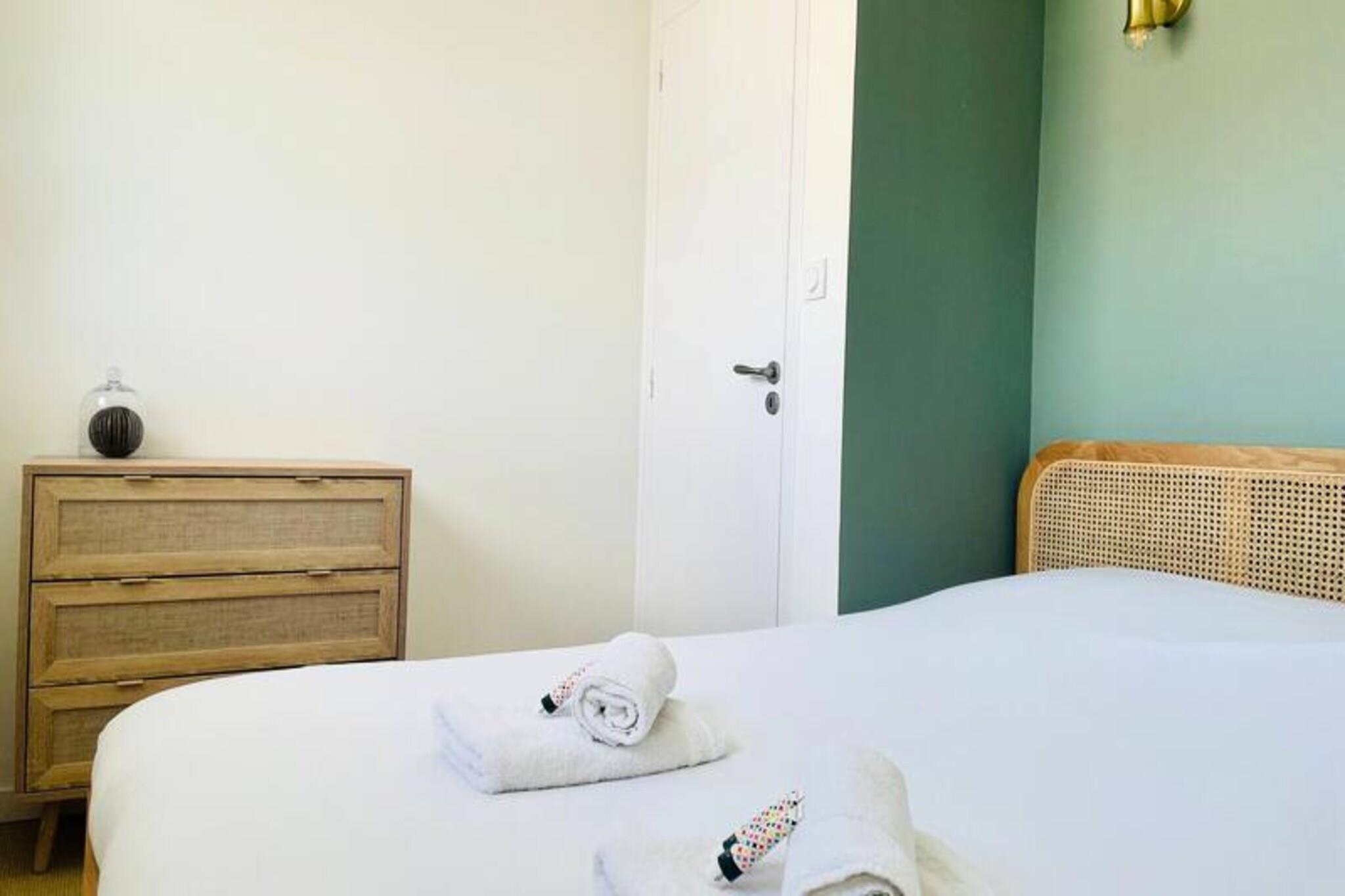Forestil dig at vågne op til den beroligende lyd af bølger og træde ud på din private terrasse med havudsigt for at nyde det betagende havpanorama. Denne smukt nyindrettede lejlighed, beliggende i hjertet af Minimes-distriktet i La Rochelle, tilbyder den perfekte blanding af kystcharme og moderne komfort. Beliggende i et fredeligt kvarter, kun en kort gåtur fra den vidtstrakte Minimes-strand og essentielle butikker, er dette et paradis for dem, der søger afslapning og bekvemmelighed. Uanset om du er her for en romantisk ferie eller en familieferie, vil du føle dig hjemme med det samme. Lejligheden er omhyggeligt designet til at tilbyde både stil og funktionalitet. Beliggende på første sal i en rolig bolig, har den to veladskilte soveværelser, hvoraf det ene er placeret ovenpå for ekstra privatliv. Den åbne opholdsstue er badet i naturligt lys og åbner ud til terrassen, hvilket skaber en problemfri inde-udendørs forbindelse. Det fuldt udstyrede køkken indeholder alt, hvad du behøver, fra en Nespresso-kaffemaskine til en opvaskemaskine og vaskemaskine, hvilket sikrer et stressfrit ophold. Moderne bekvemmeligheder som Wi-Fi og en komfortabel sofa i stuen bidrager til lejlighedens appel. Træd udenfor, og du vil befinder dig kun 5 minutters gang fra kyststien og Minimes-stranden, hvor du kan nyde solrige dage ved havet. En 10-minutters cykeltur tager dig til den charmerende gamle havn og de pulserende lokale markeder, perfekt til at udforske La Rochelles smagsoplevelser og kultur. For dem, der ankommer med tog, ligger stationen kun 8 minutters kørsel væk, hvilket gør denne beliggenhed lige så tilgængelig, som den er malerisk. Med Aloha Concierge Service til din rådighed har du adgang til personlige anbefalinger til de bedste restauranter, museer og skjulte perler i området. Uanset om du nyder frisk fisk og skaldyr, vandrer langs kyststierne eller blot slapper af på din terrasse, tilbyder denne lejlighed en uforglemmelig flugt ved havet.